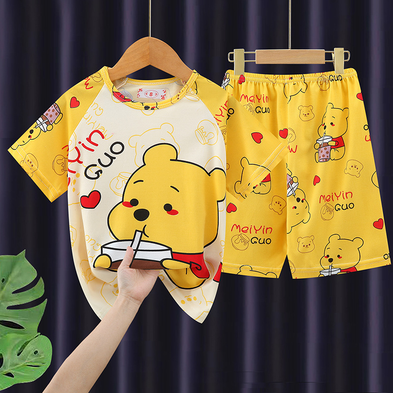 어린이 반팔 집 옷 소년 만화 느슨한 소녀의 반팔 얇은 세트 아기의 여름 에어컨 옷 잠옷
