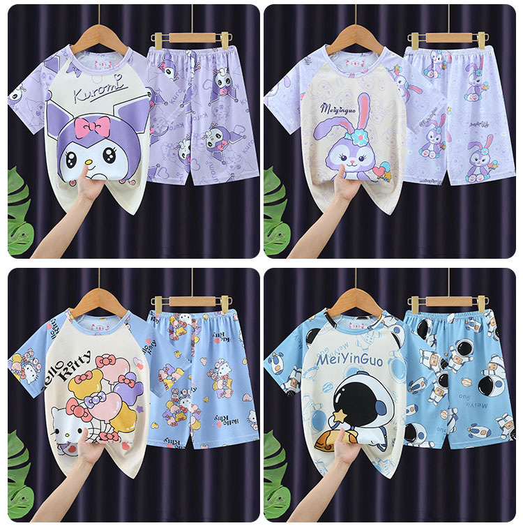 어린이 반팔 집 옷 소년 만화 느슨한 소녀의 반팔 얇은 세트 아기의 여름 에어컨 옷 잠옷스토어 가기
