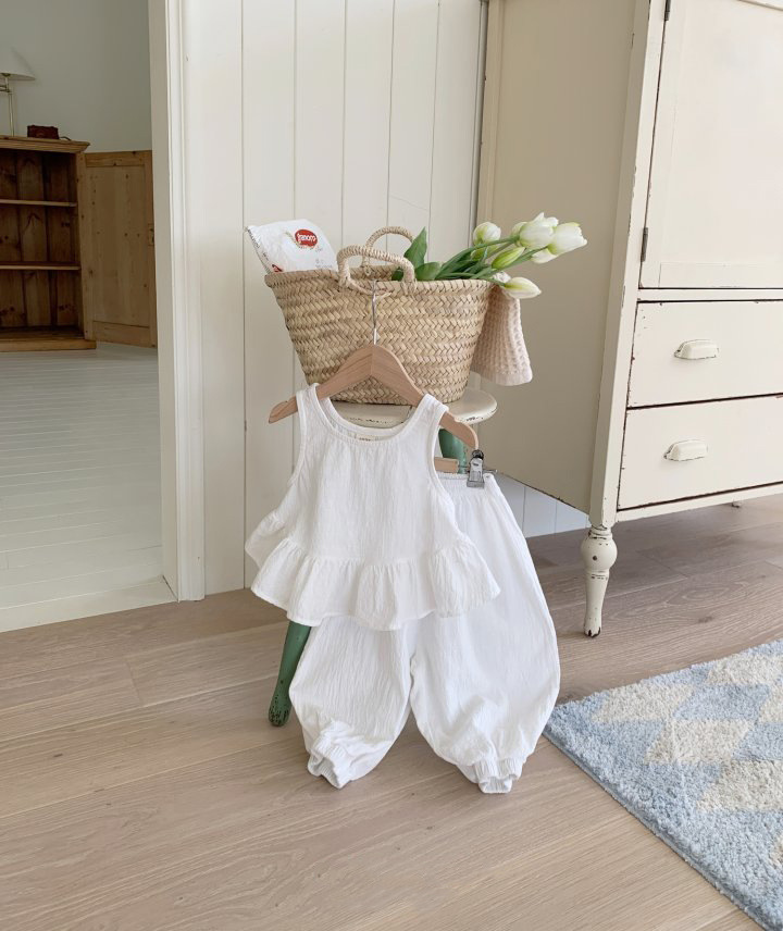 여름 어린이 2024 새 한국 아동복 얇은 서양식 조끼 쿨 소녀의 세트 어린이 투피스 세트