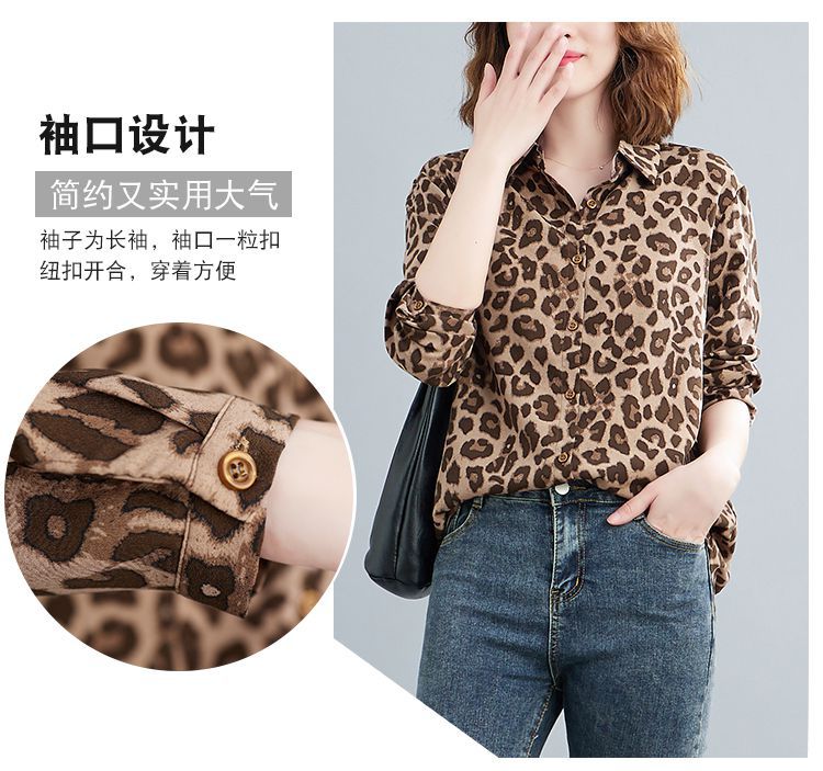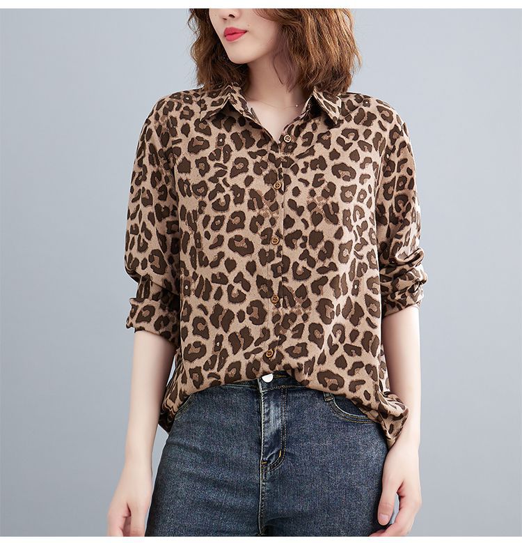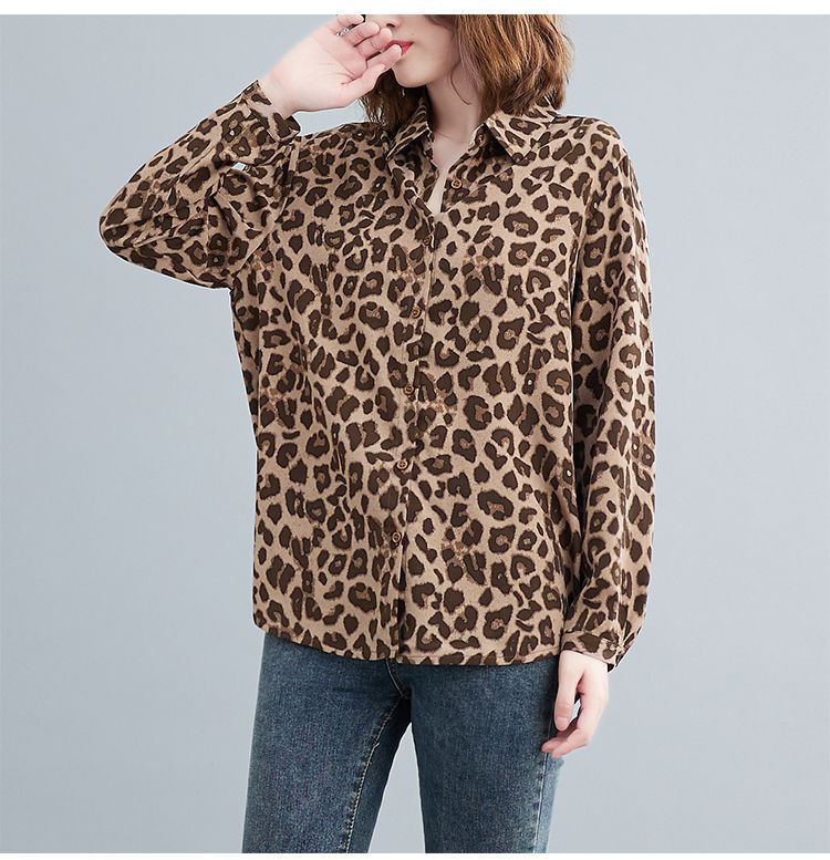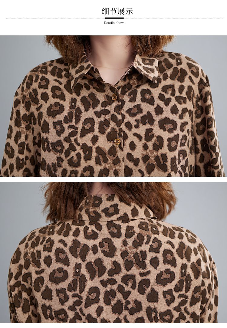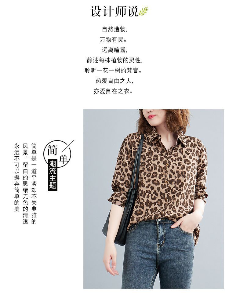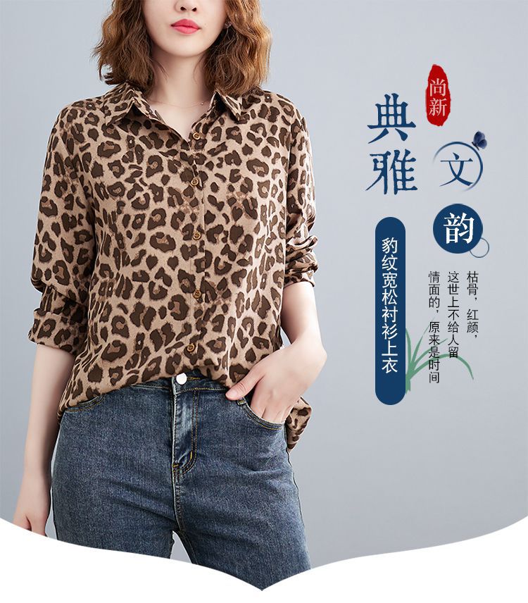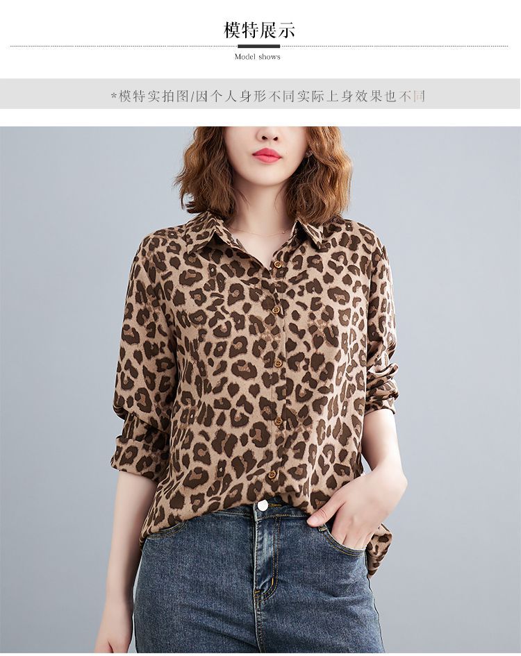 2024 가을 느슨한 통통녀 여성의 새로운 도착 스트레이트 레오파드 무늬 쉬폰 셔츠스토어 가기