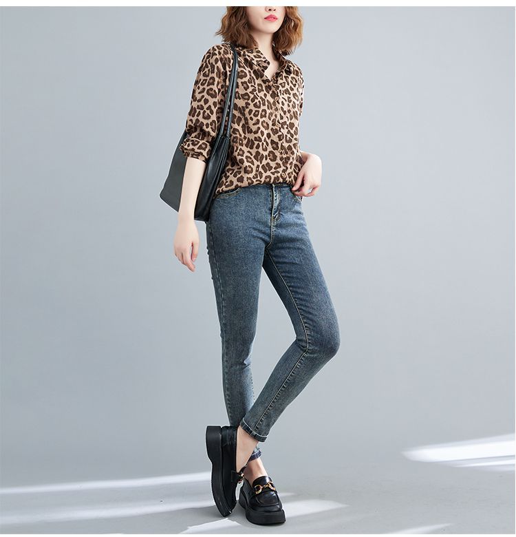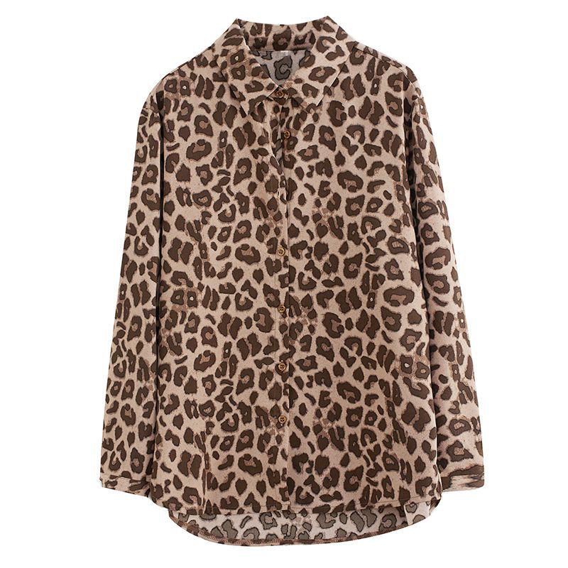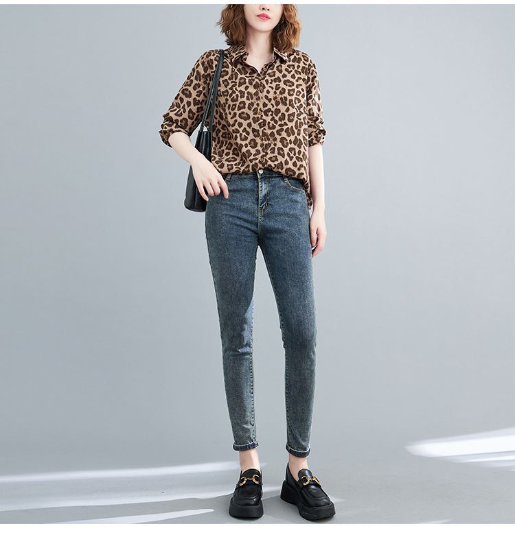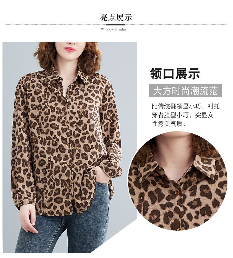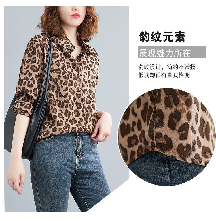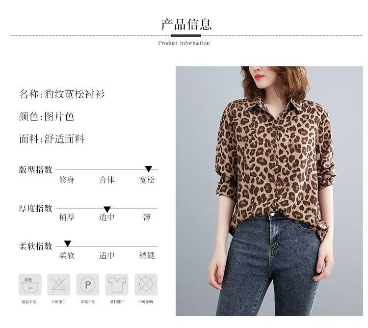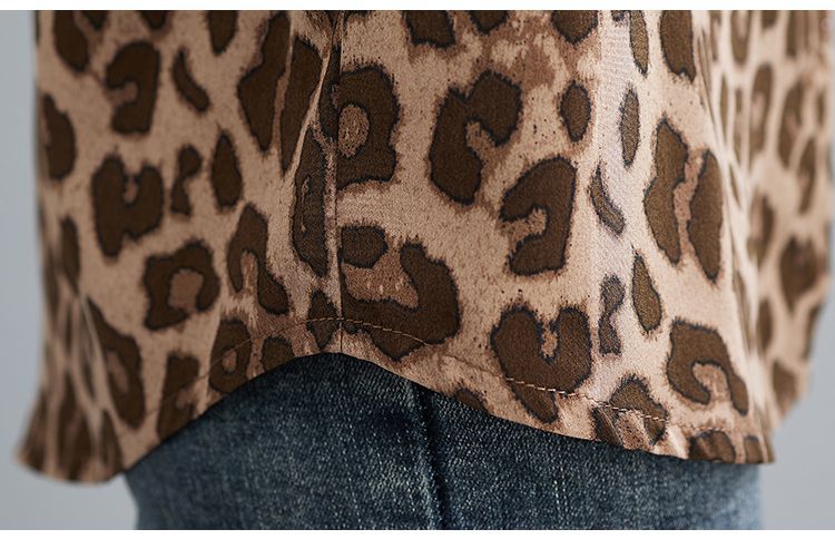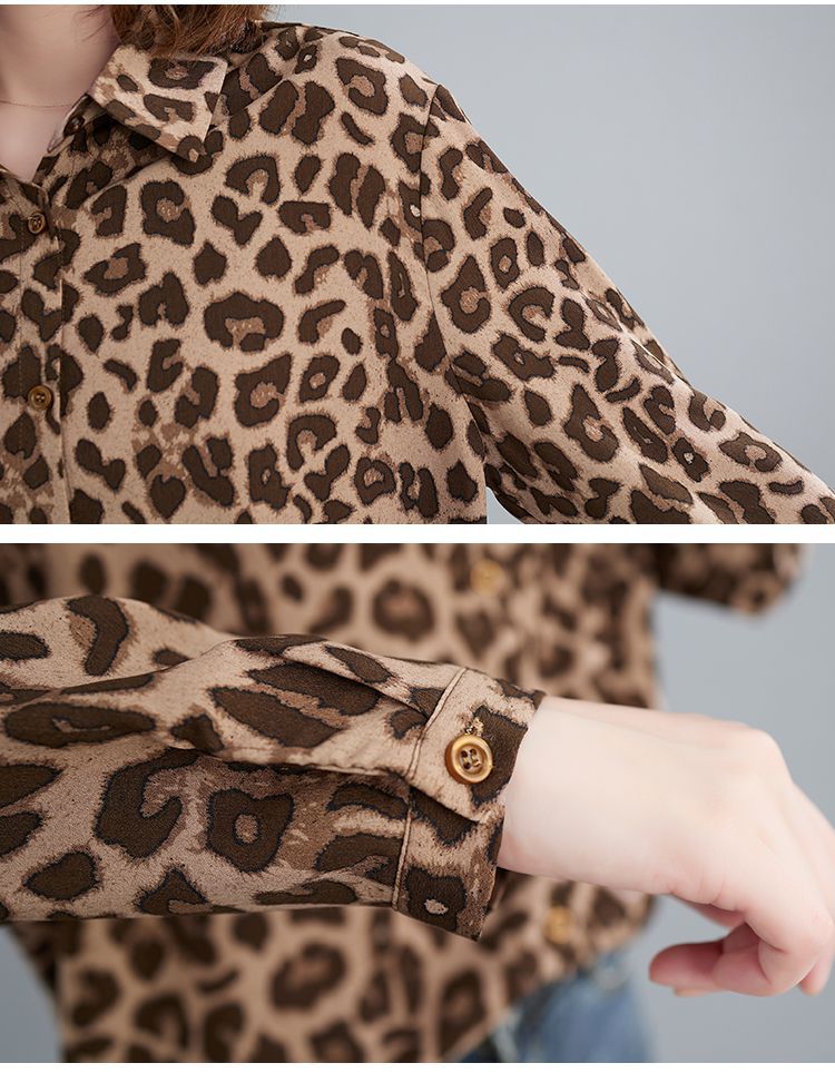 2024 가을 느슨한 통통녀 여성의 새로운 도착 스트레이트 레오파드 무늬 쉬폰 셔츠스토어 가기