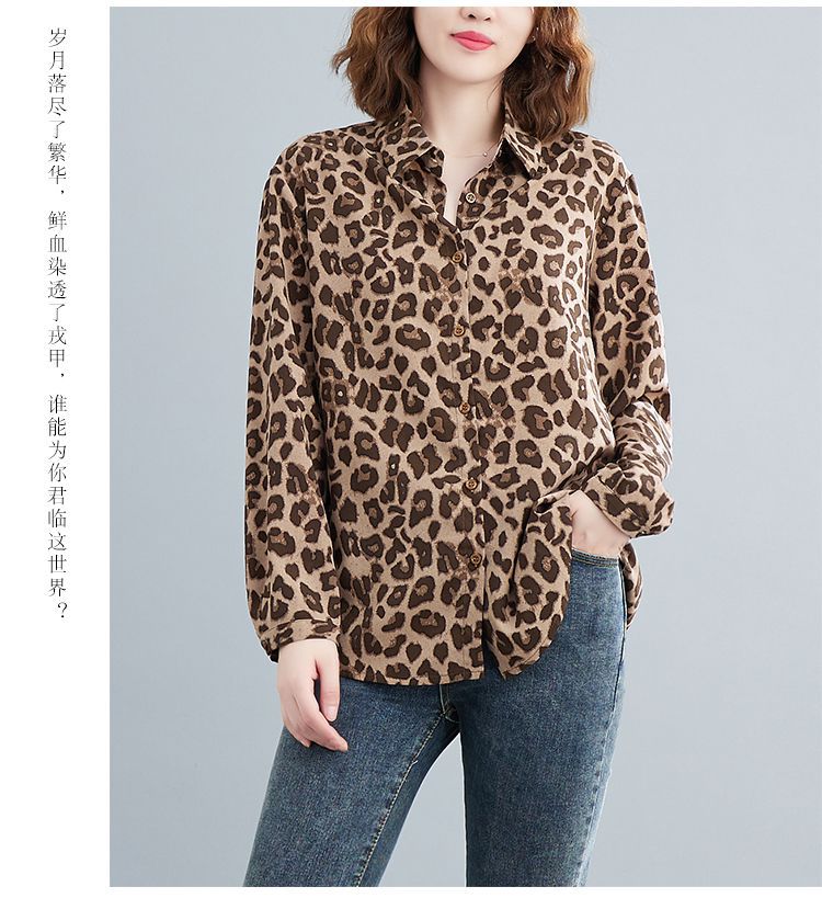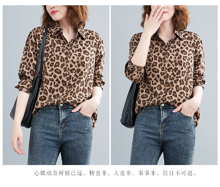 2024 가을 느슨한 통통녀 여성의 새로운 도착 스트레이트 레오파드 무늬 쉬폰 셔츠