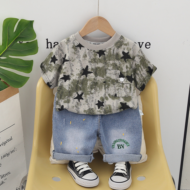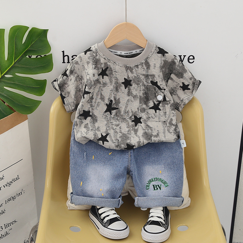 유럽과 미국 소년 여름 세트 패션 2024 새로운 소년 여름 옷 바지 투피스 아동복 대외 무역
