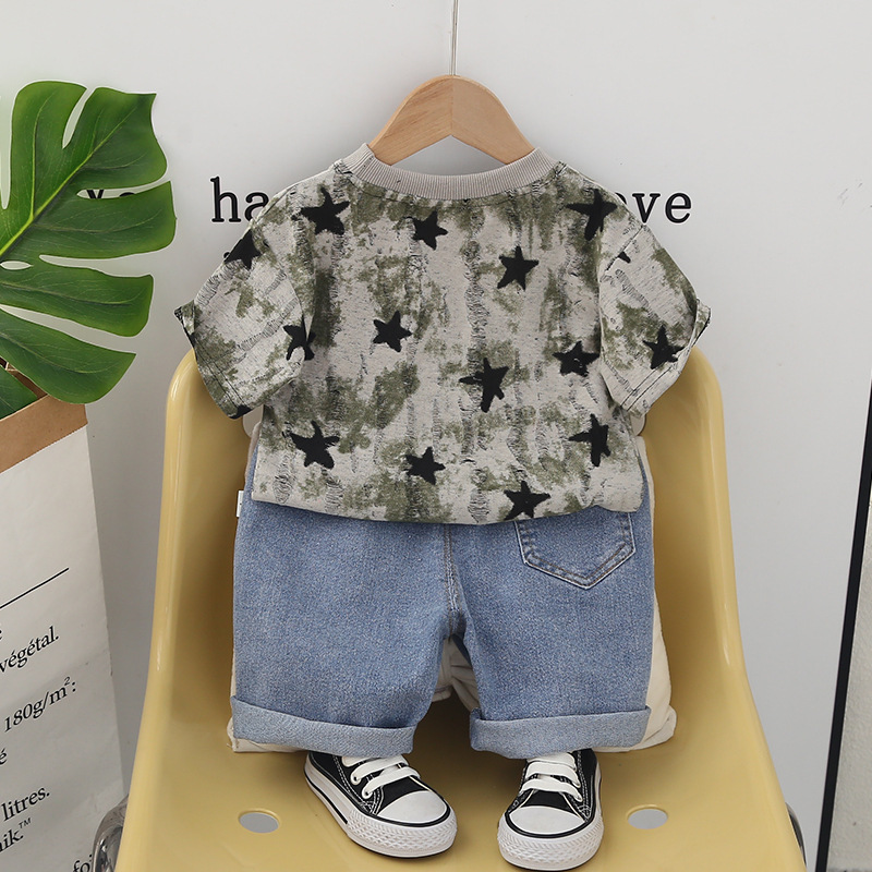 유럽과 미국 소년 여름 세트 패션 2024 새로운 소년 여름 옷 바지 투피스 아동복 대외 무역스토어 가기