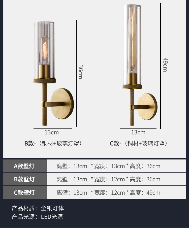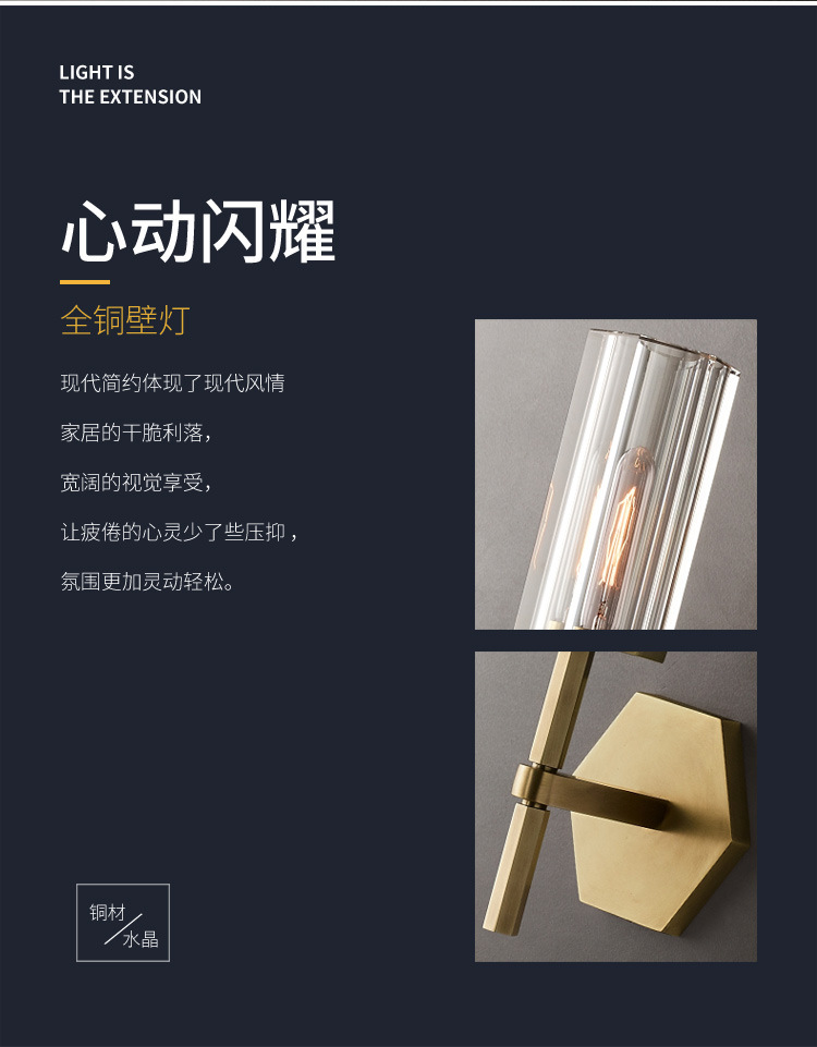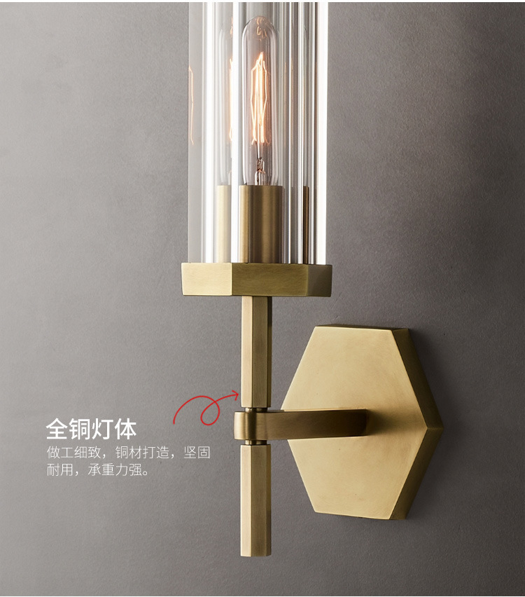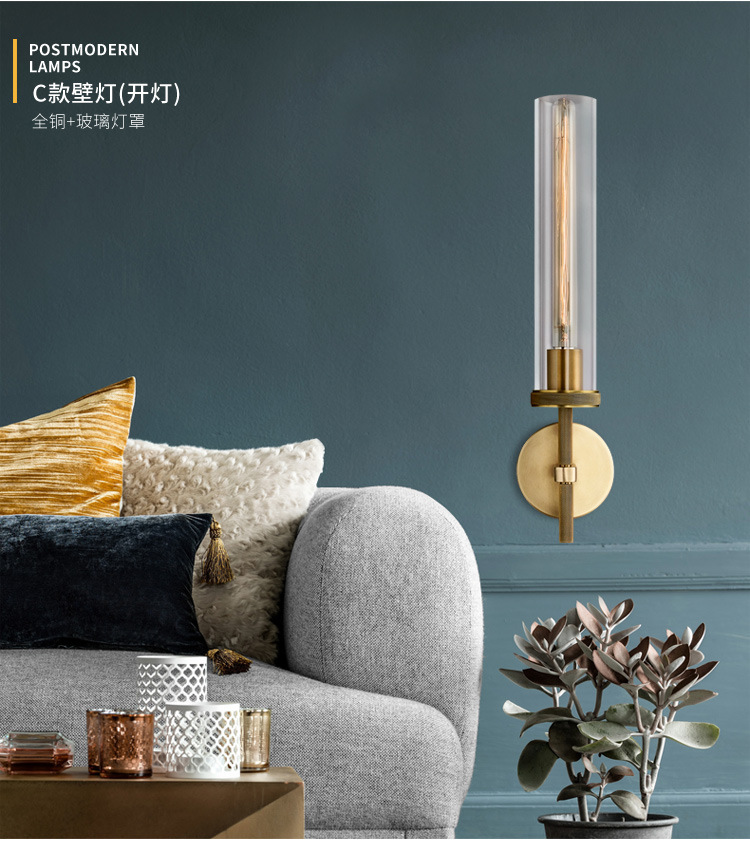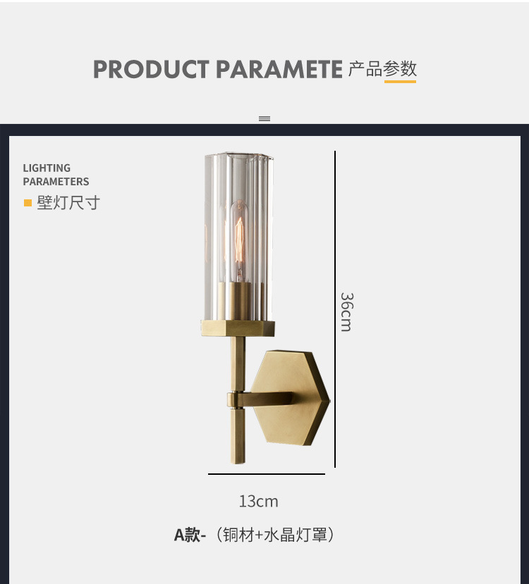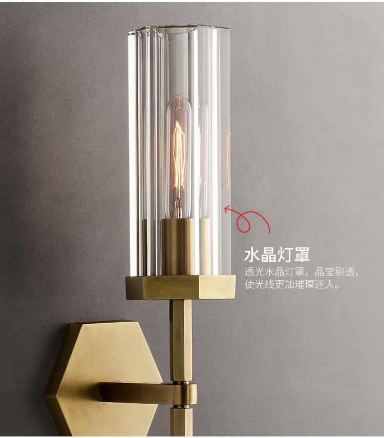 가벼운 고급 크리스탈 벽 램프 침실 침실 램프 포스트 모던 간단한 창조적 인 모든 구리 거실 뒷벽 계단 통로 램프