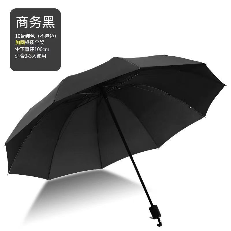 수동 자동 10 뼈 증가 비 이중 목적 검은 고무 UV 보호 자외선 차단제 로고 인쇄 활동 선물 우산