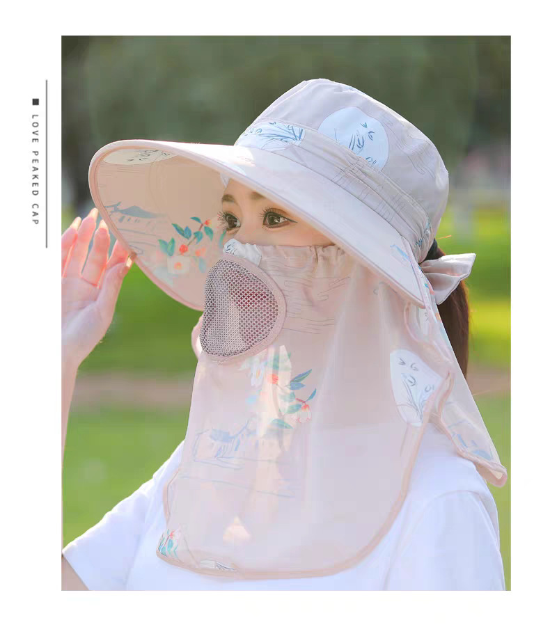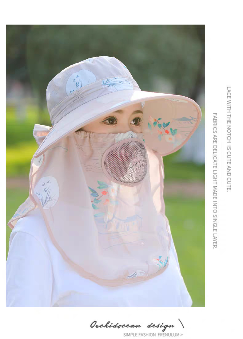 여성용 모자 2025 새로운 자외선 차단 모자 자외선 차단 태양 모자 마스크 전체 얼굴을 덮는 얇은 차 따기 태양 모자스토어 가기