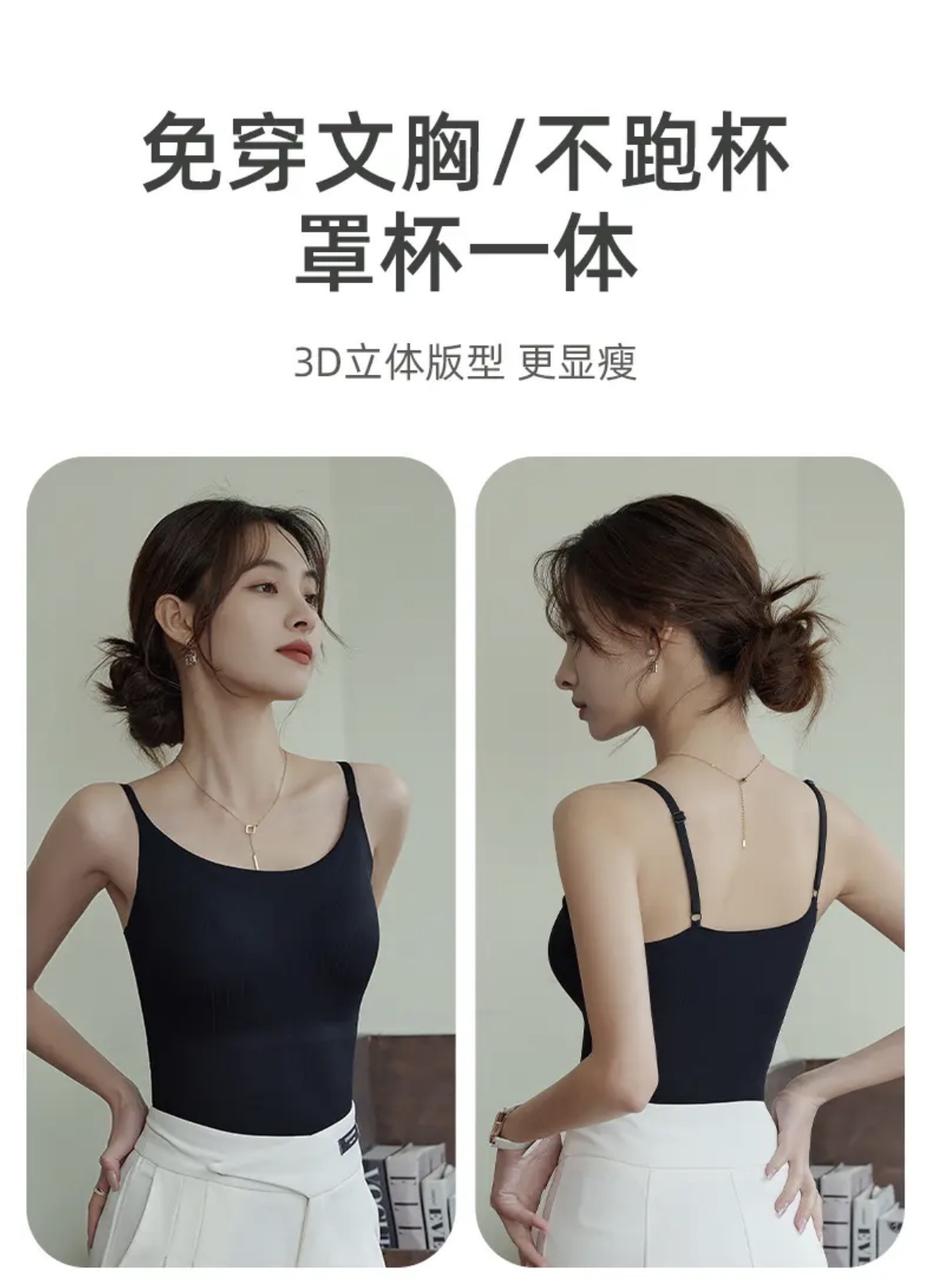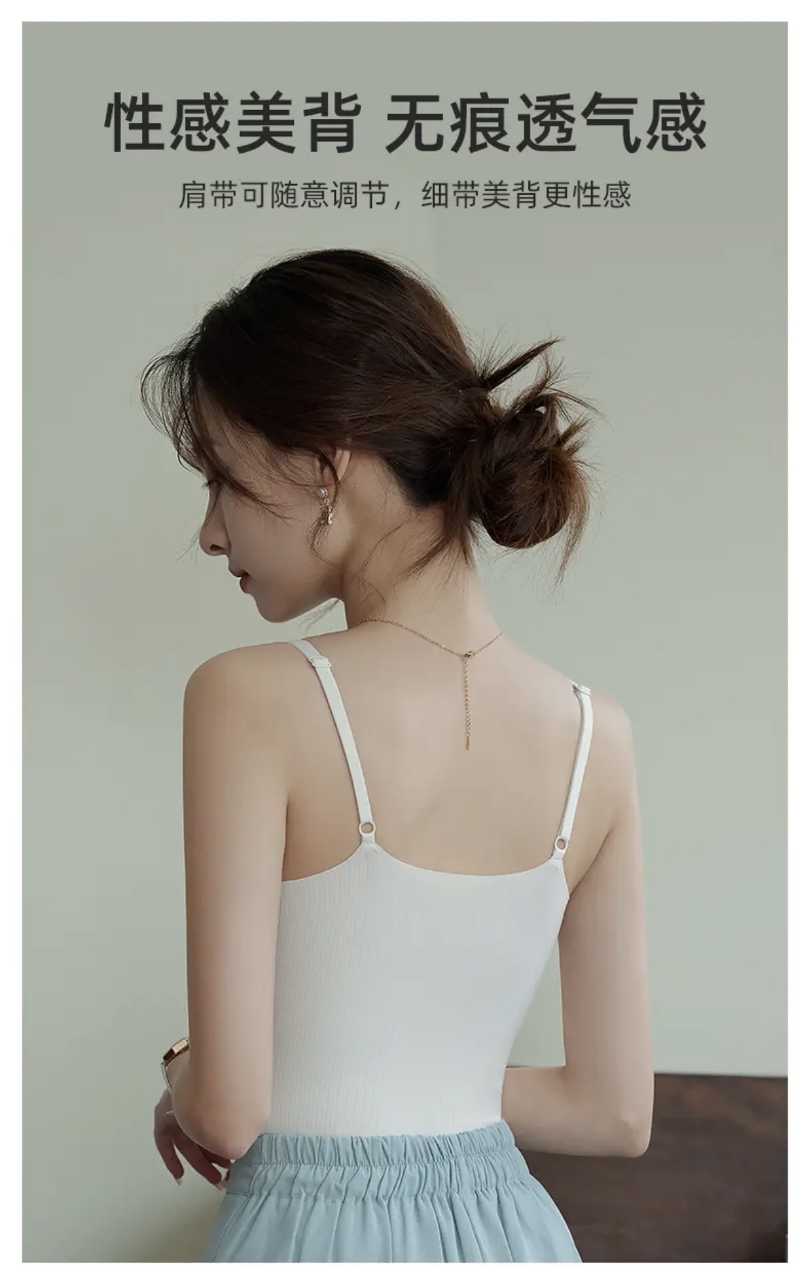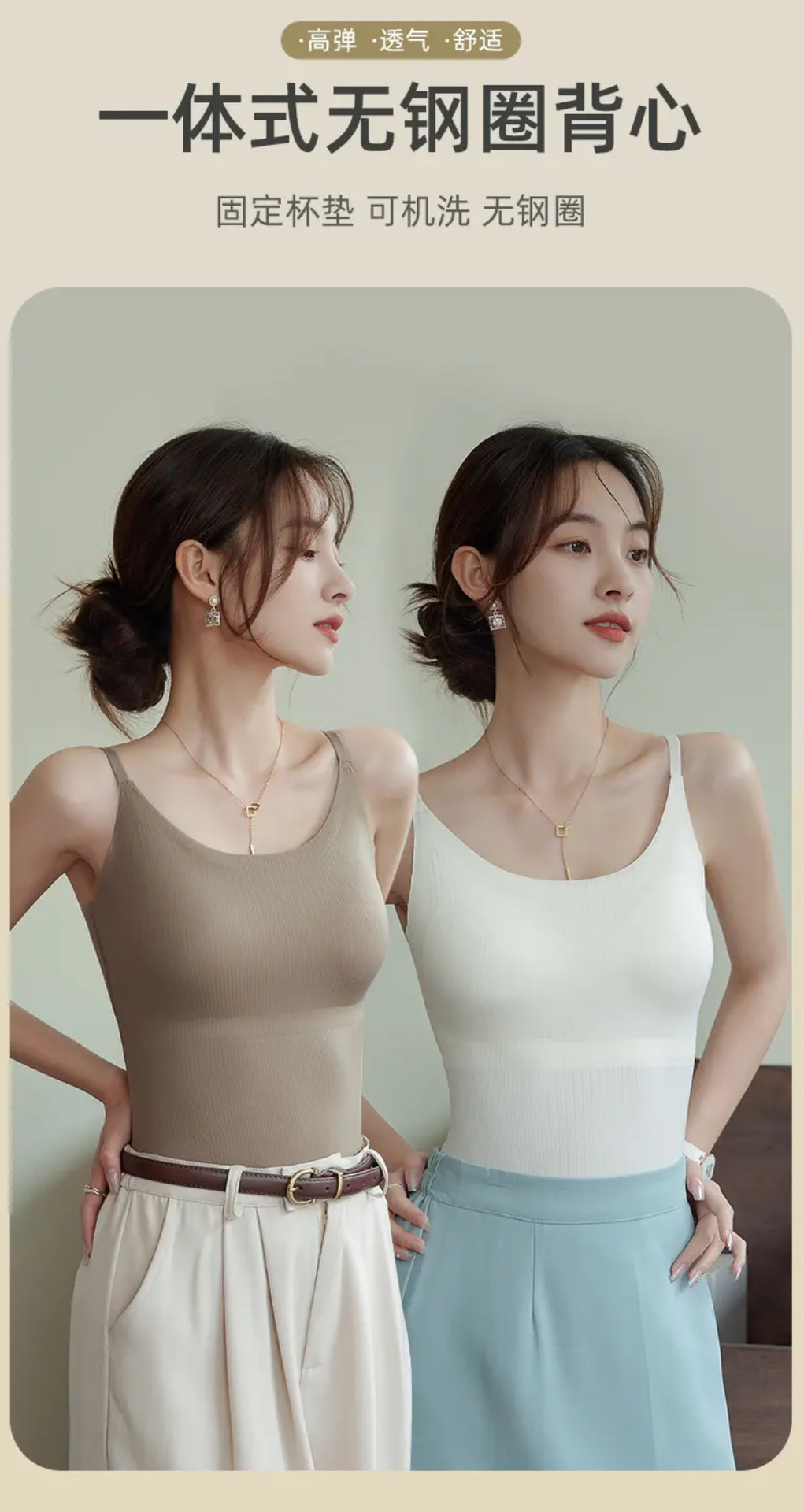 소자본 여성용 솔리드 컬러 캐미솔, 일체형 고정 가슴 패드 베이스 레이어, 슬리밍 및 아름다운 등 여성스토어 가기