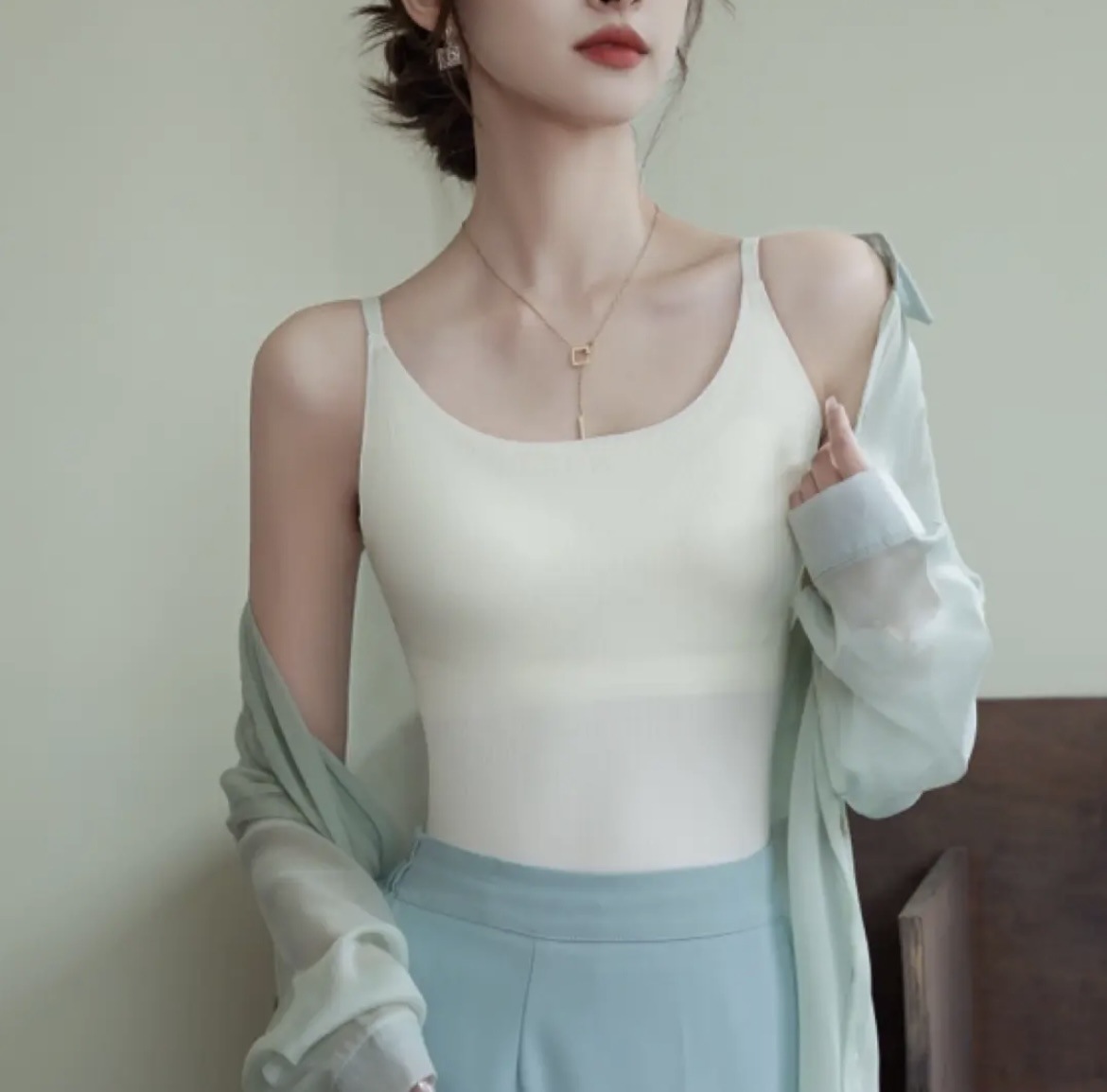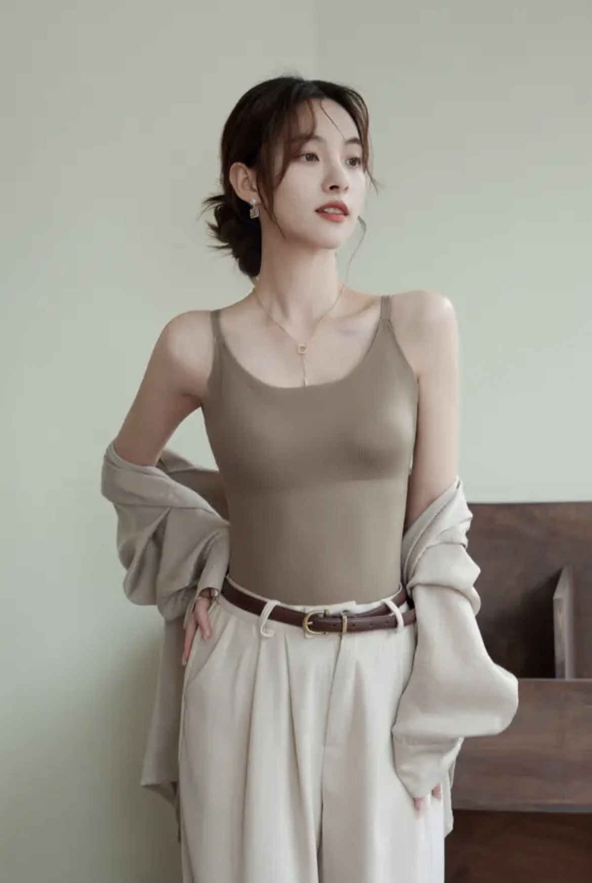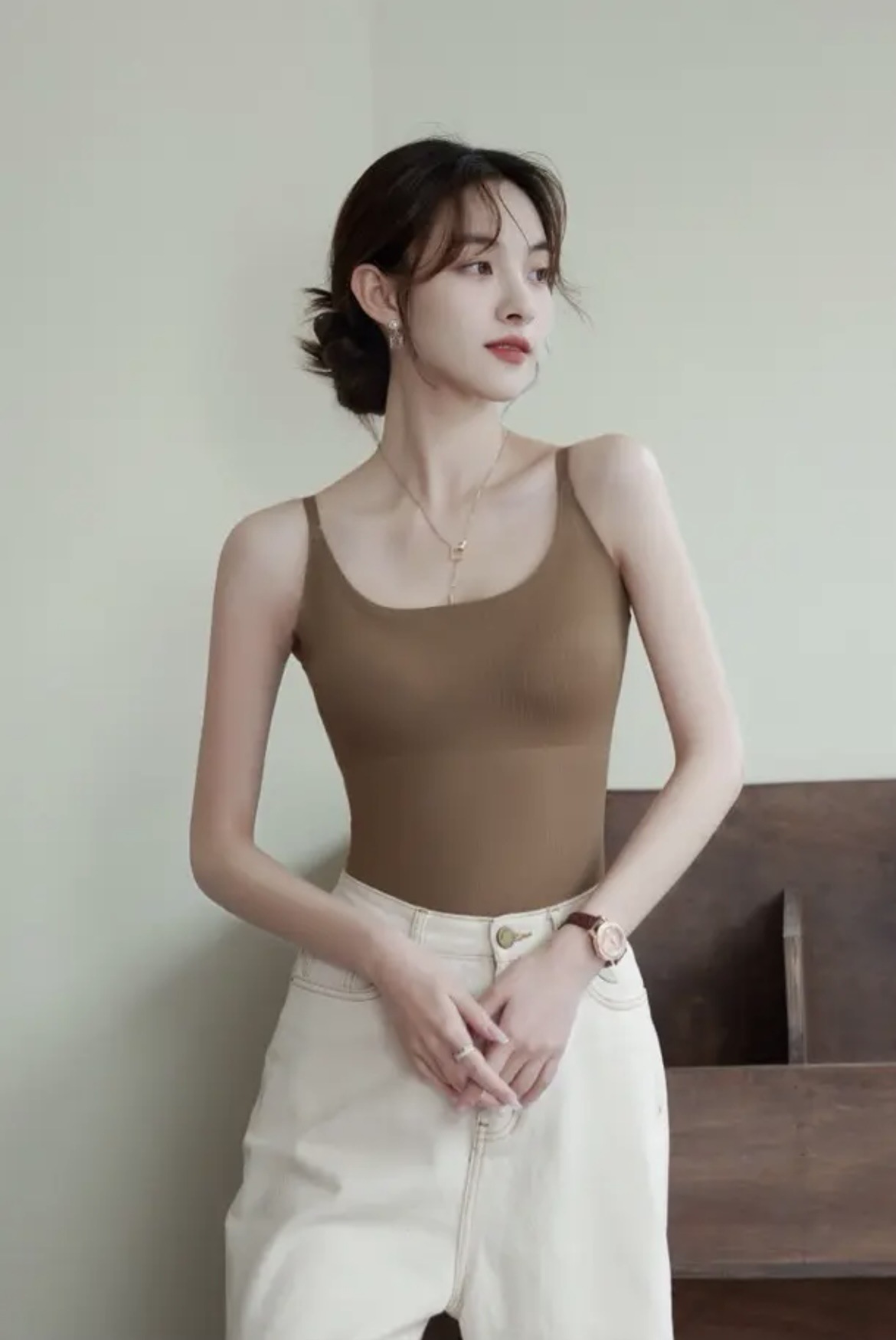 소자본 여성용 솔리드 컬러 캐미솔, 일체형 고정 가슴 패드 베이스 레이어, 슬리밍 및 아름다운 등 여성스토어 가기