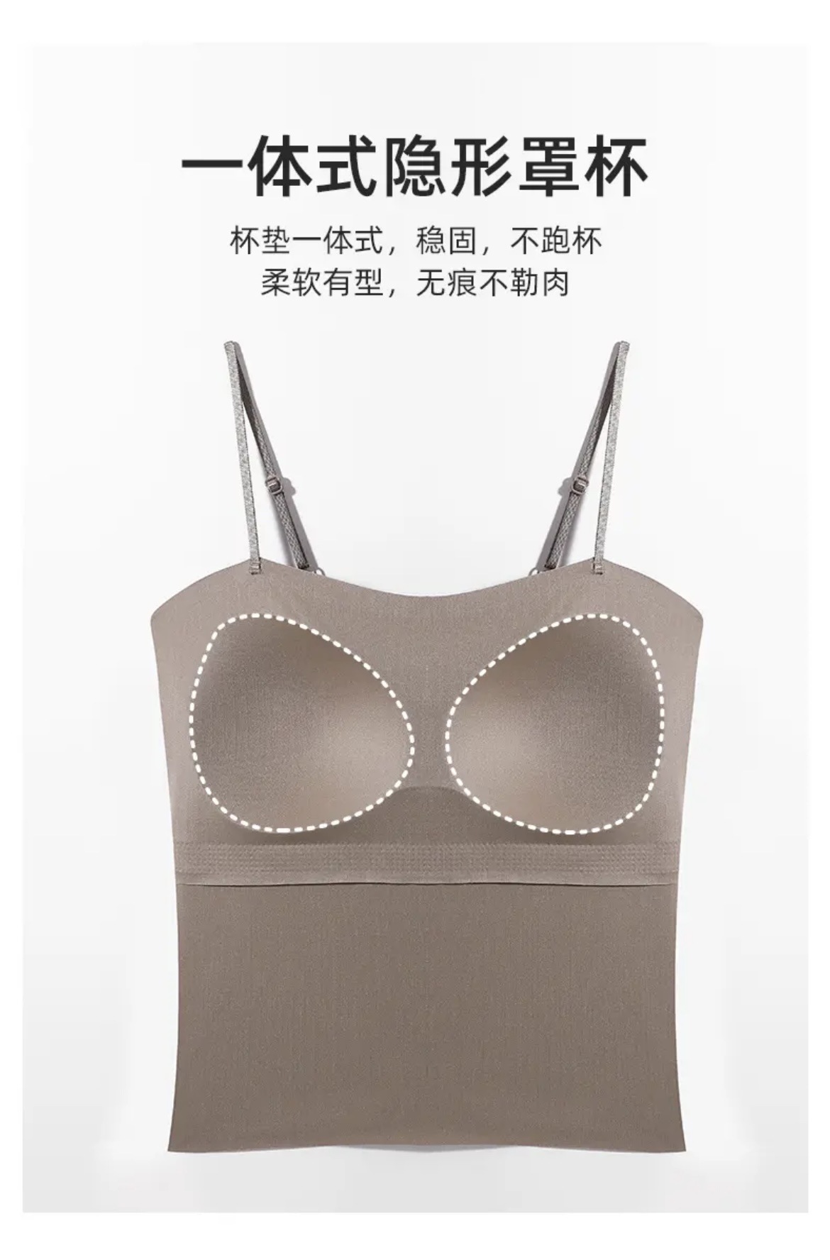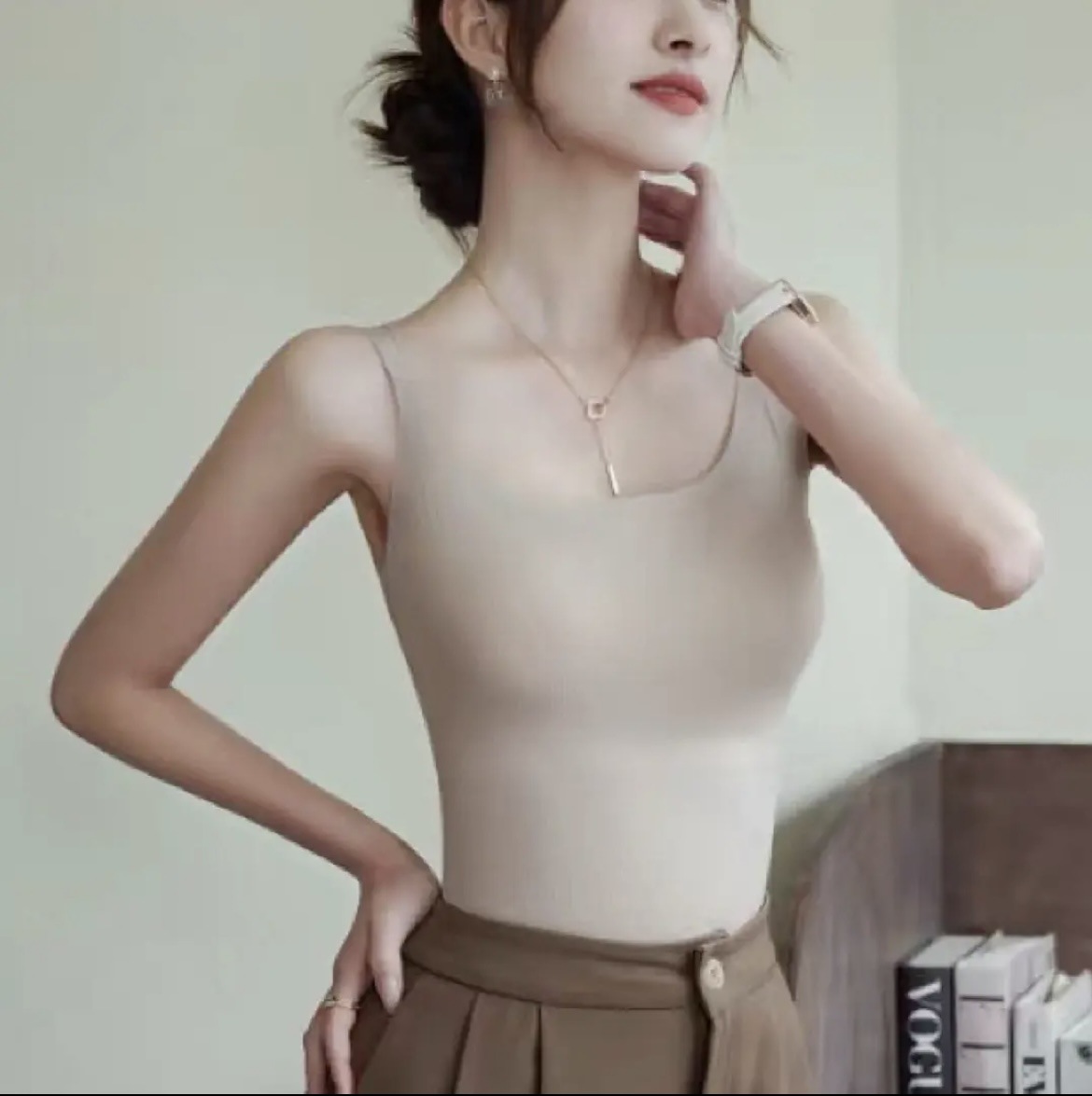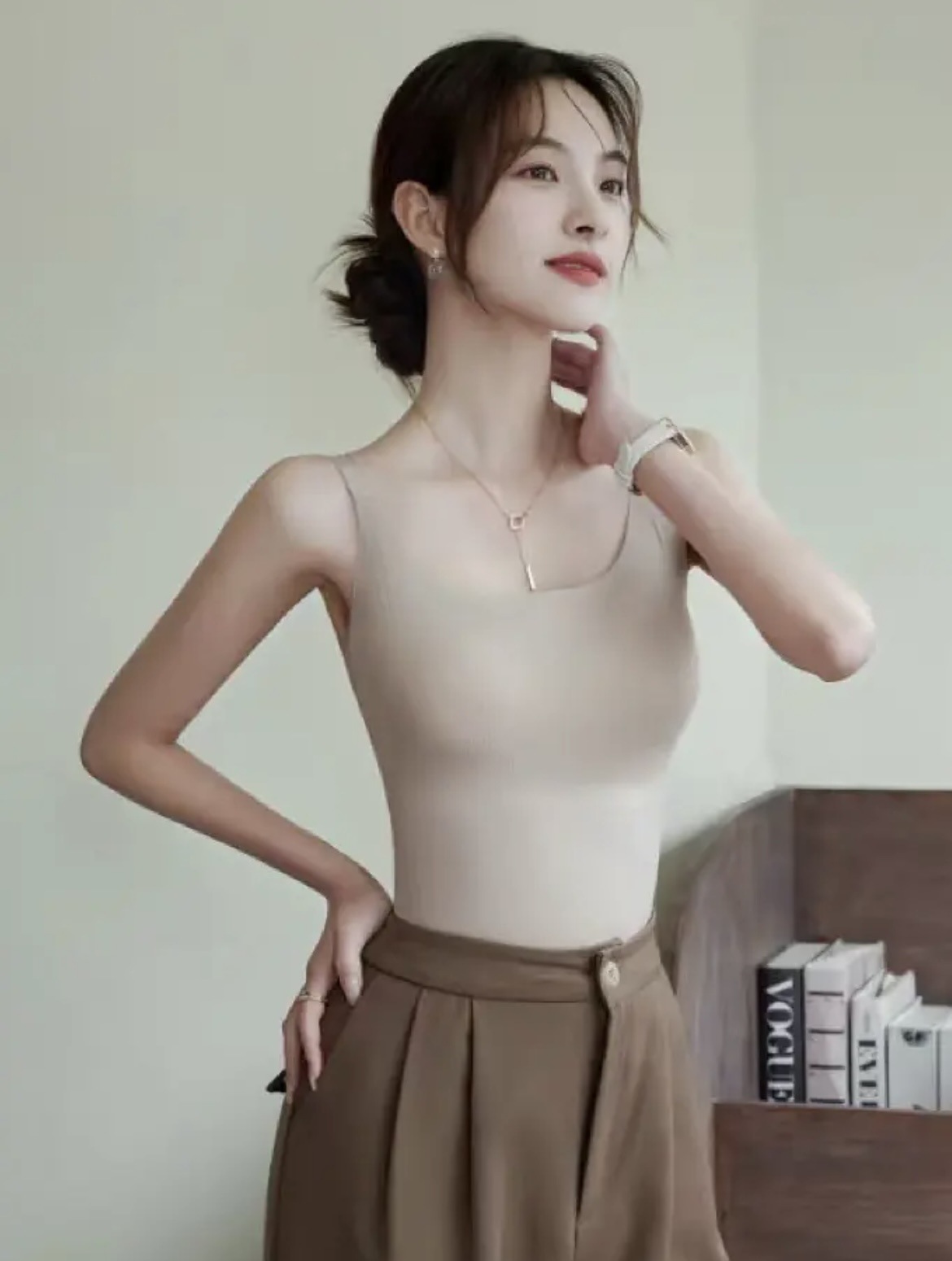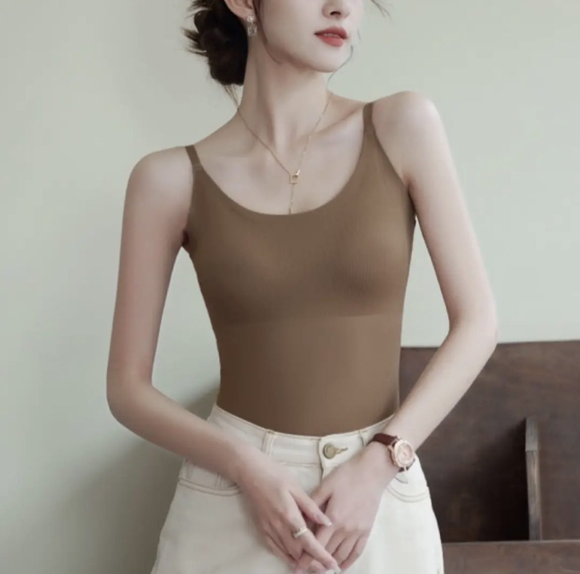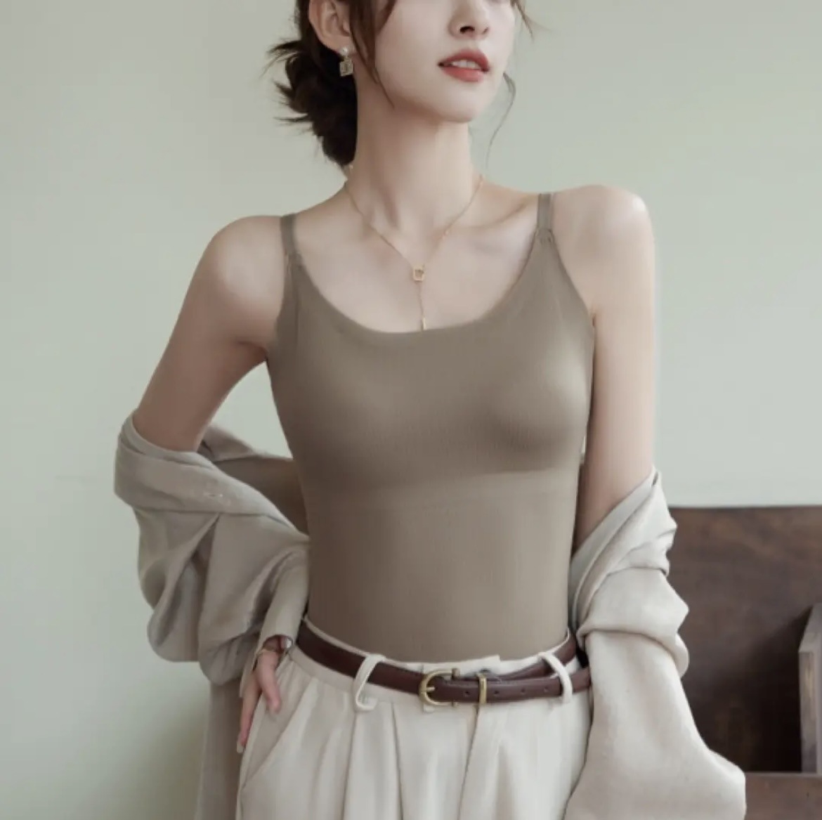 소자본 여성용 솔리드 컬러 캐미솔, 일체형 고정 가슴 패드 베이스 레이어, 슬리밍 및 아름다운 등 여성