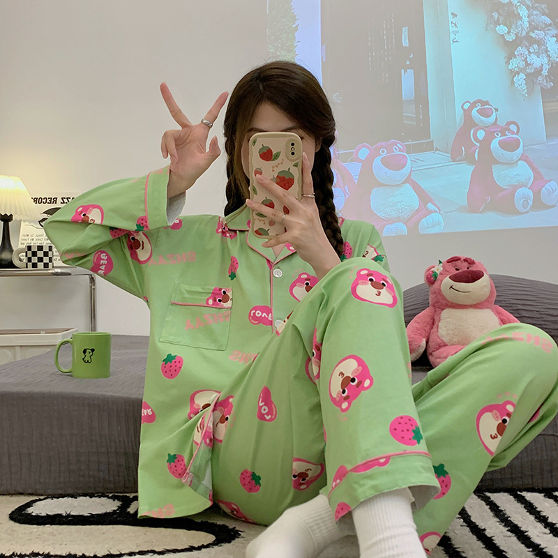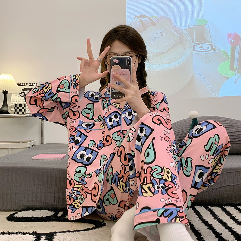 동남 아시아 2024 새로운 잠옷 여성의 봄과 가을 만화 인쇄 카디건 긴 소매 큰 크기스토어 가기