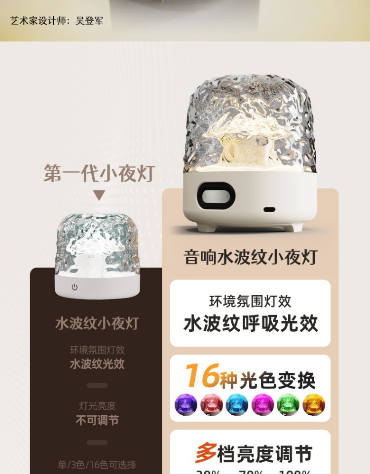 带音响+灯罩:单件尺寸是12.9*12.9*14.1CM,毛重576g