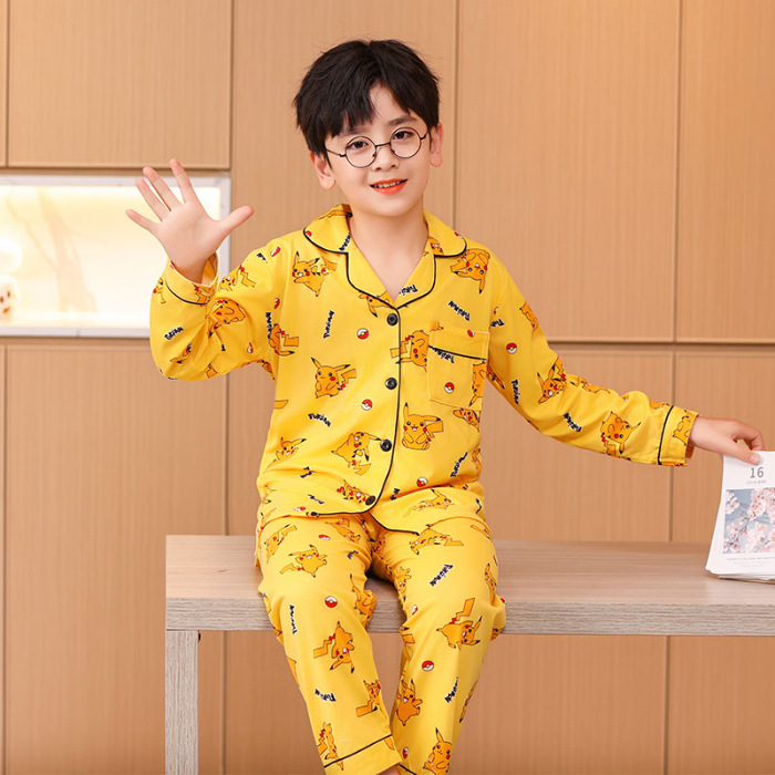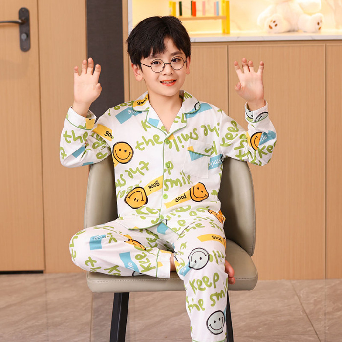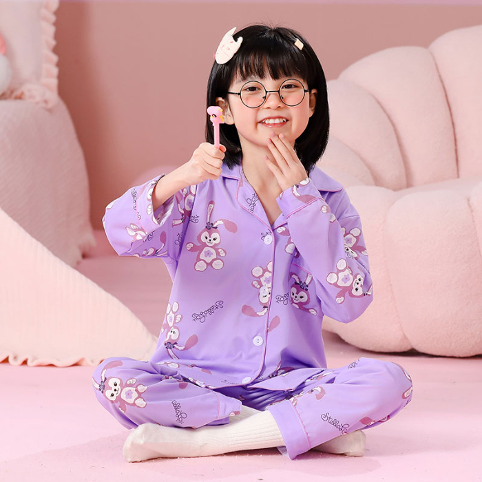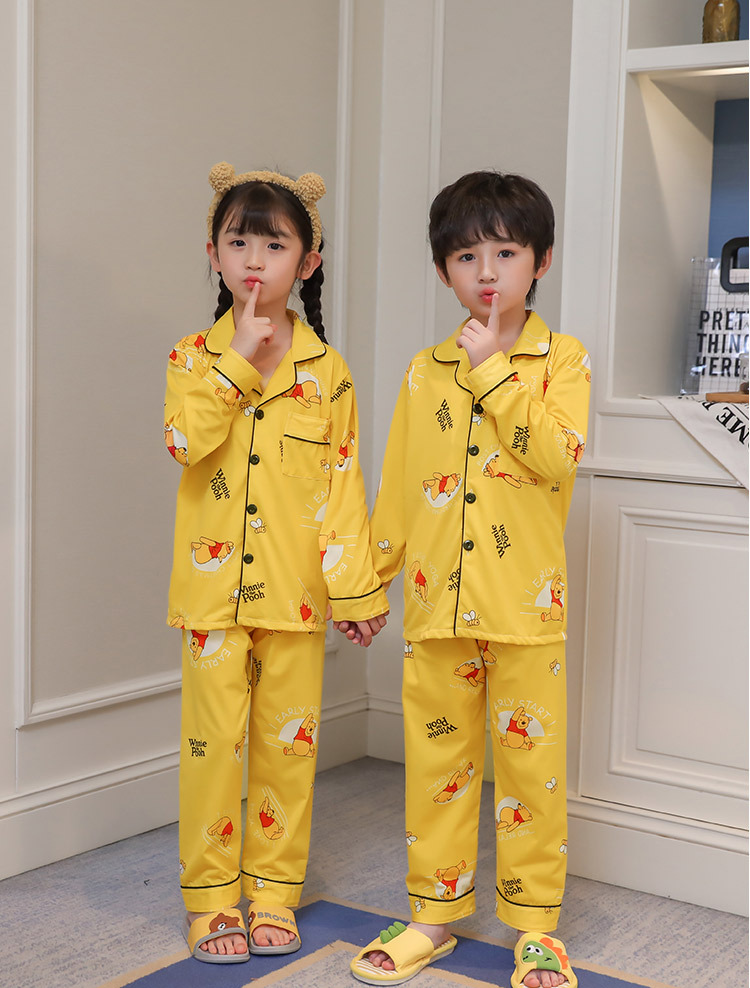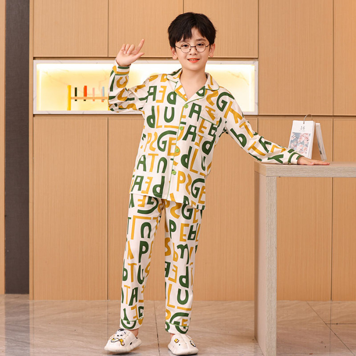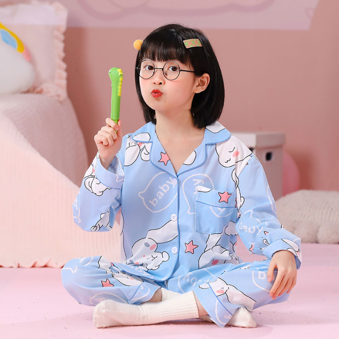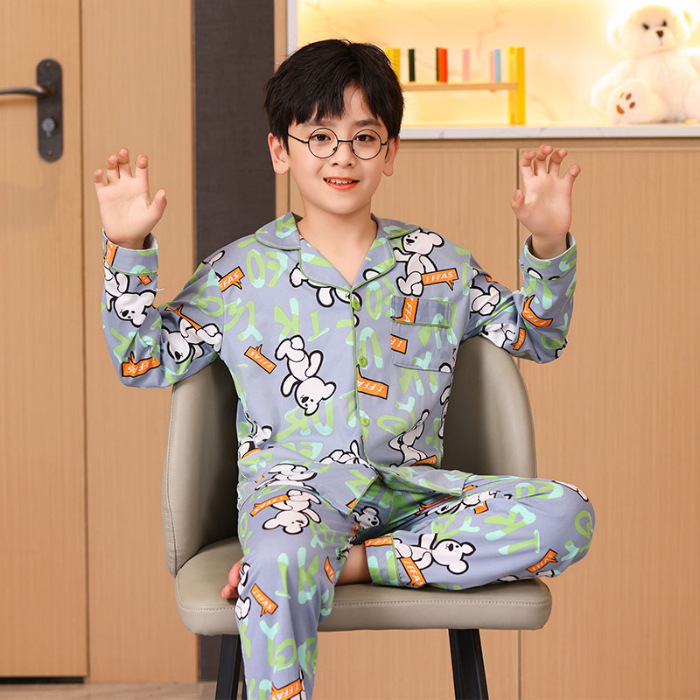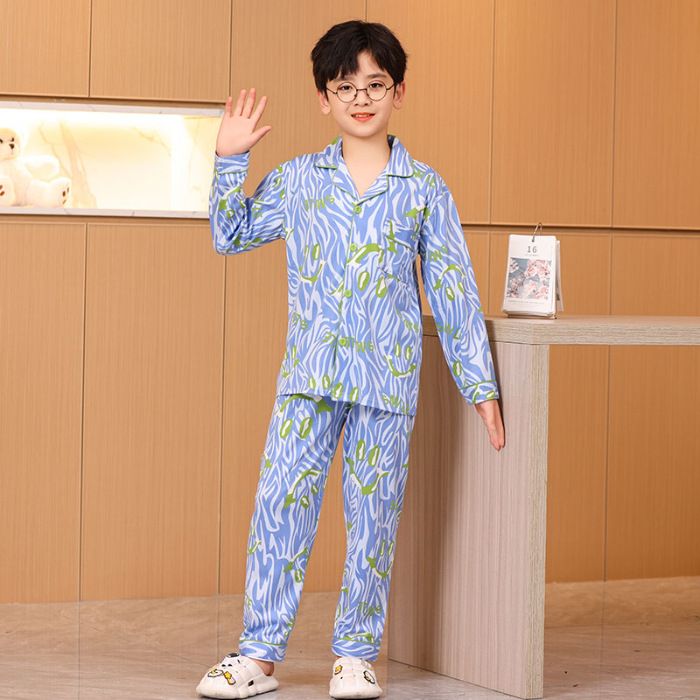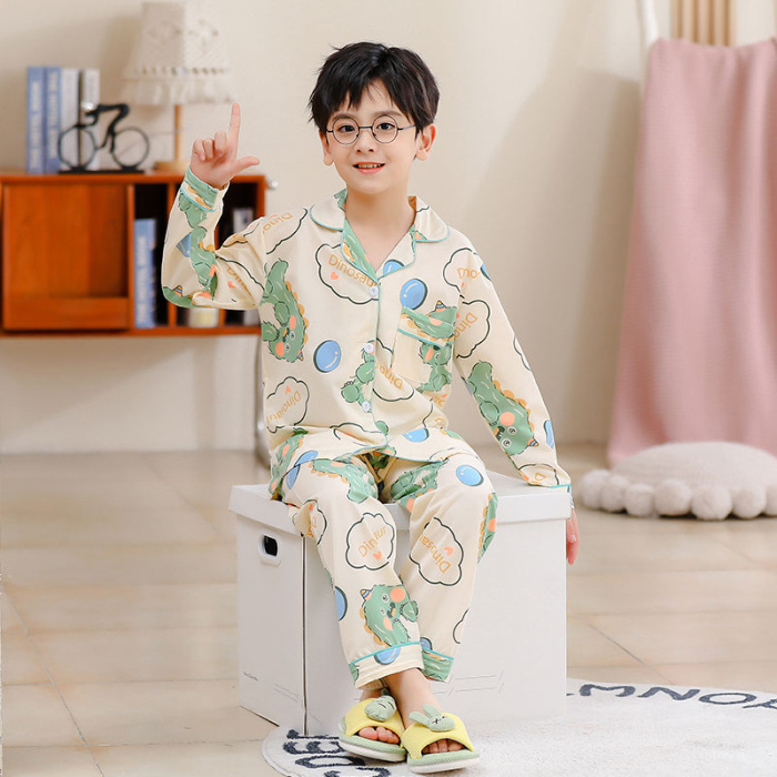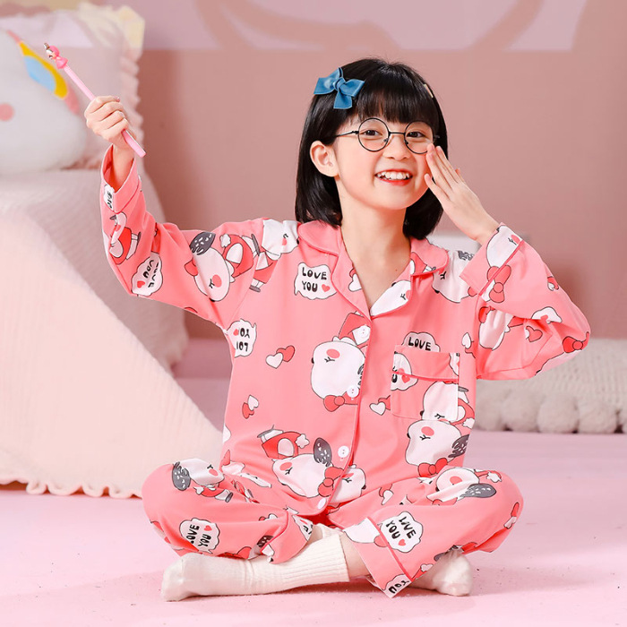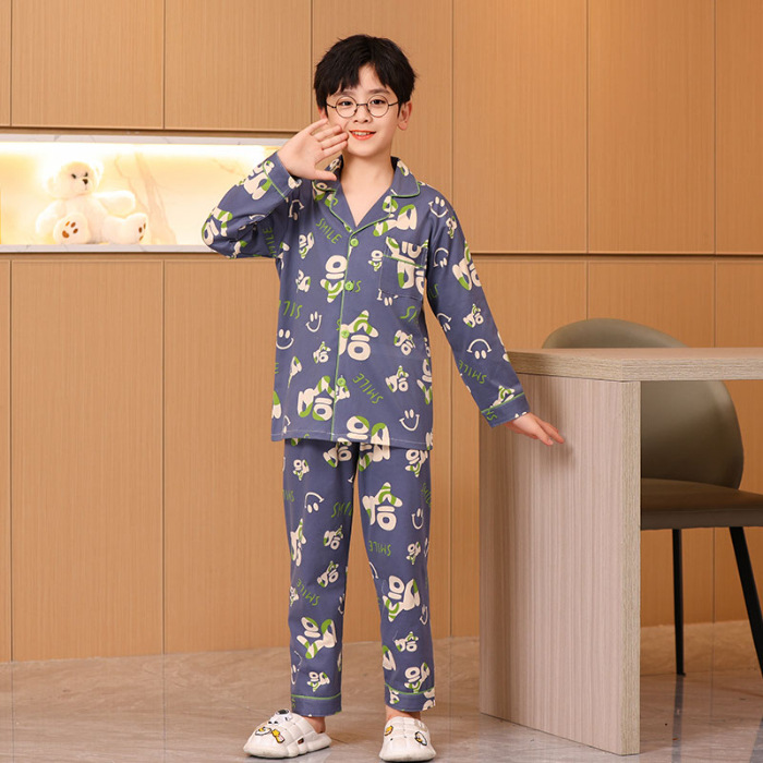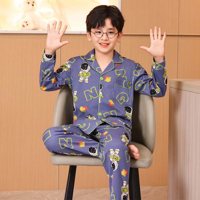 대외 무역 새로운 봄과 가을 어린이 긴 소매 모조 면화 소년과 소녀 옷깃 귀여운 만화 집 세트 도매스토어 가기