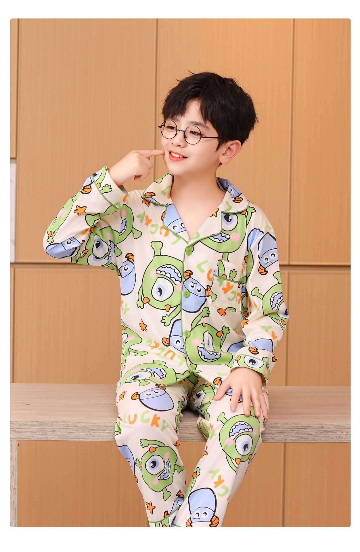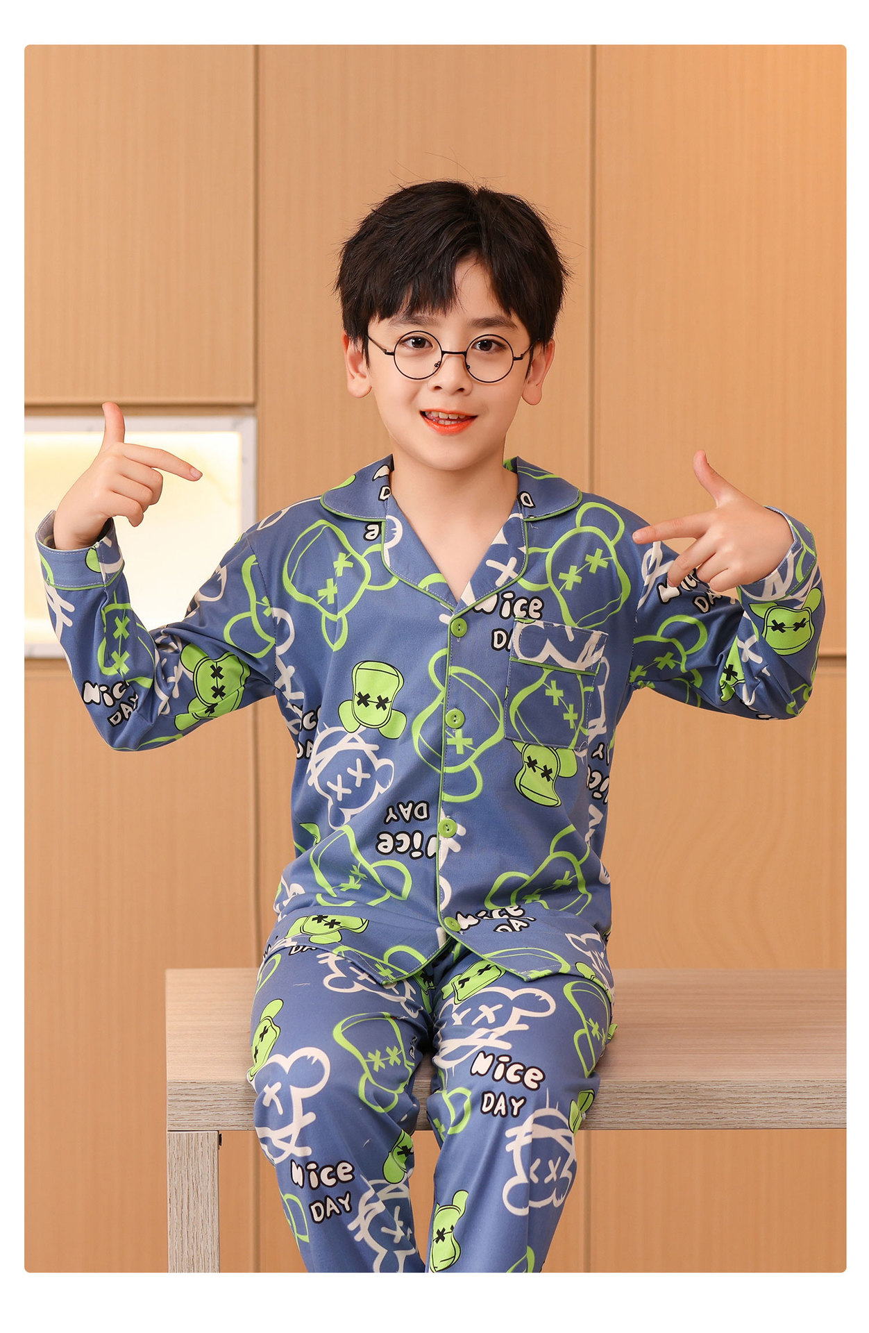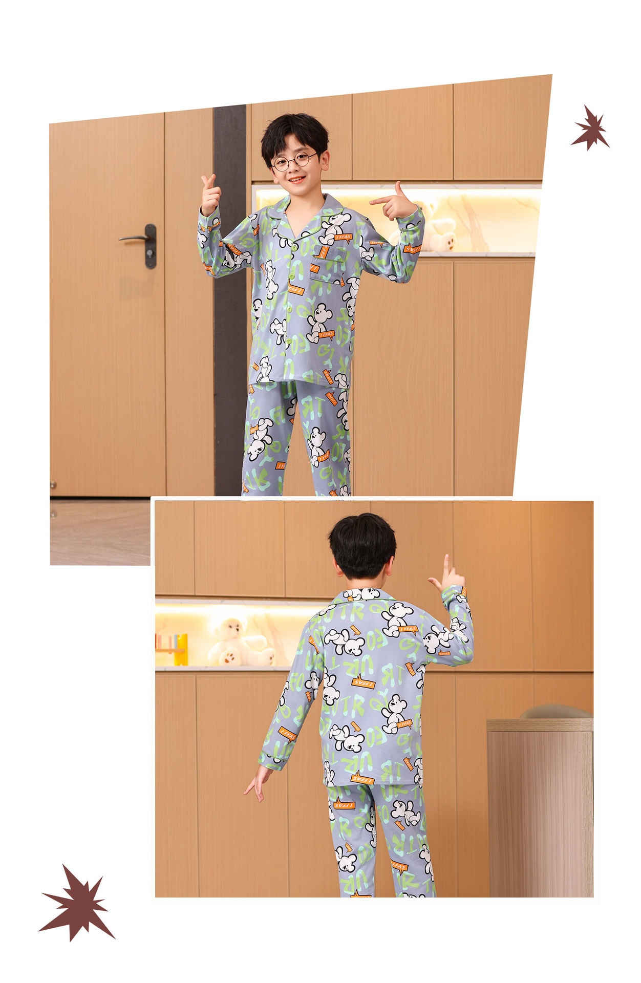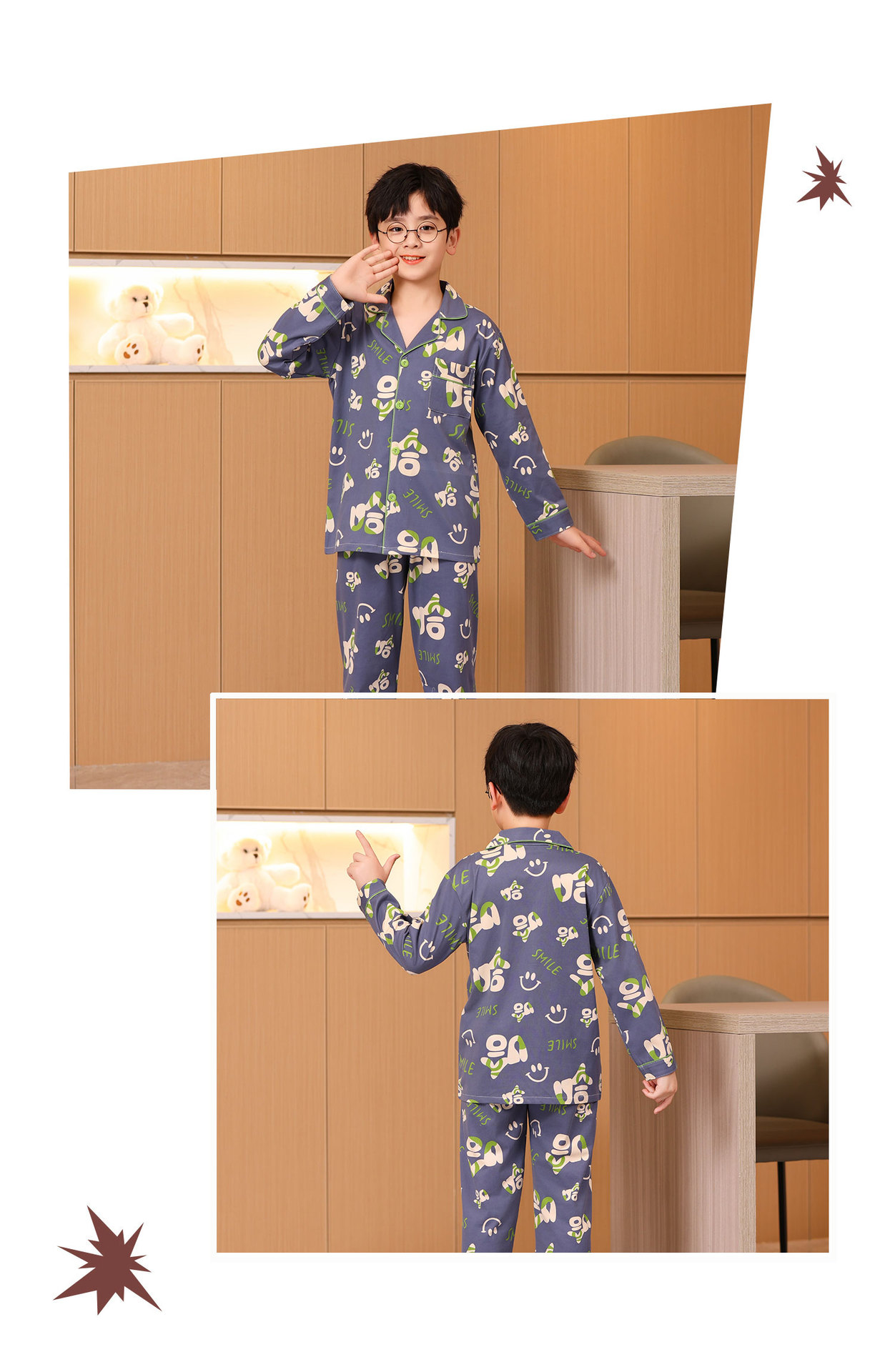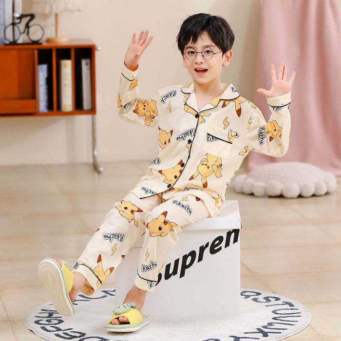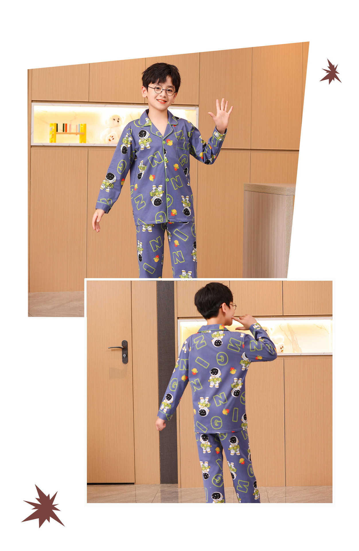 대외 무역 새로운 봄과 가을 어린이 긴 소매 모조 면화 소년과 소녀 옷깃 귀여운 만화 집 세트 도매스토어 가기
