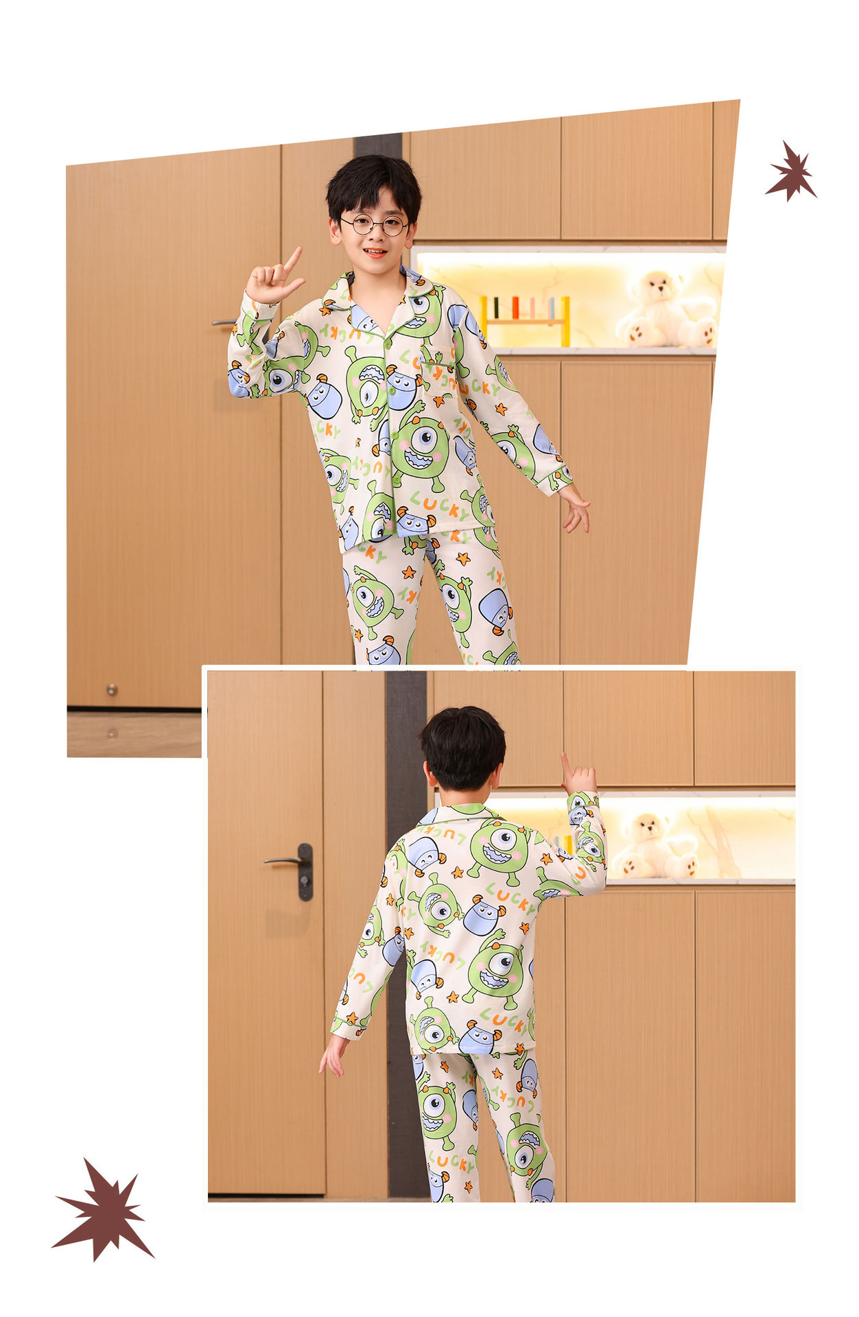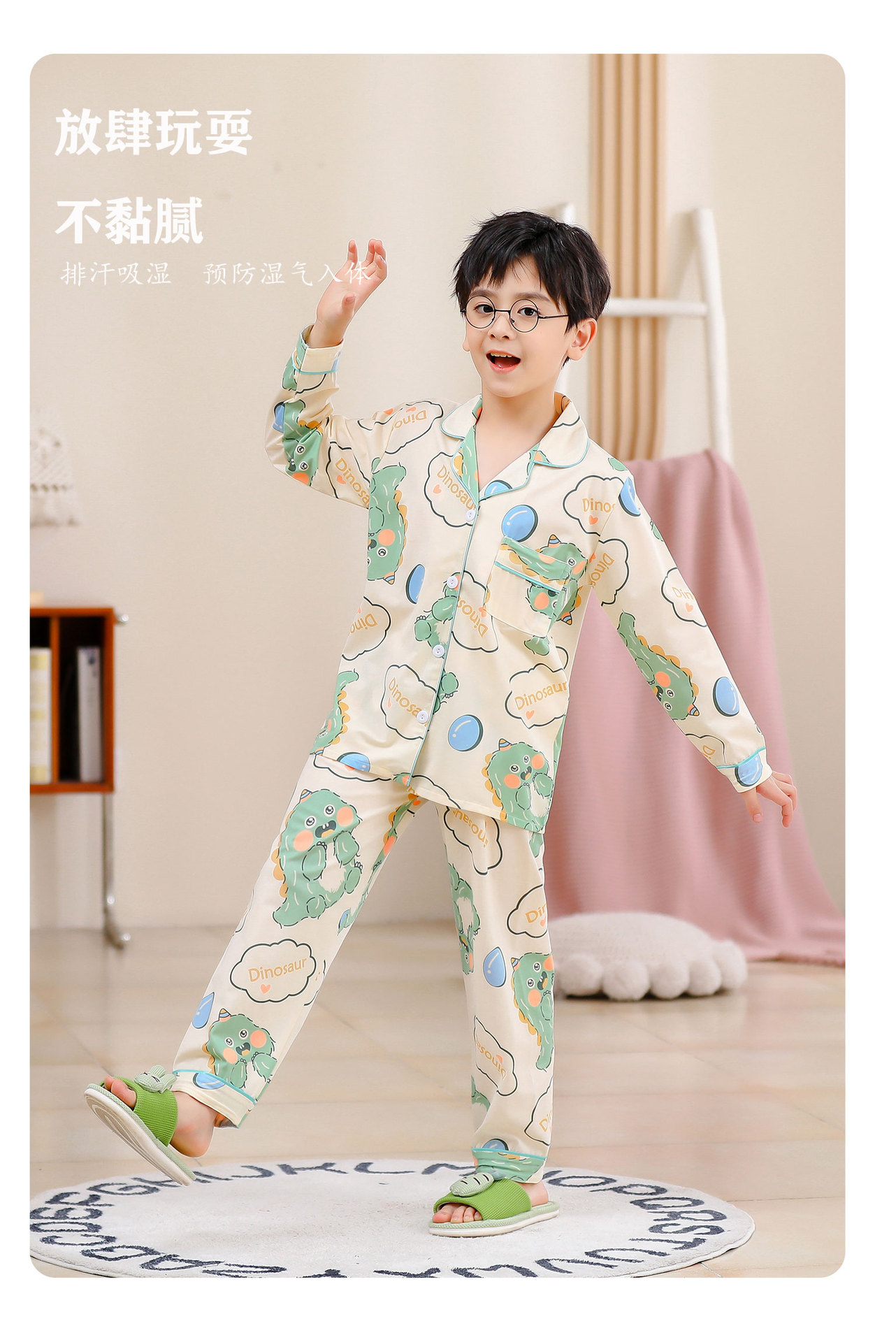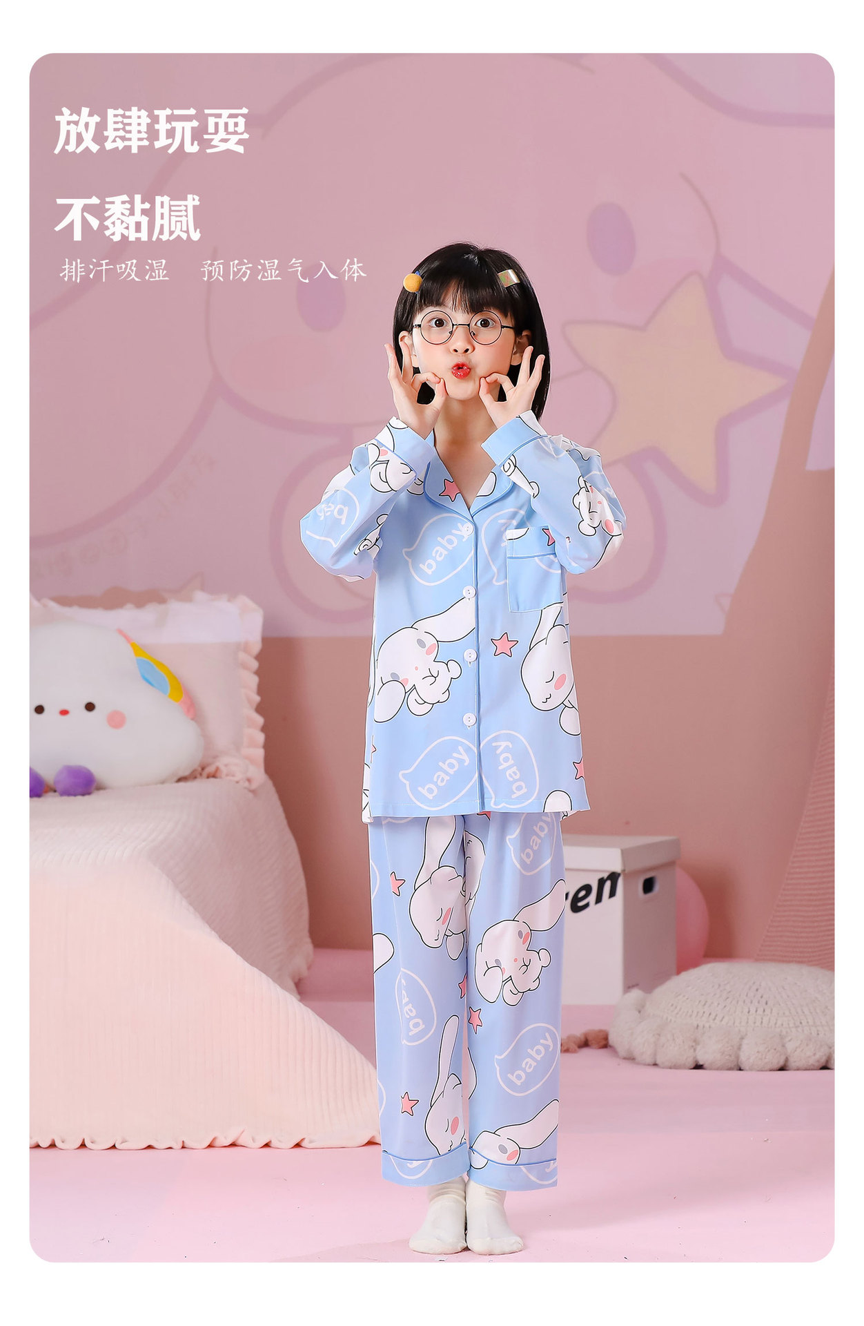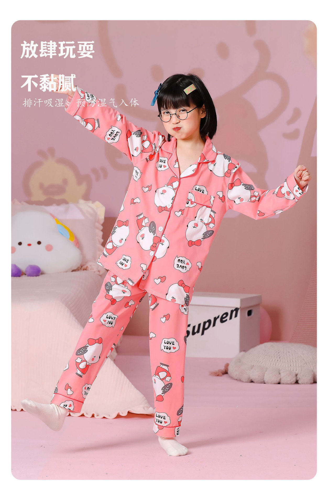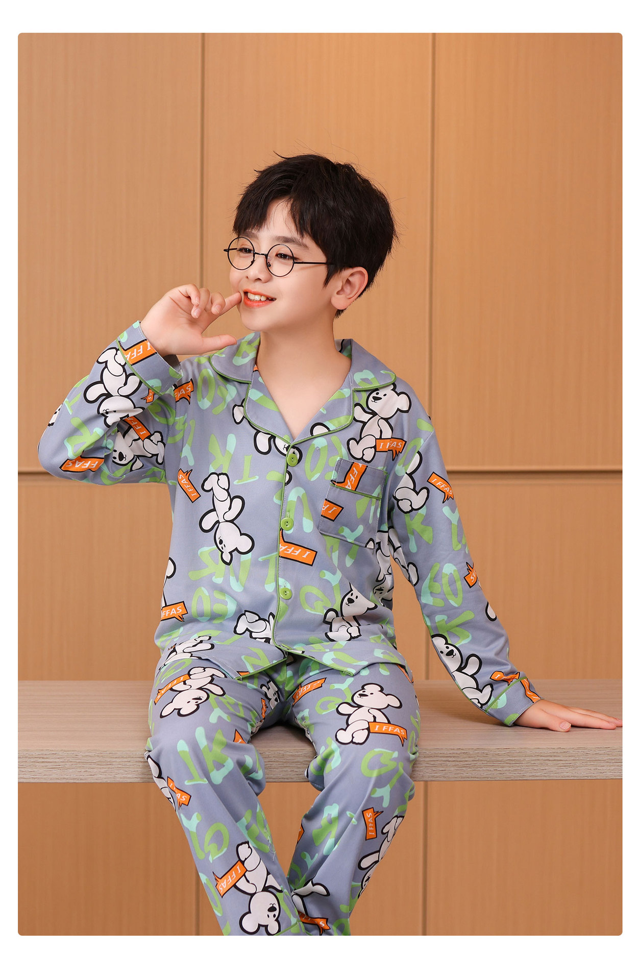 대외 무역 새로운 봄과 가을 어린이 긴 소매 모조 면화 소년과 소녀 옷깃 귀여운 만화 집 세트 도매스토어 가기