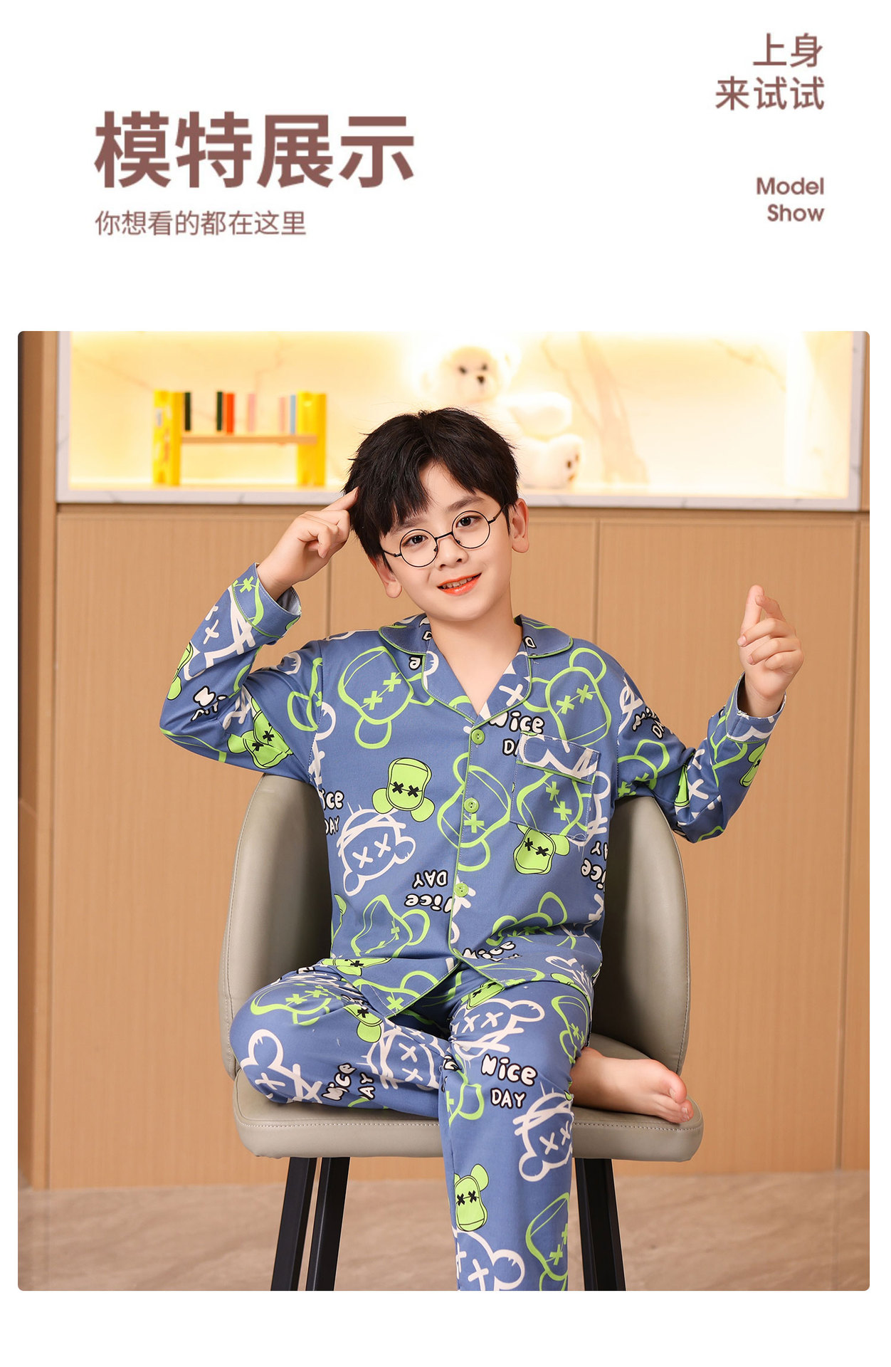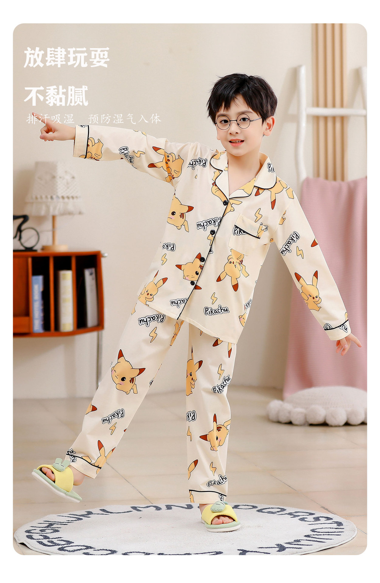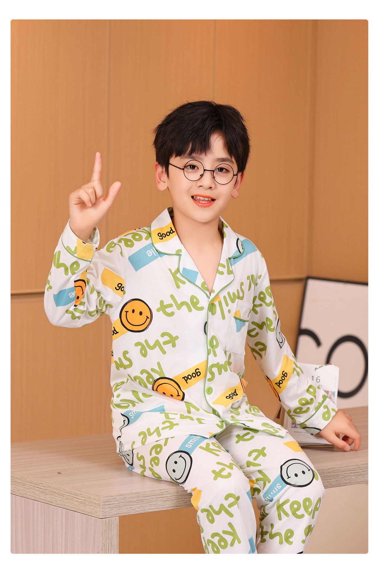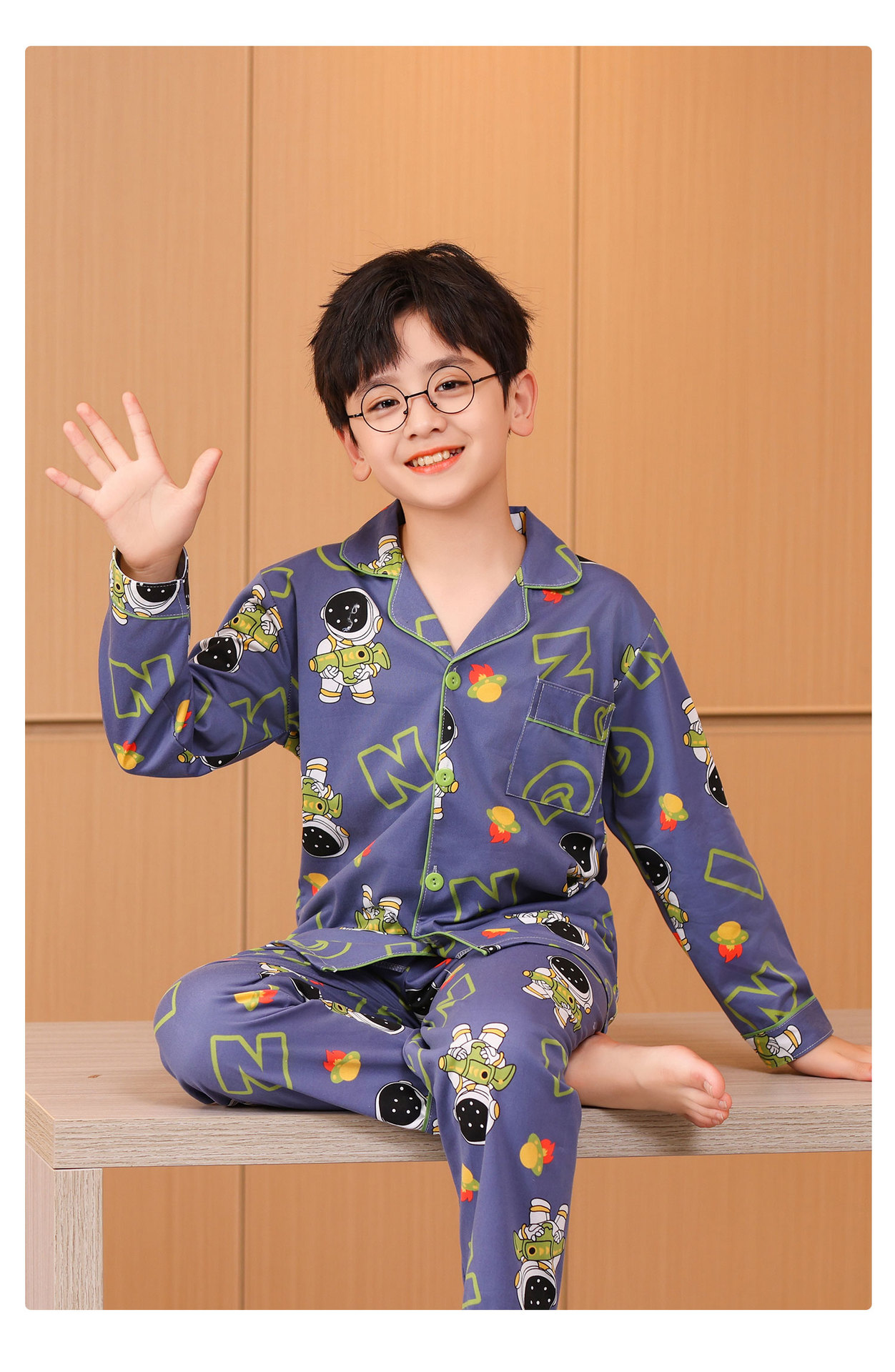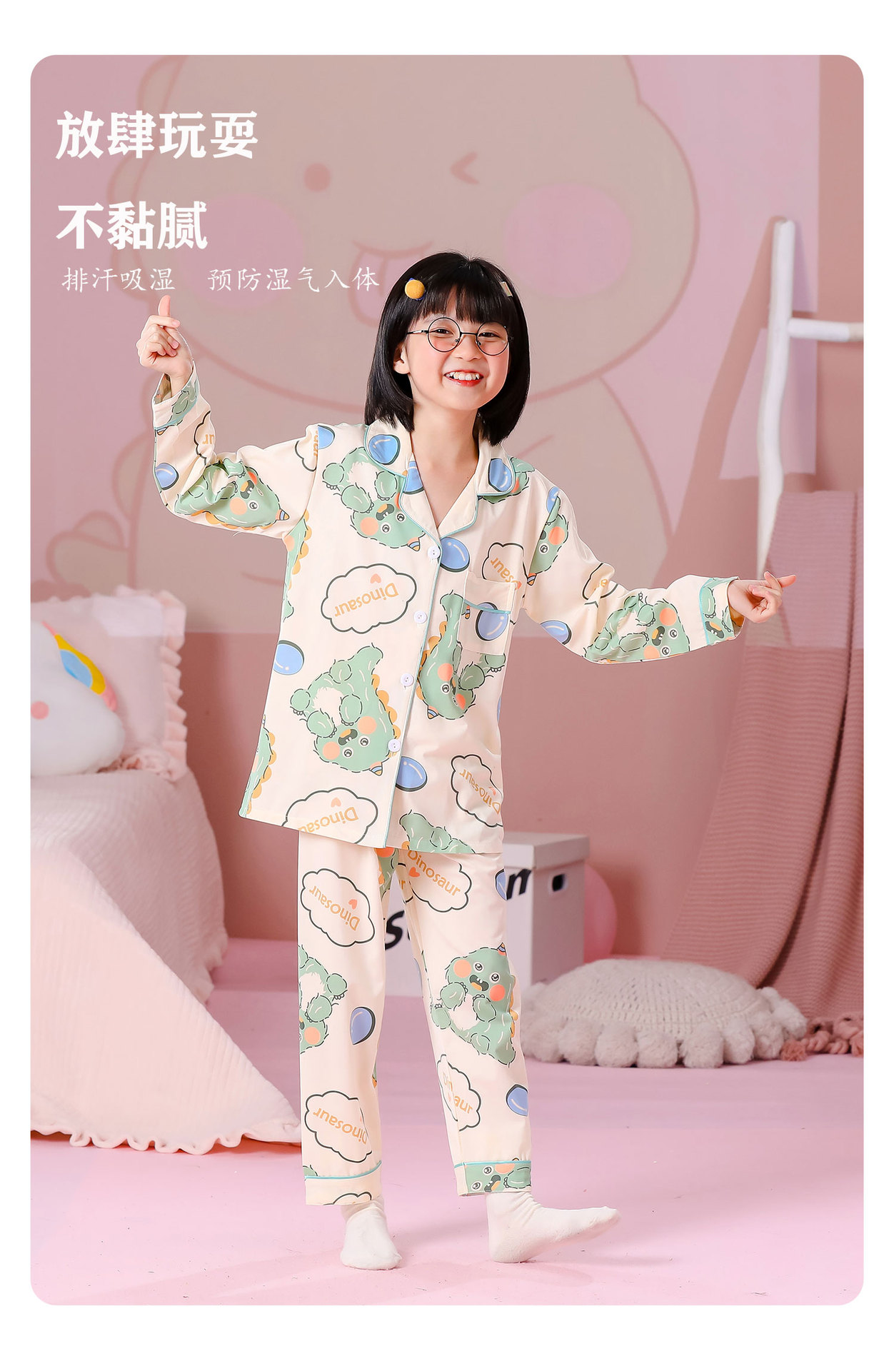 대외 무역 새로운 봄과 가을 어린이 긴 소매 모조 면화 소년과 소녀 옷깃 귀여운 만화 집 세트 도매스토어 가기