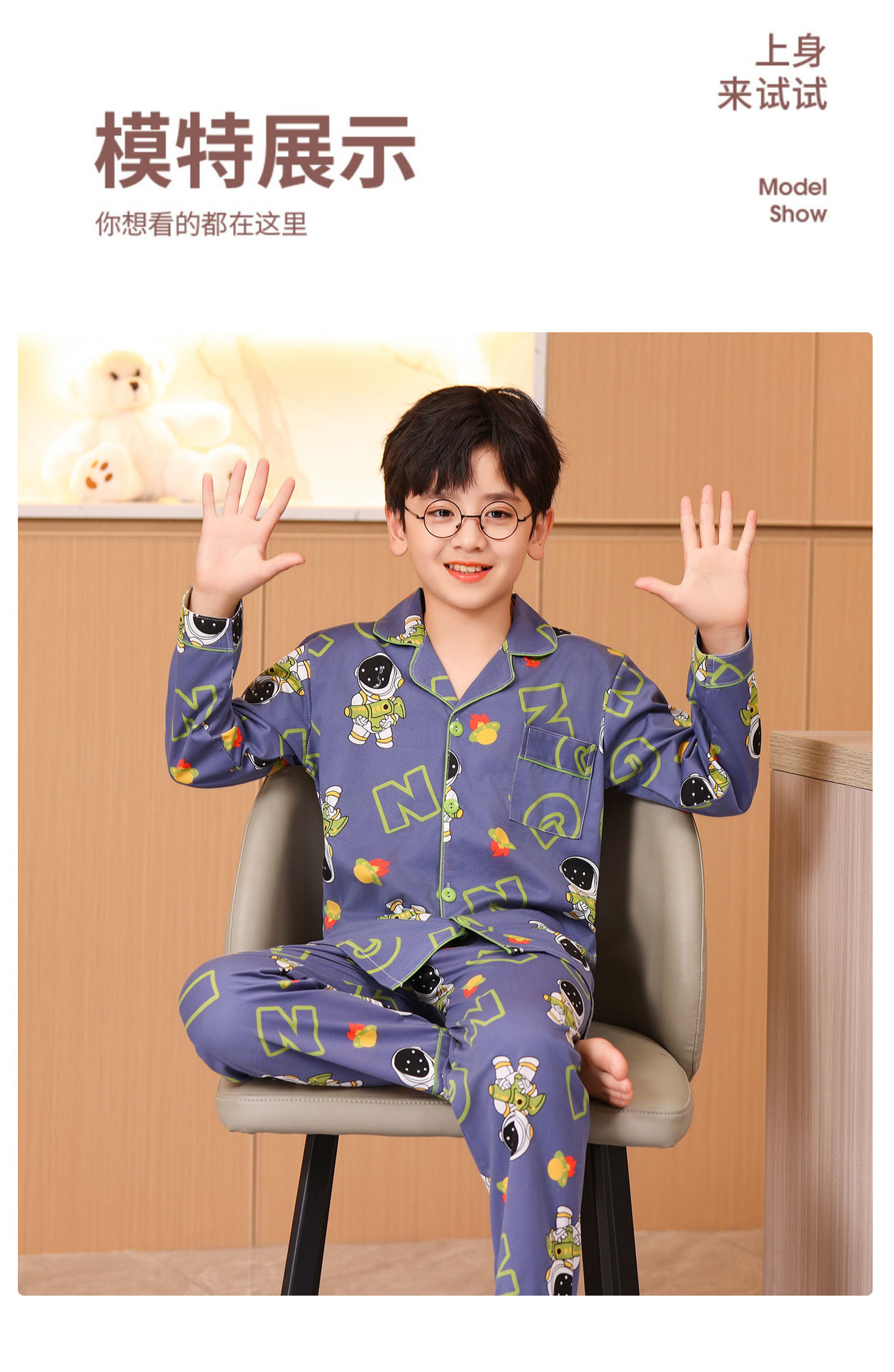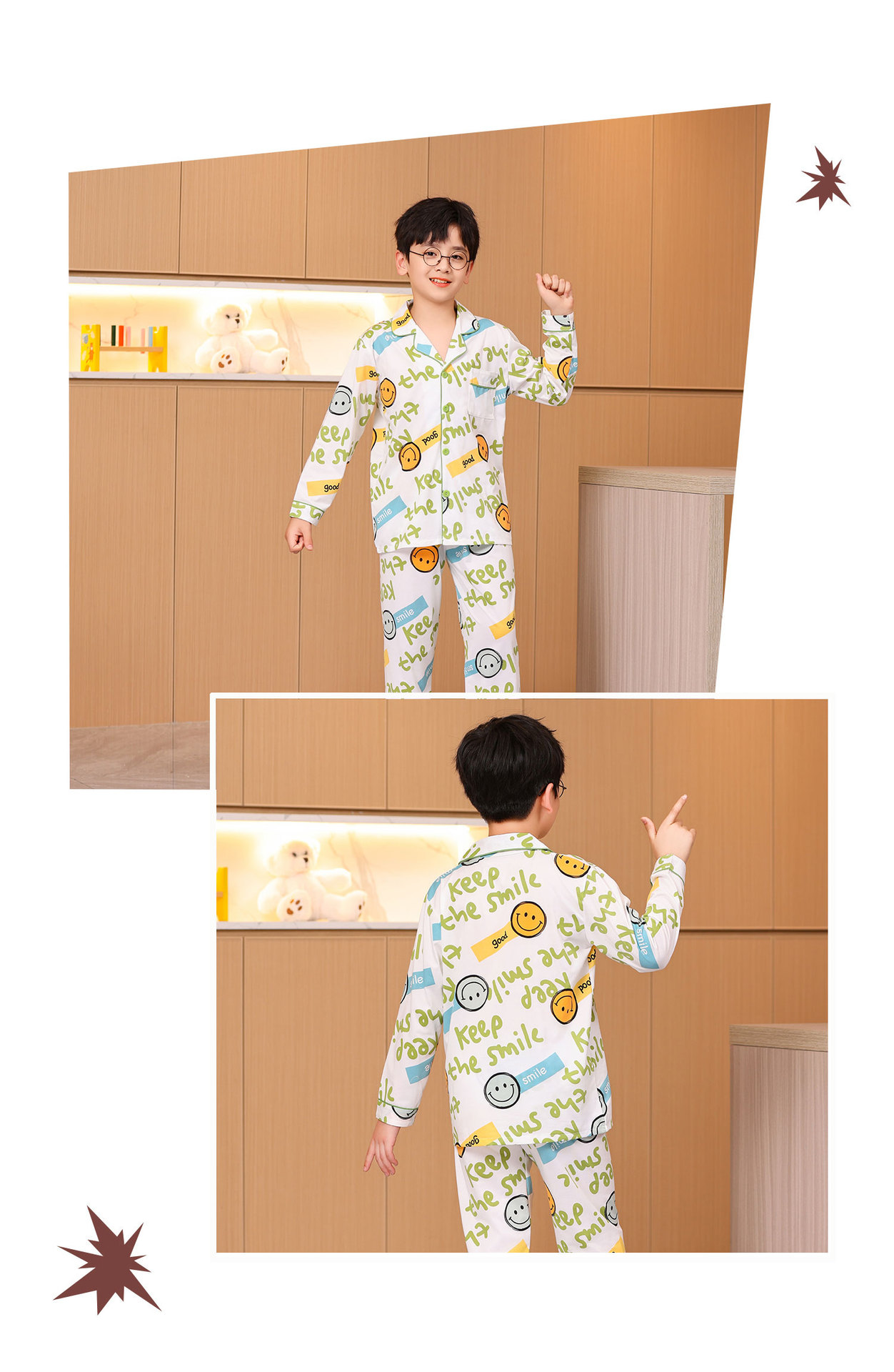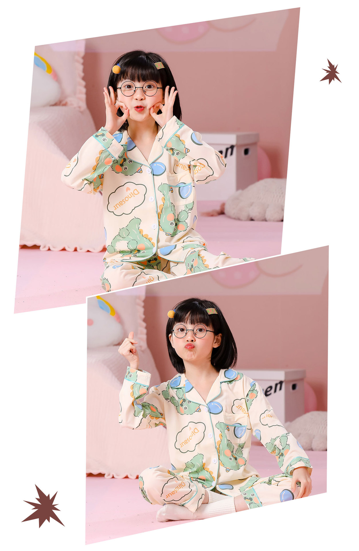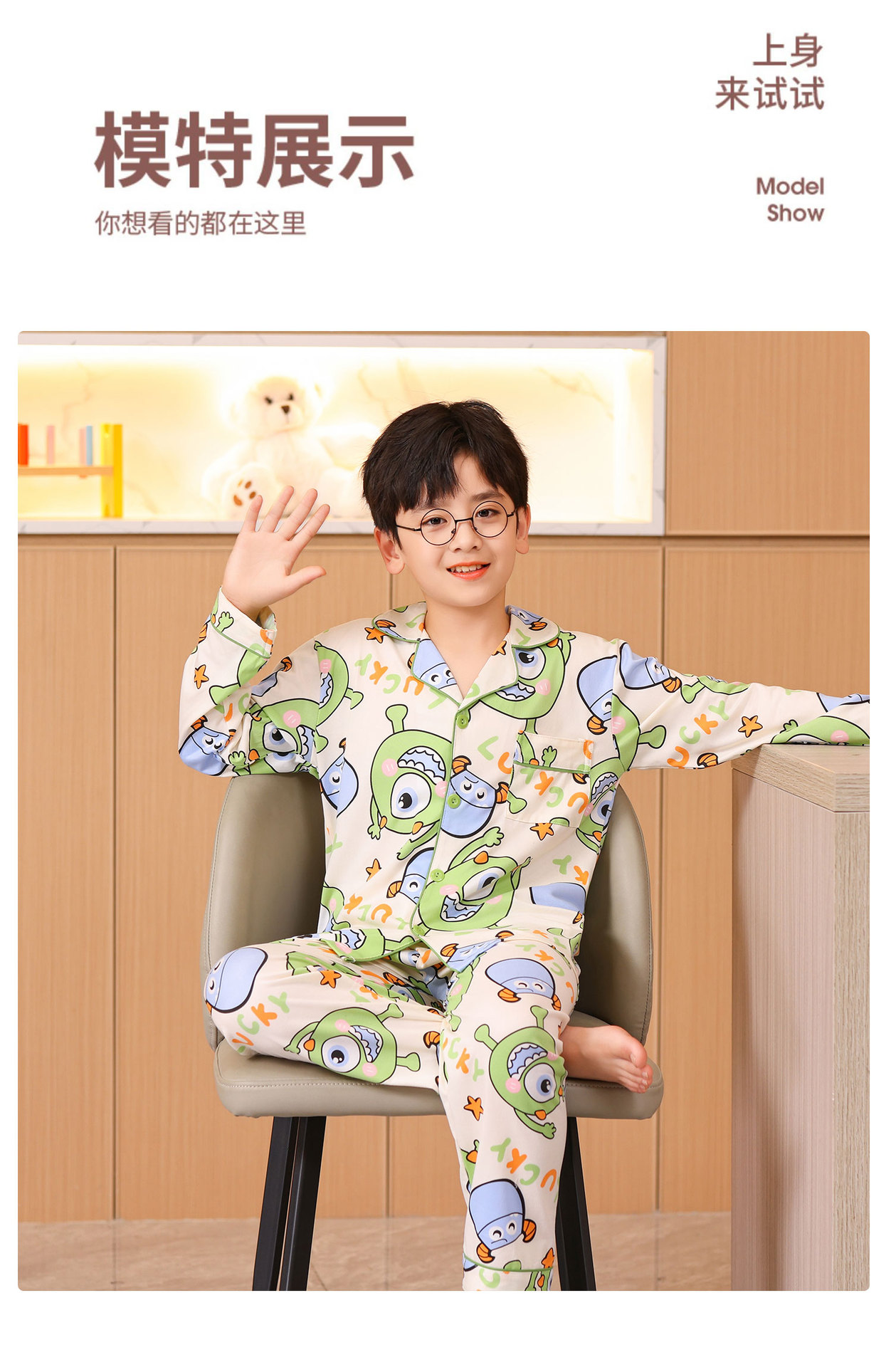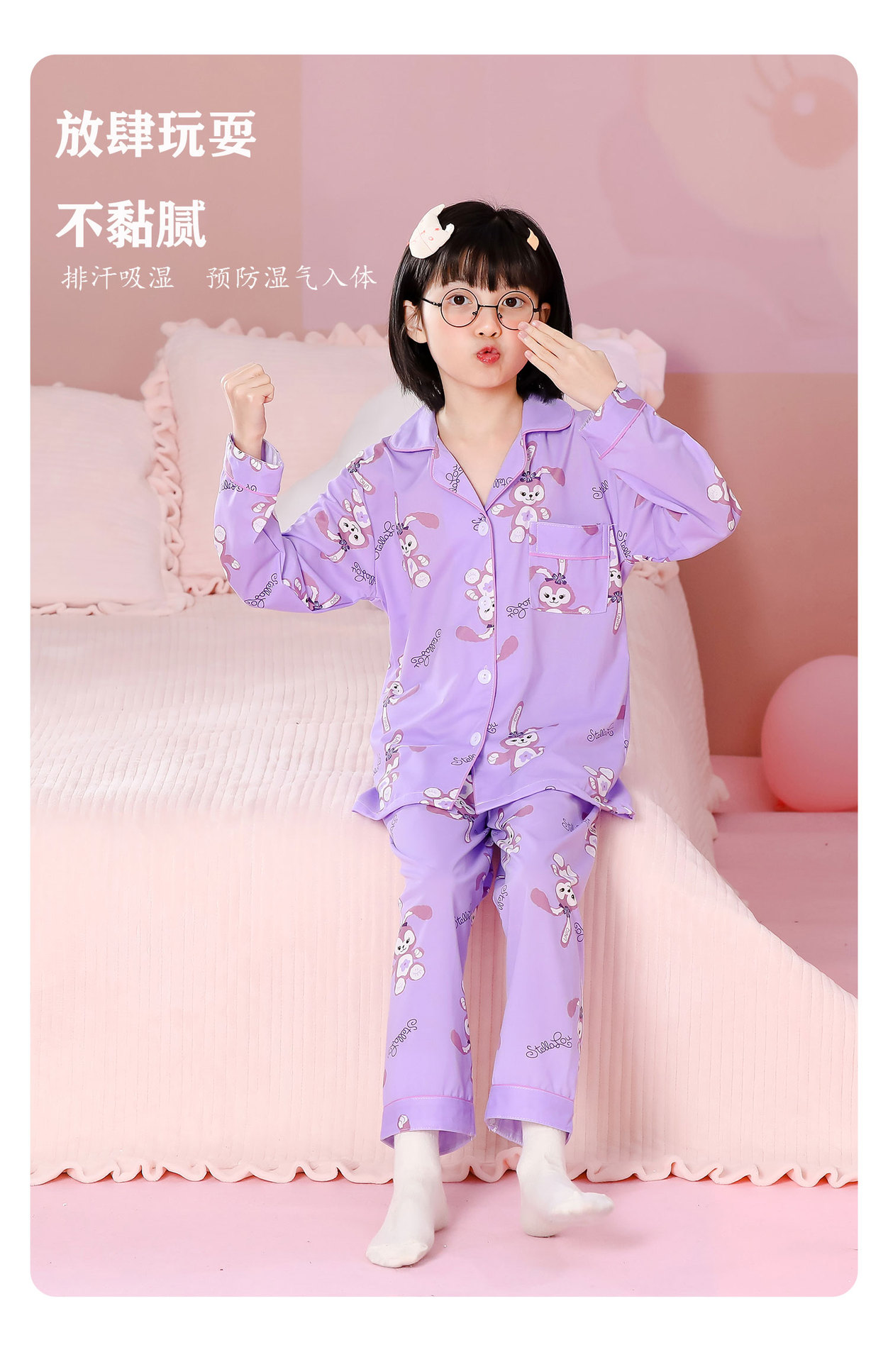 대외 무역 새로운 봄과 가을 어린이 긴 소매 모조 면화 소년과 소녀 옷깃 귀여운 만화 집 세트 도매스토어 가기