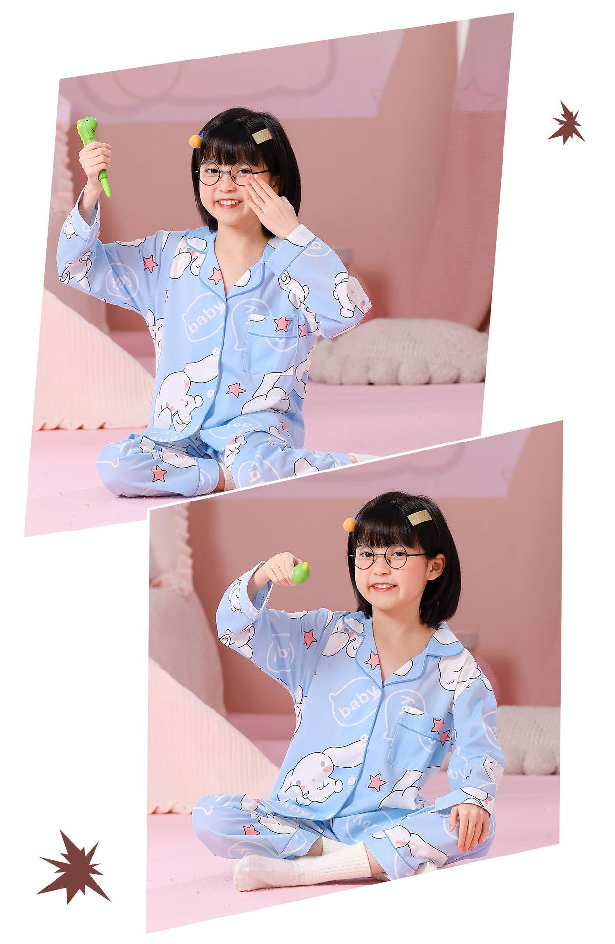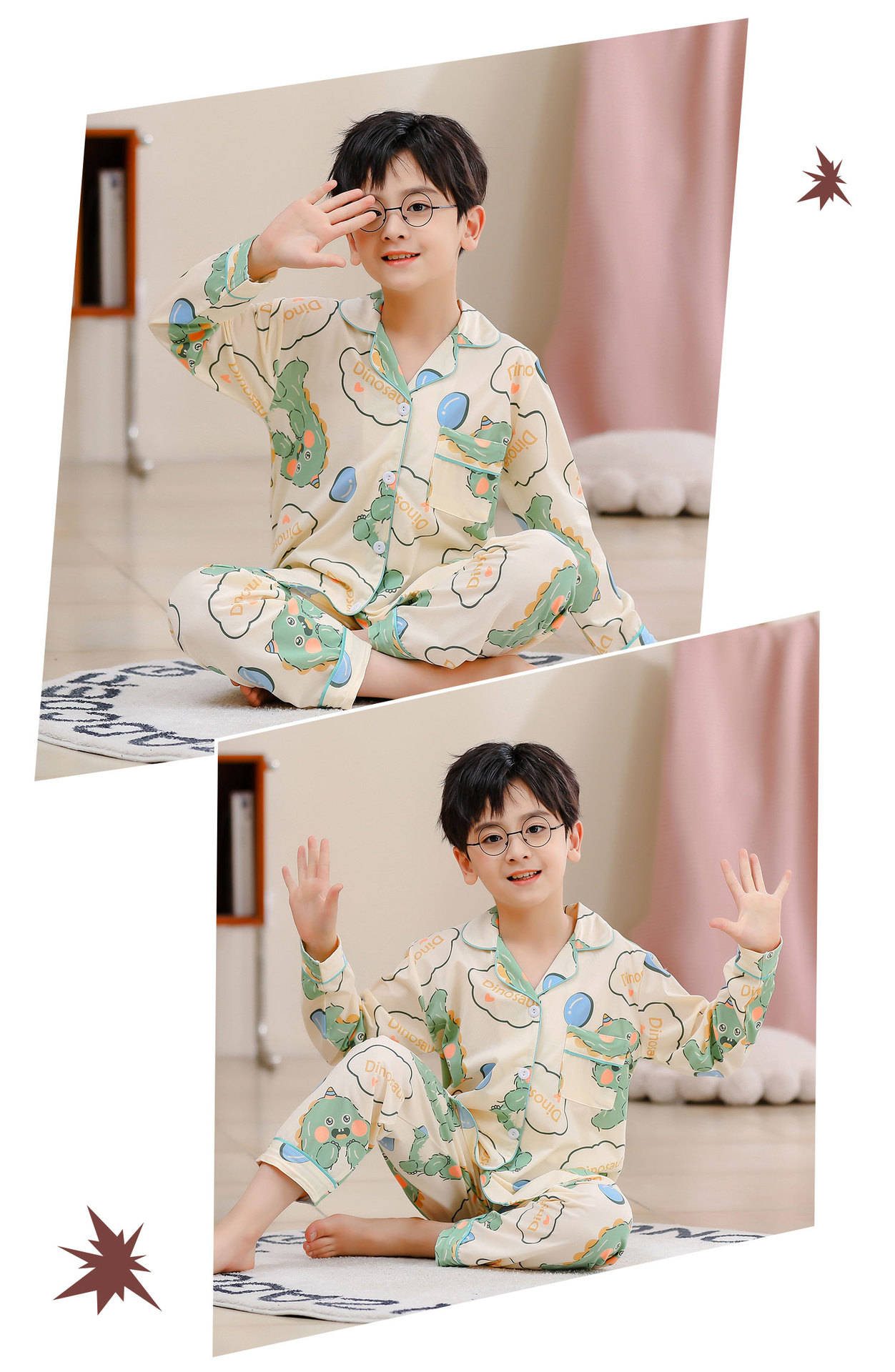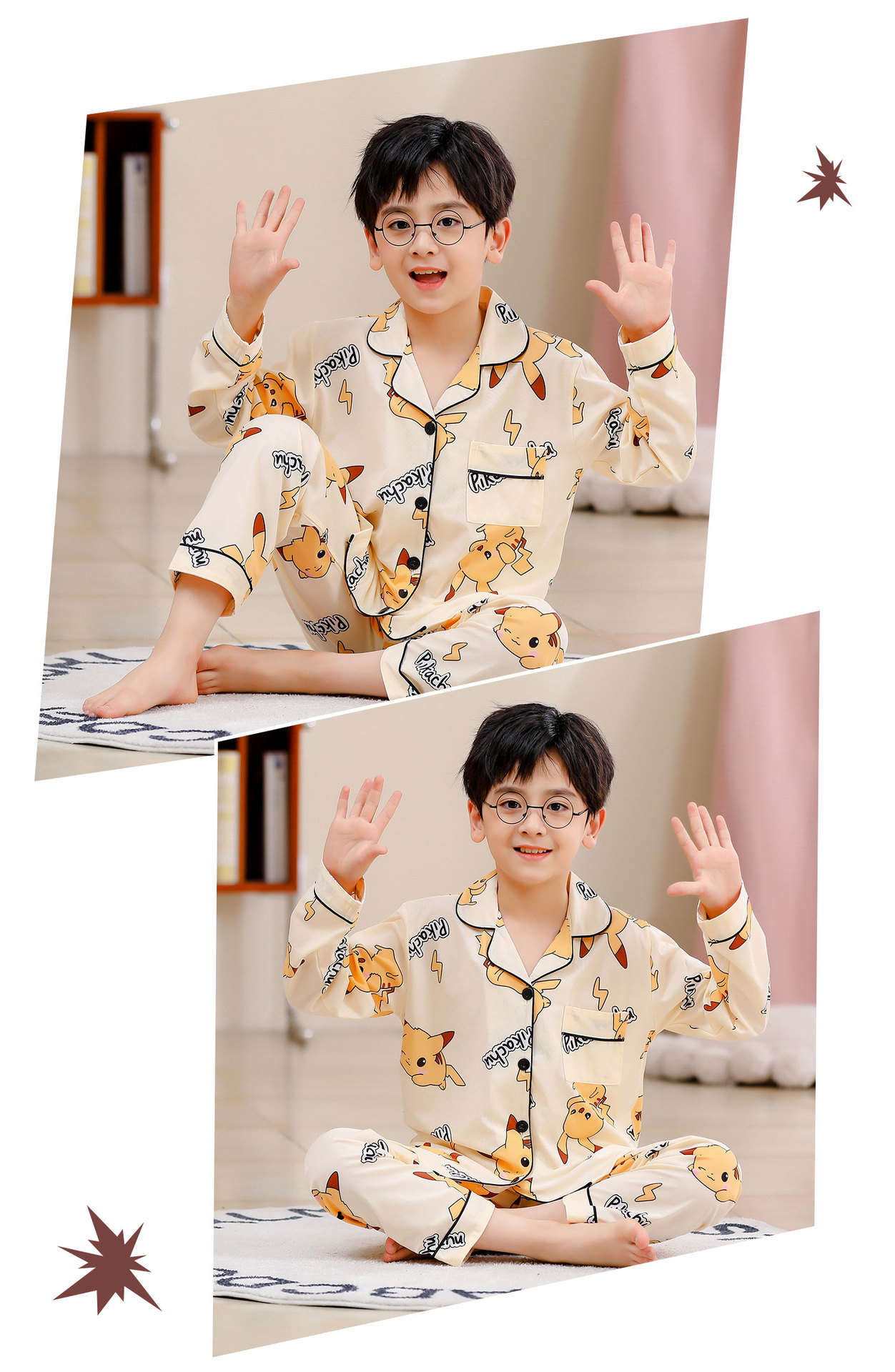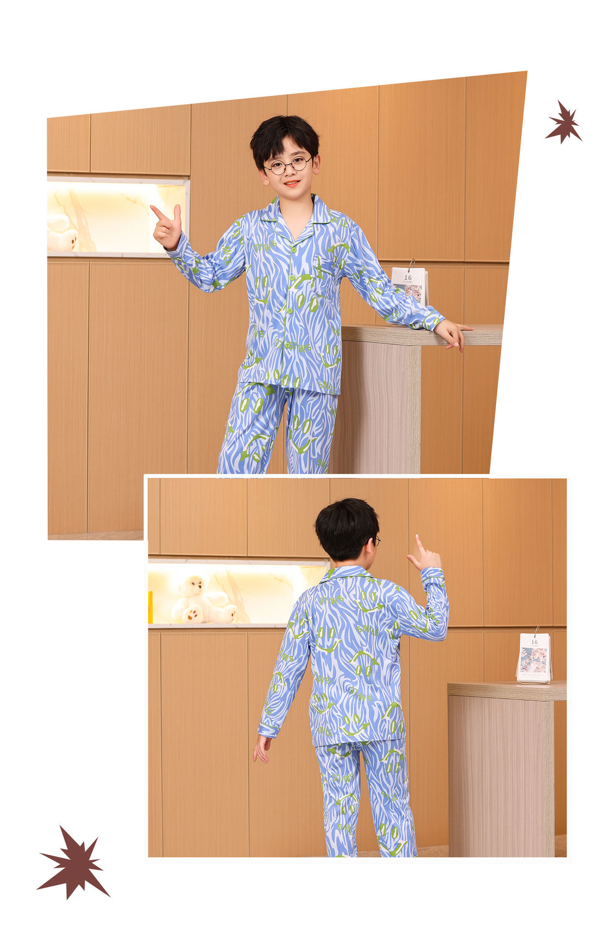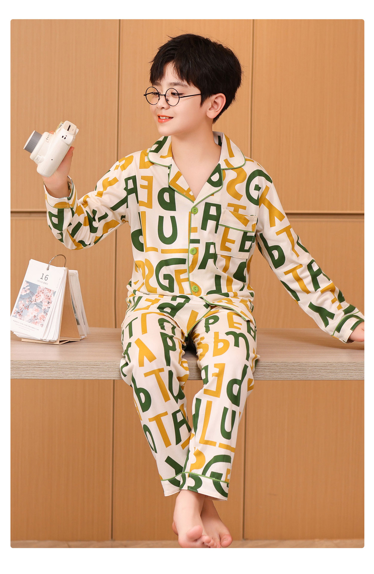 대외 무역 새로운 봄과 가을 어린이 긴 소매 모조 면화 소년과 소녀 옷깃 귀여운 만화 집 세트 도매스토어 가기