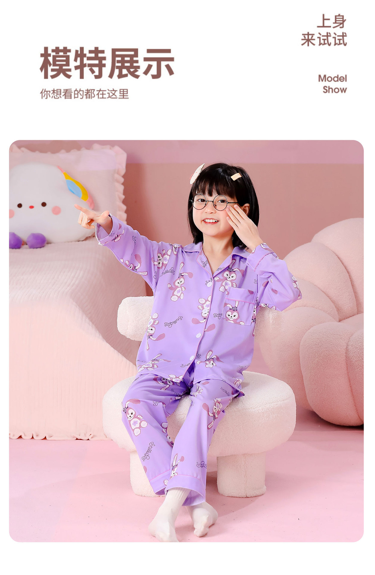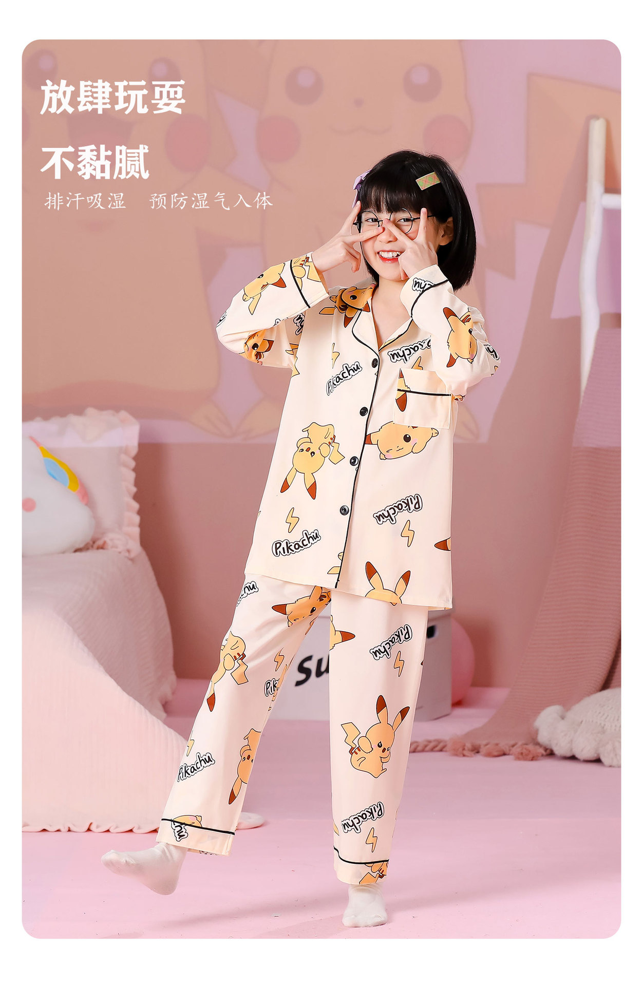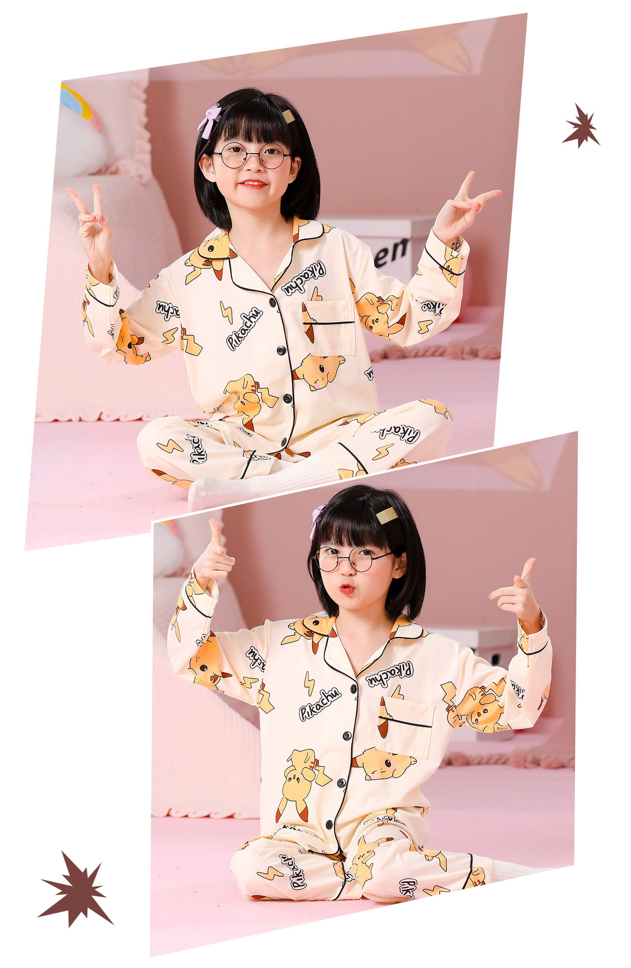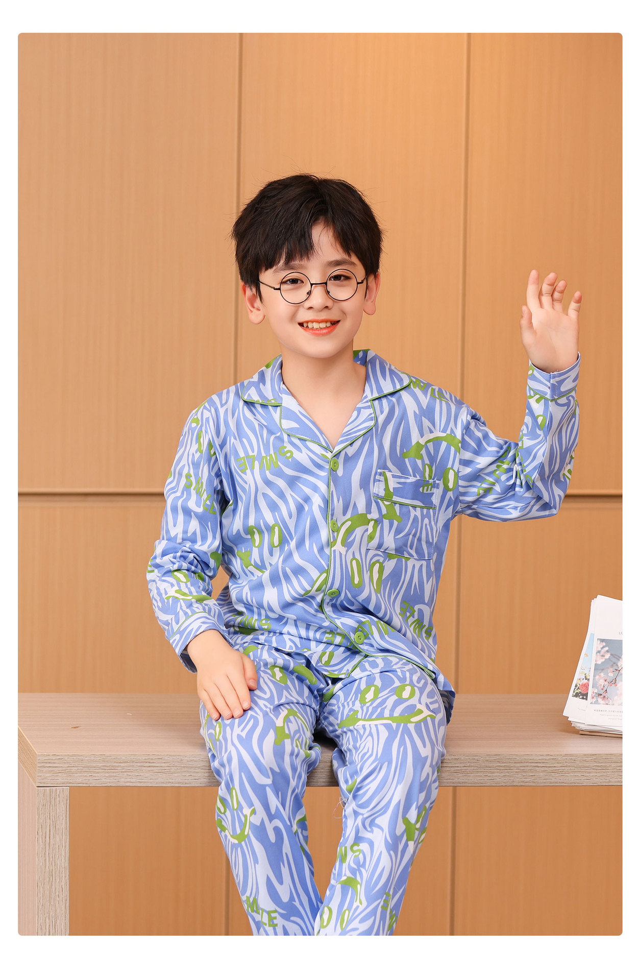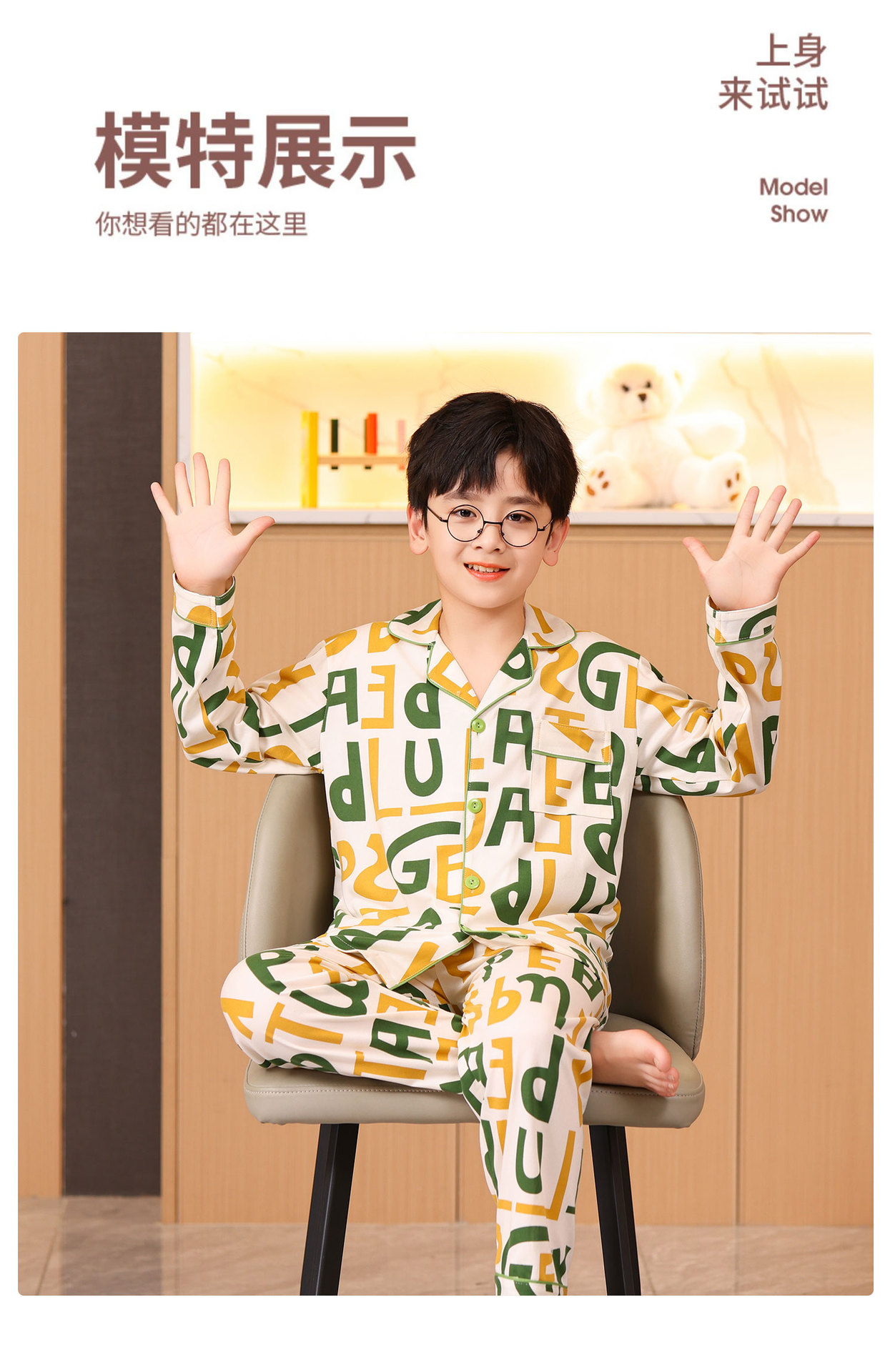 대외 무역 새로운 봄과 가을 어린이 긴 소매 모조 면화 소년과 소녀 옷깃 귀여운 만화 집 세트 도매스토어 가기