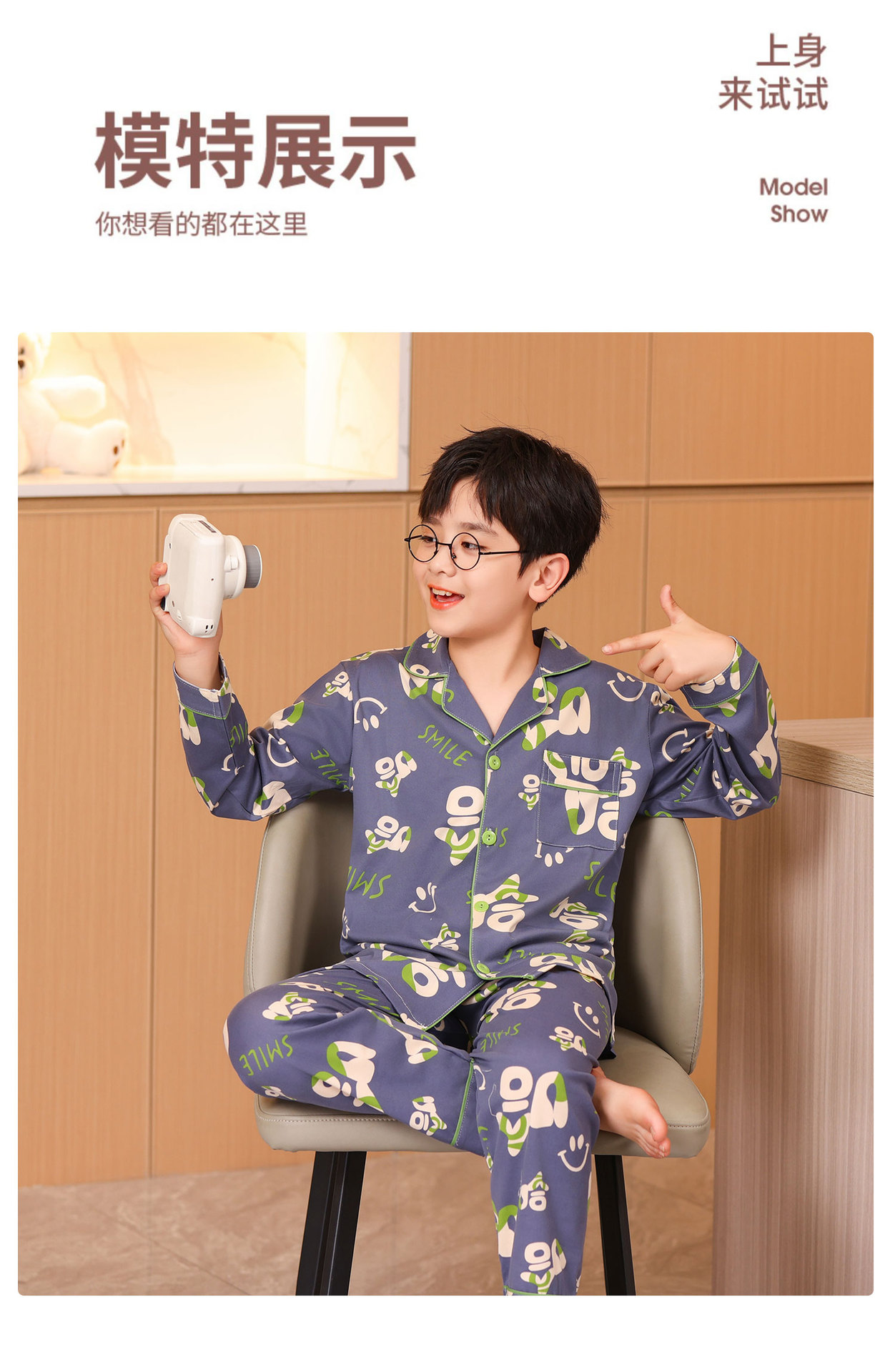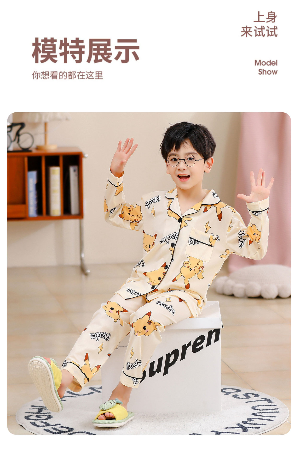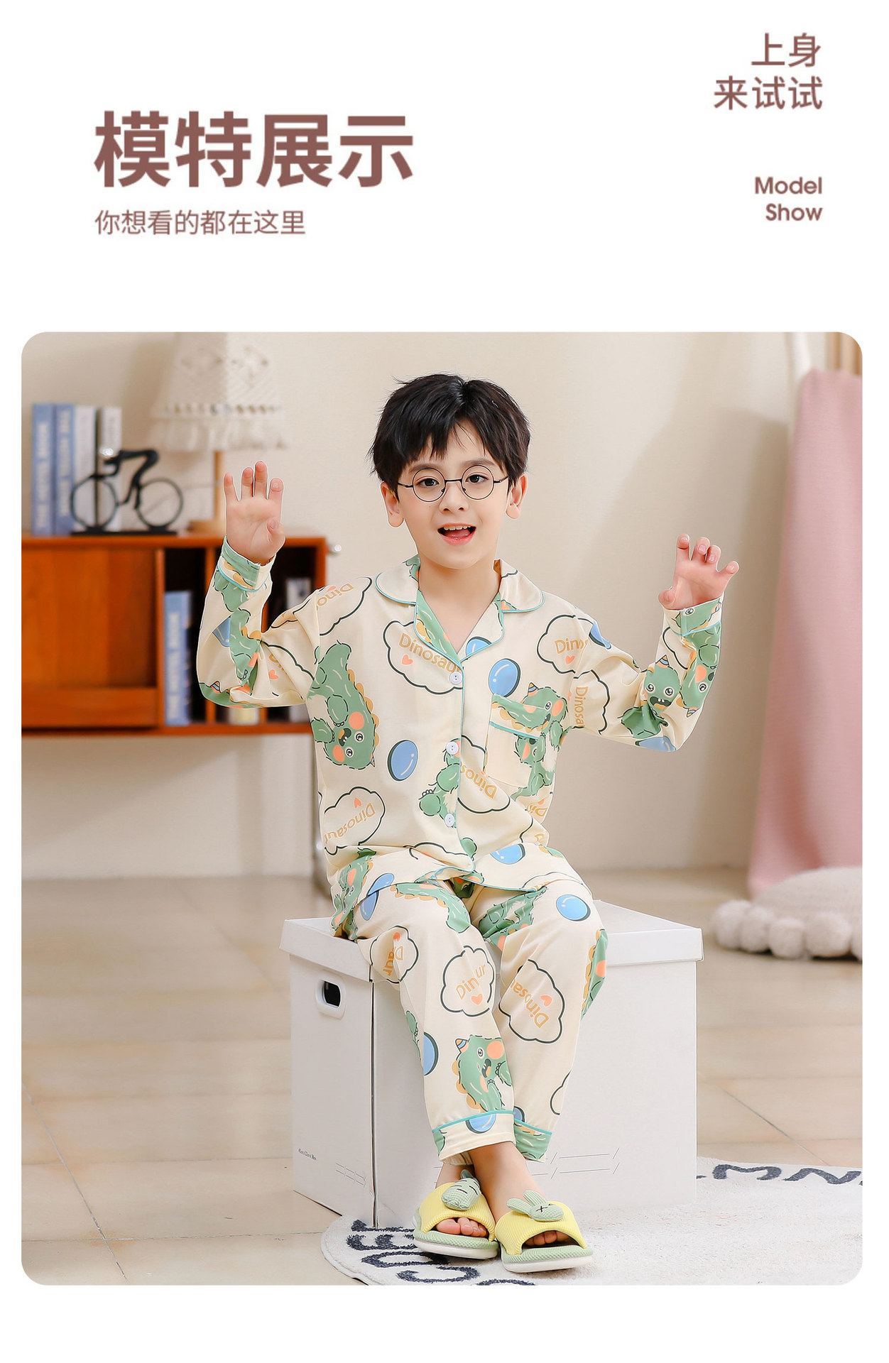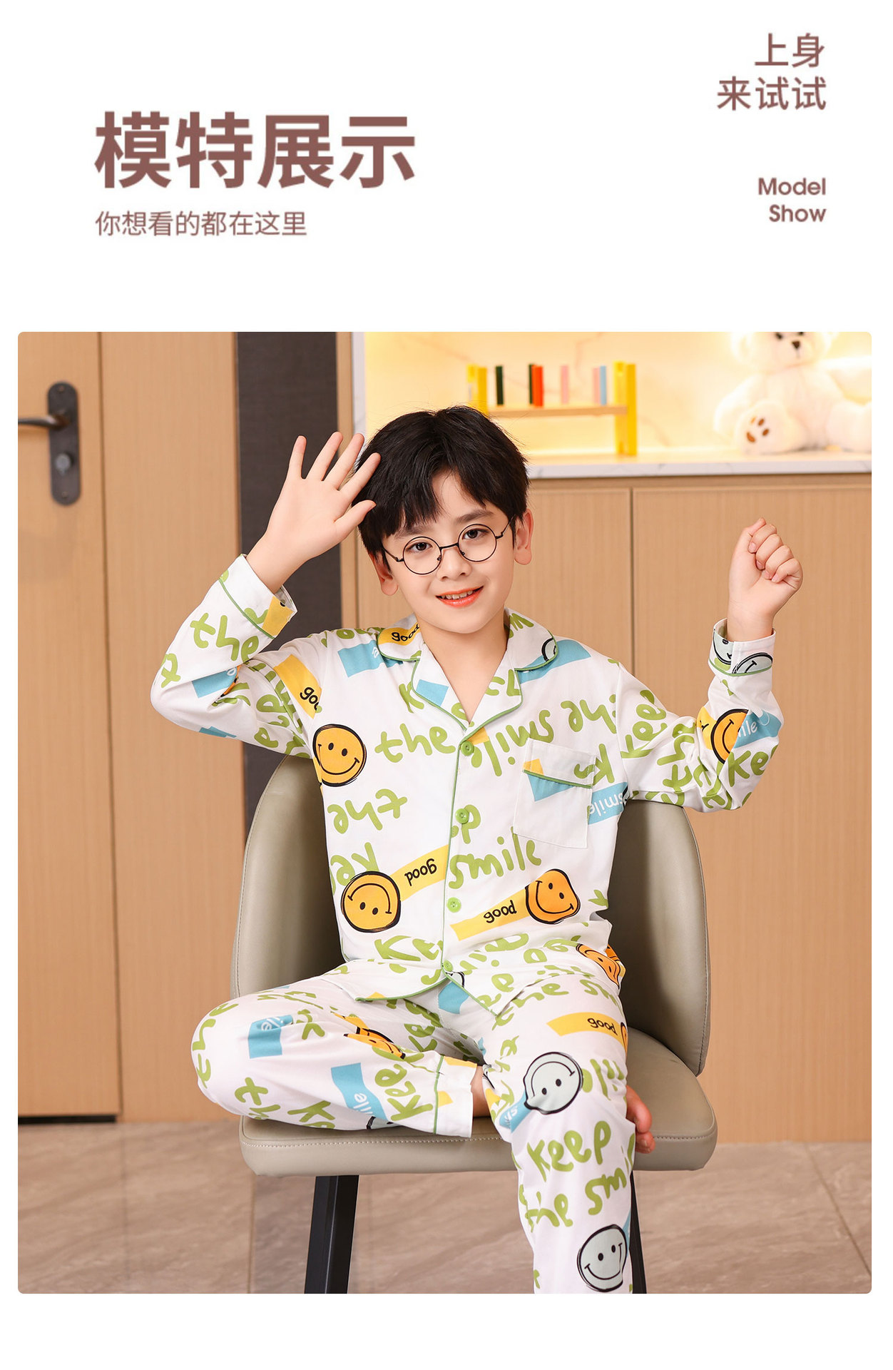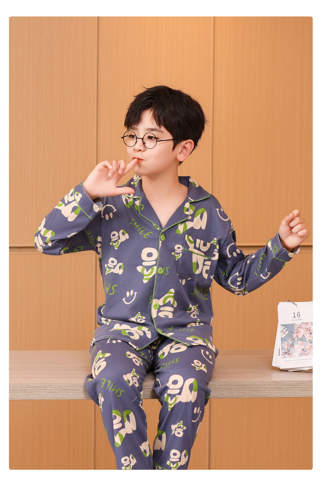 대외 무역 새로운 봄과 가을 어린이 긴 소매 모조 면화 소년과 소녀 옷깃 귀여운 만화 집 세트 도매스토어 가기