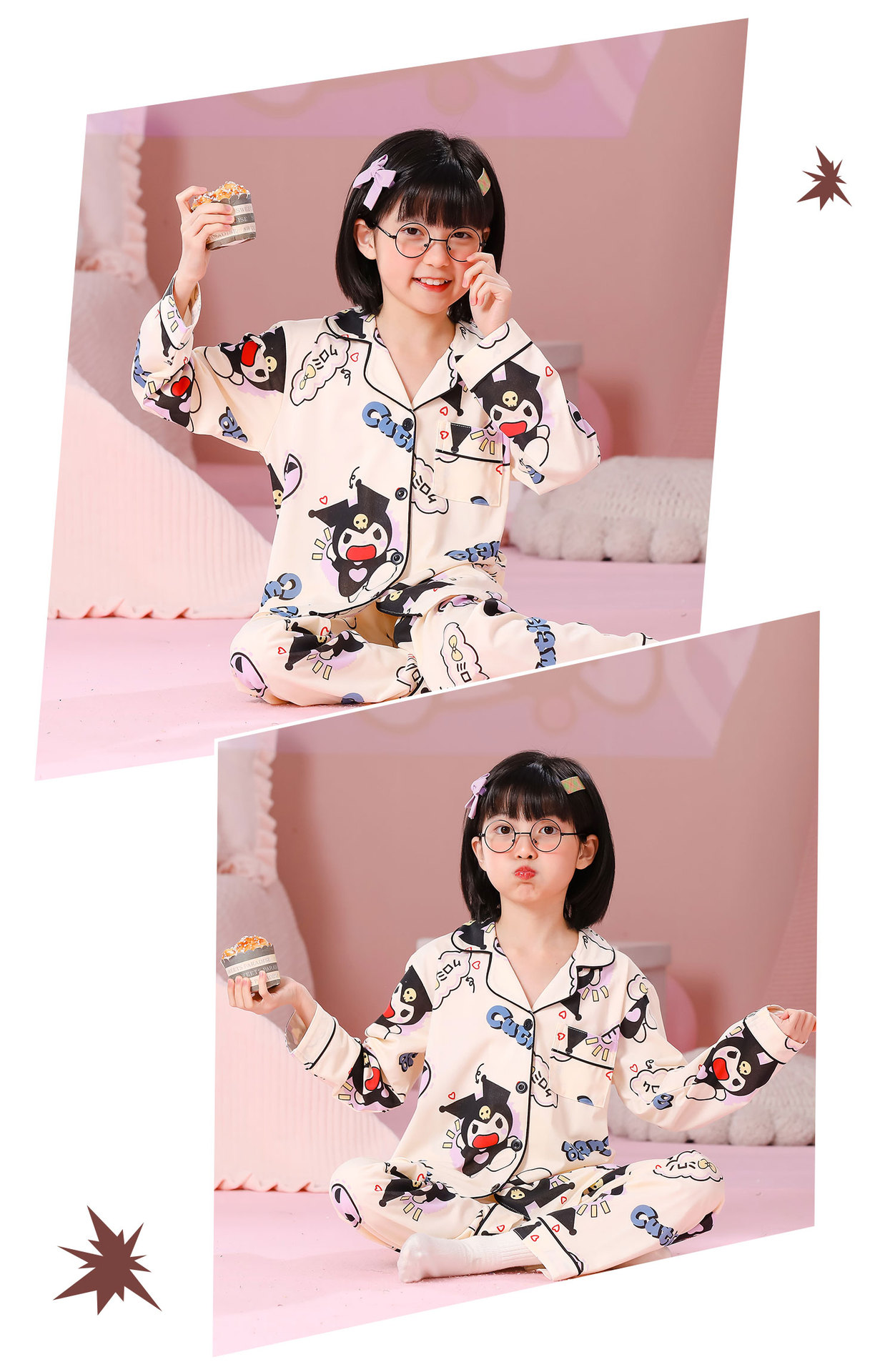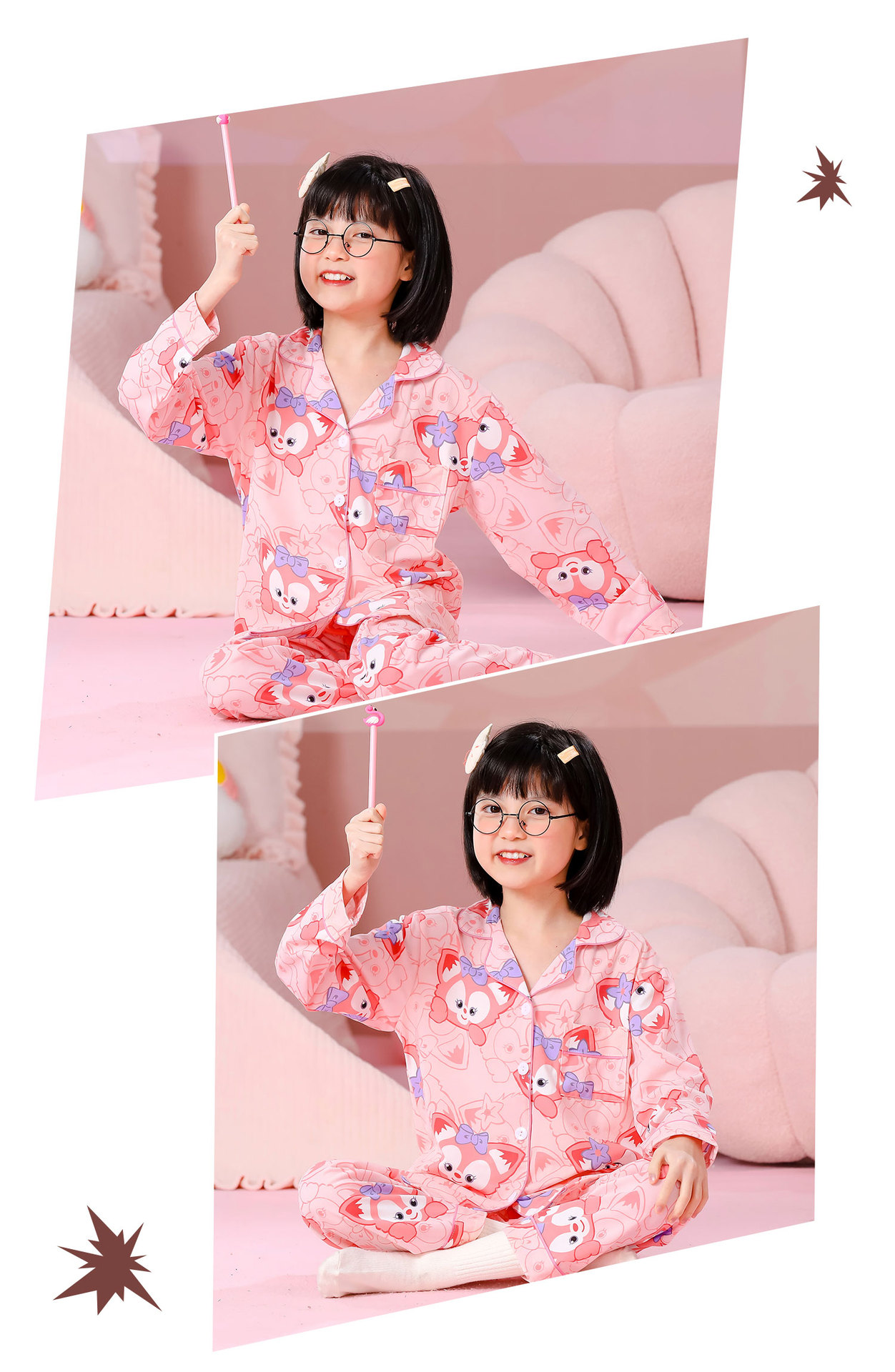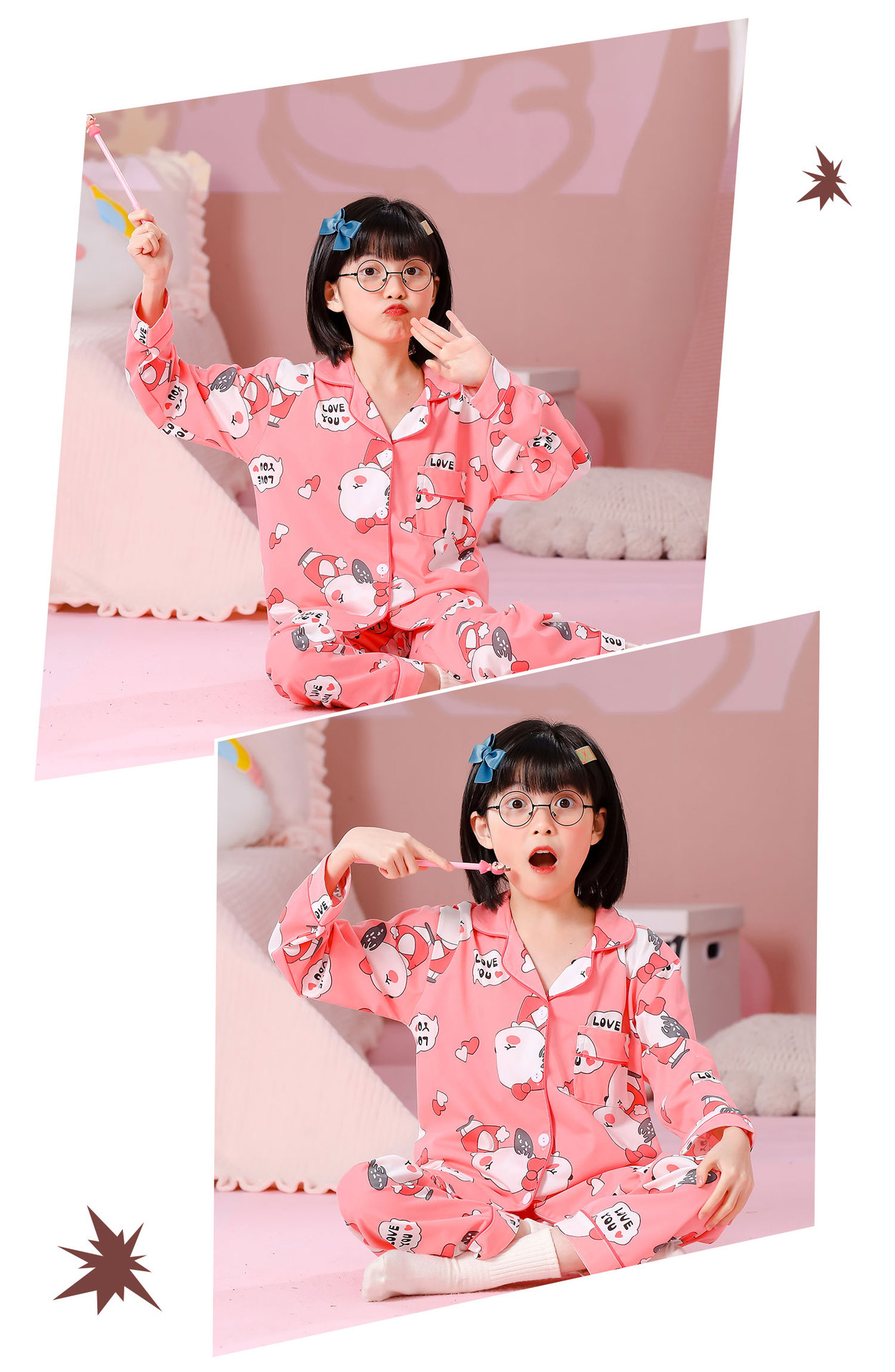대외 무역 새로운 봄과 가을 어린이 긴 소매 모조 면화 소년과 소녀 옷깃 귀여운 만화 집 세트 도매