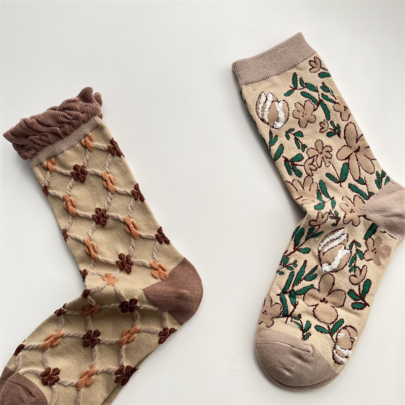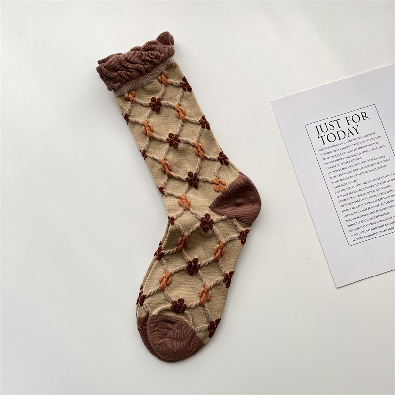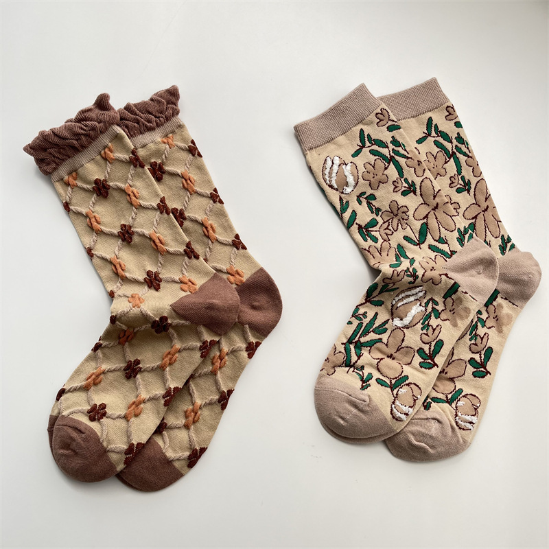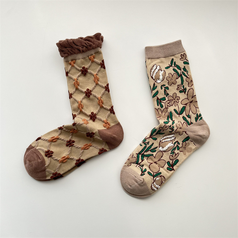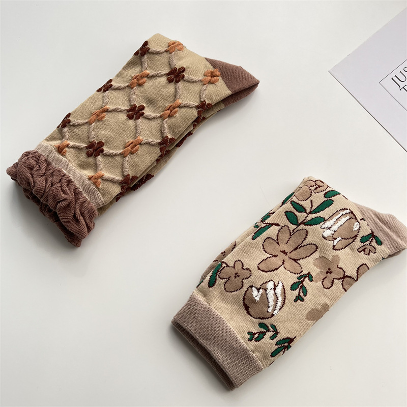 봄과 여름 귀 꽃 양말 여성 일본 스타일 빈티지 3 차원 작은 꽃 중간 차원 양말 인면 통기성 스택 양말스토어 가기