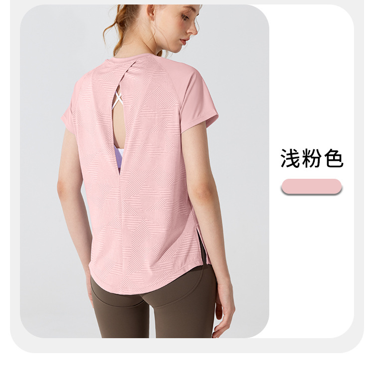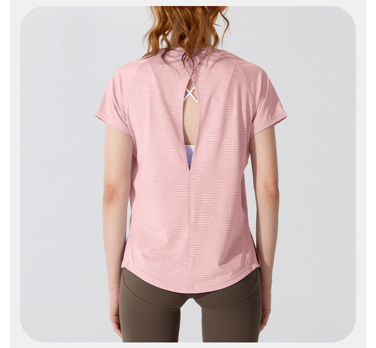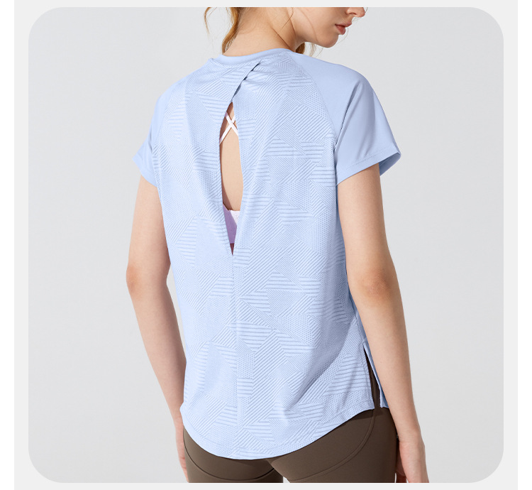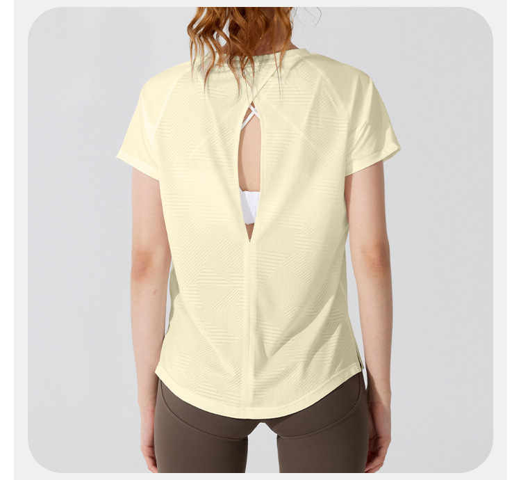여름 요가 의류 여성 스포츠 최고 반팔 티셔츠 중공 달리기 필라테스 훈련 느슨한 블라우스 피트니스 의류
