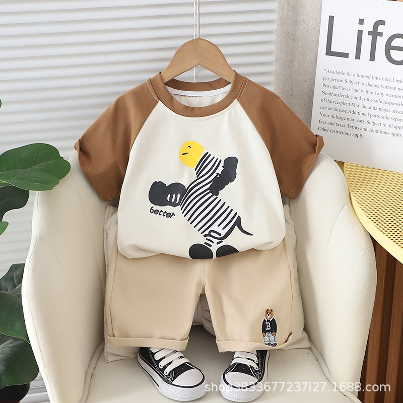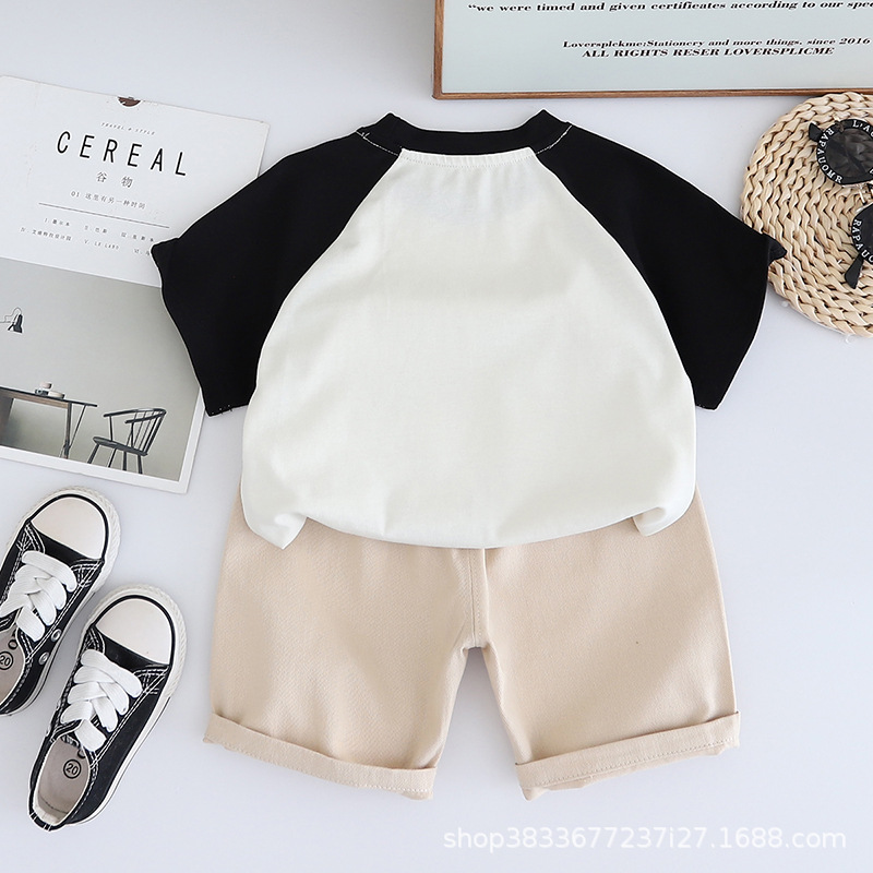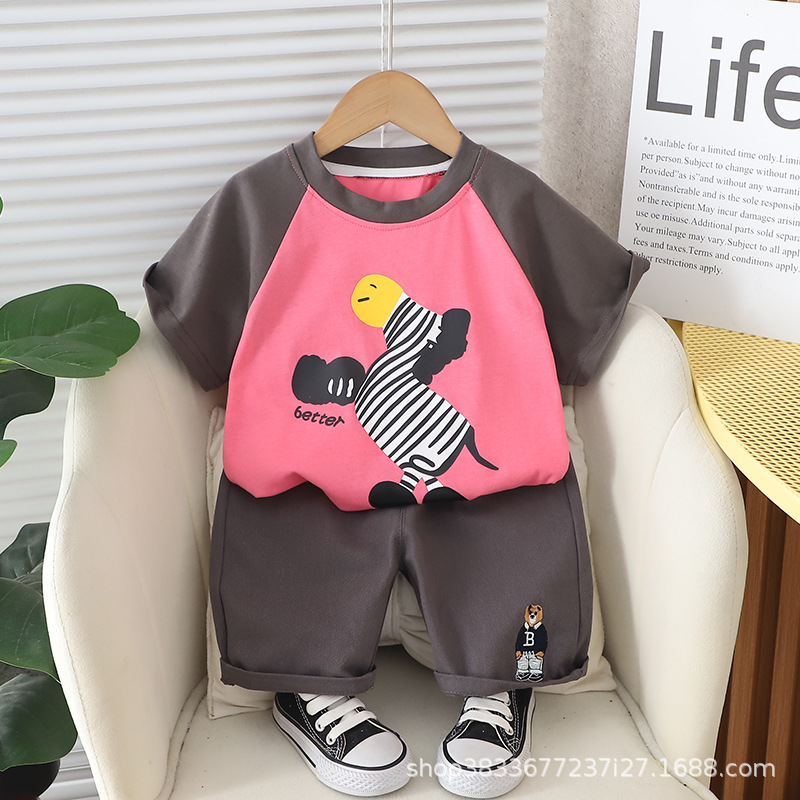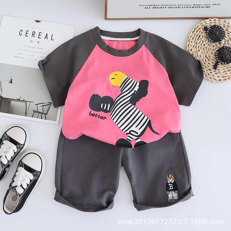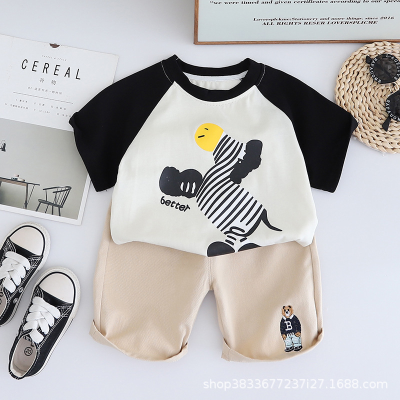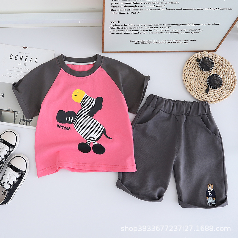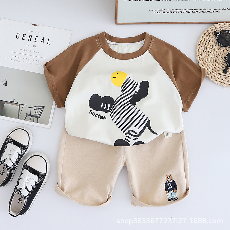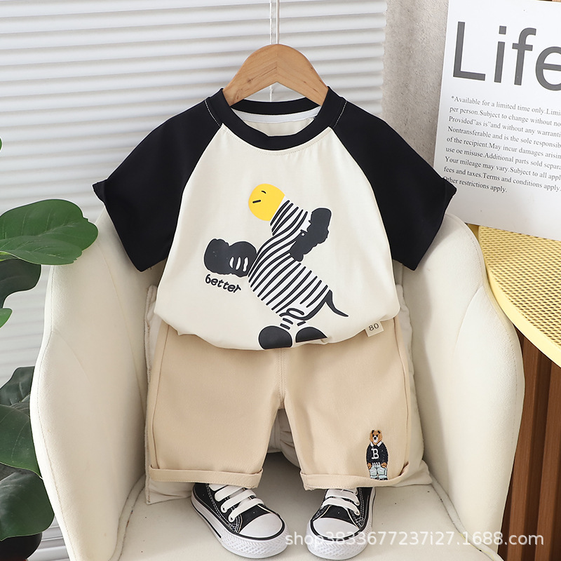 남자 아기 여름 패션 티셔츠 세트 소년 여름 귀여운 얼룩말 인쇄 짧은 소매 외국 스타일 투피스 도매스토어 가기