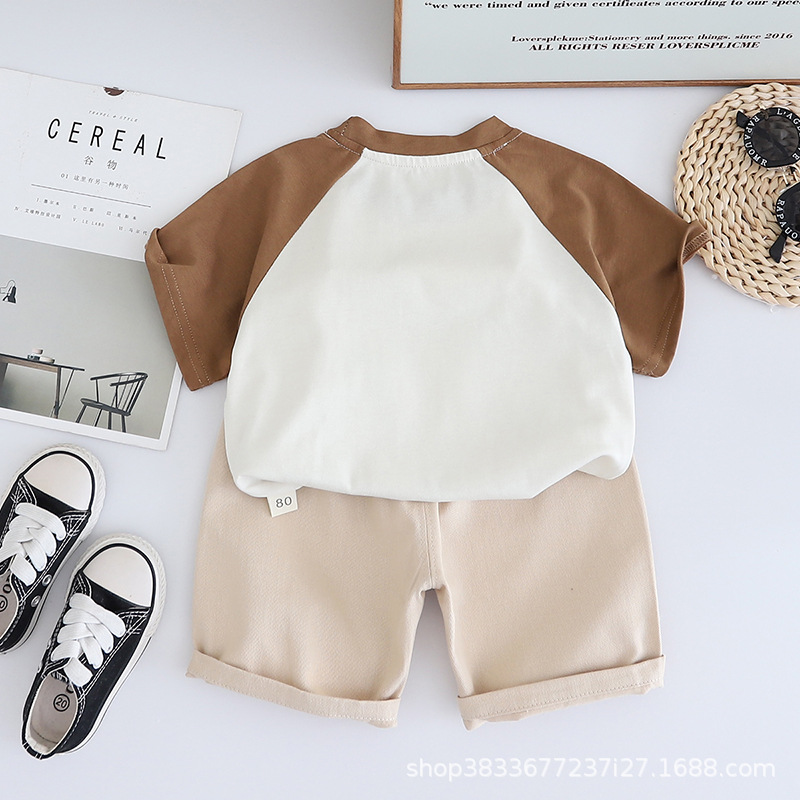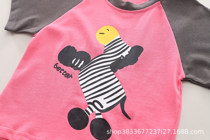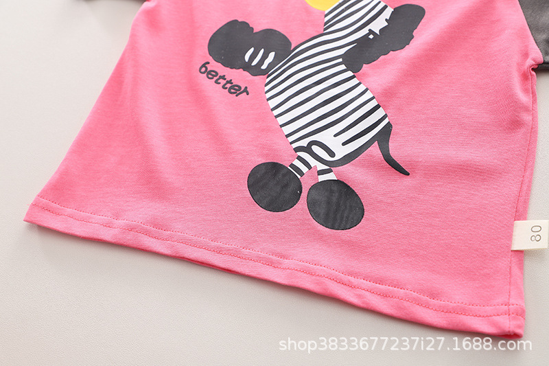남자 아기 여름 패션 티셔츠 세트 소년 여름 귀여운 얼룩말 인쇄 짧은 소매 외국 스타일 투피스 도매