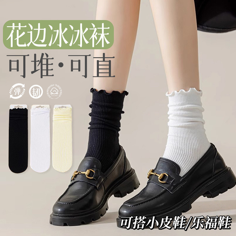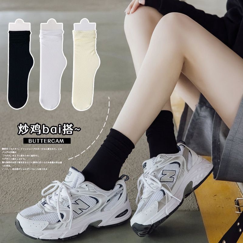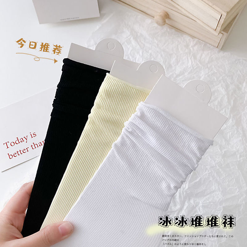 아이스 아이스 양말 여성의 봄과 여름 얇은 미드 튜브 스택 올 매치 패셔너블 벨벳 스타킹 아이스 실크 블랙 양말