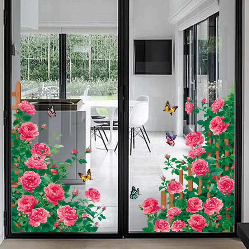 슬라이딩 도어 충돌 방지 스티커 발코니 주방 욕실 슬라이딩 도어 장미 꽃 낭만적 인 프랑스 무인 정전기 스티커