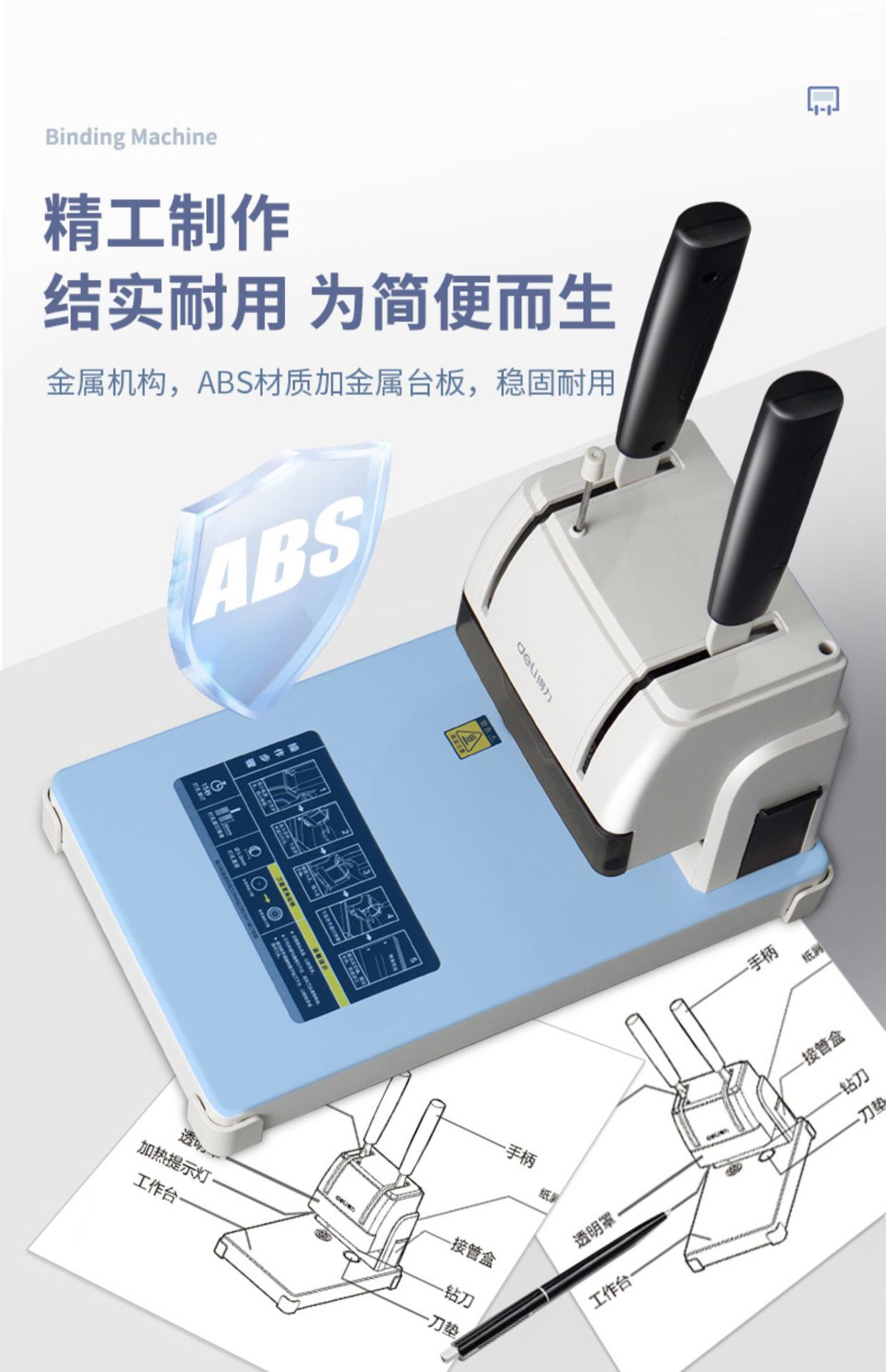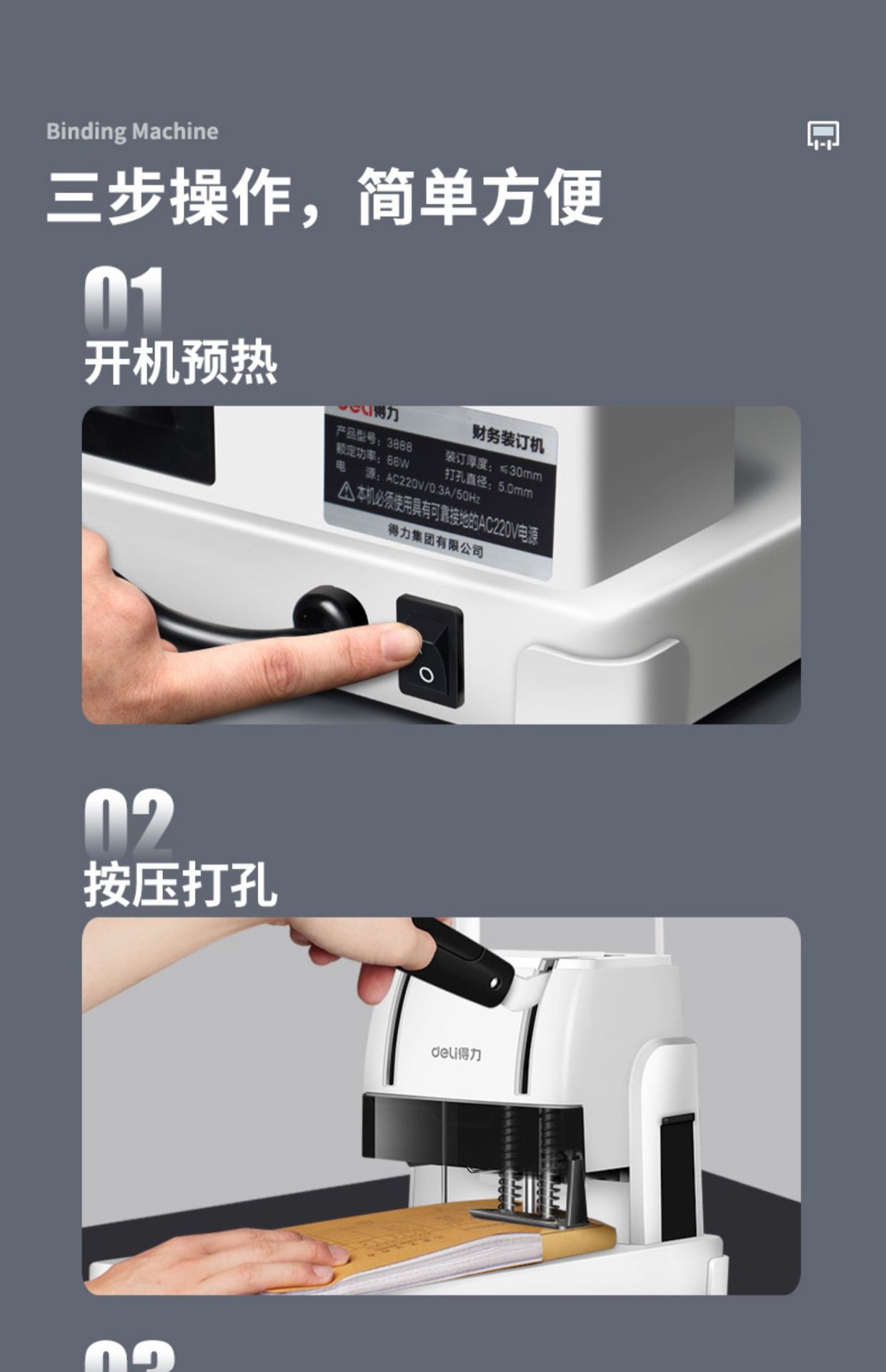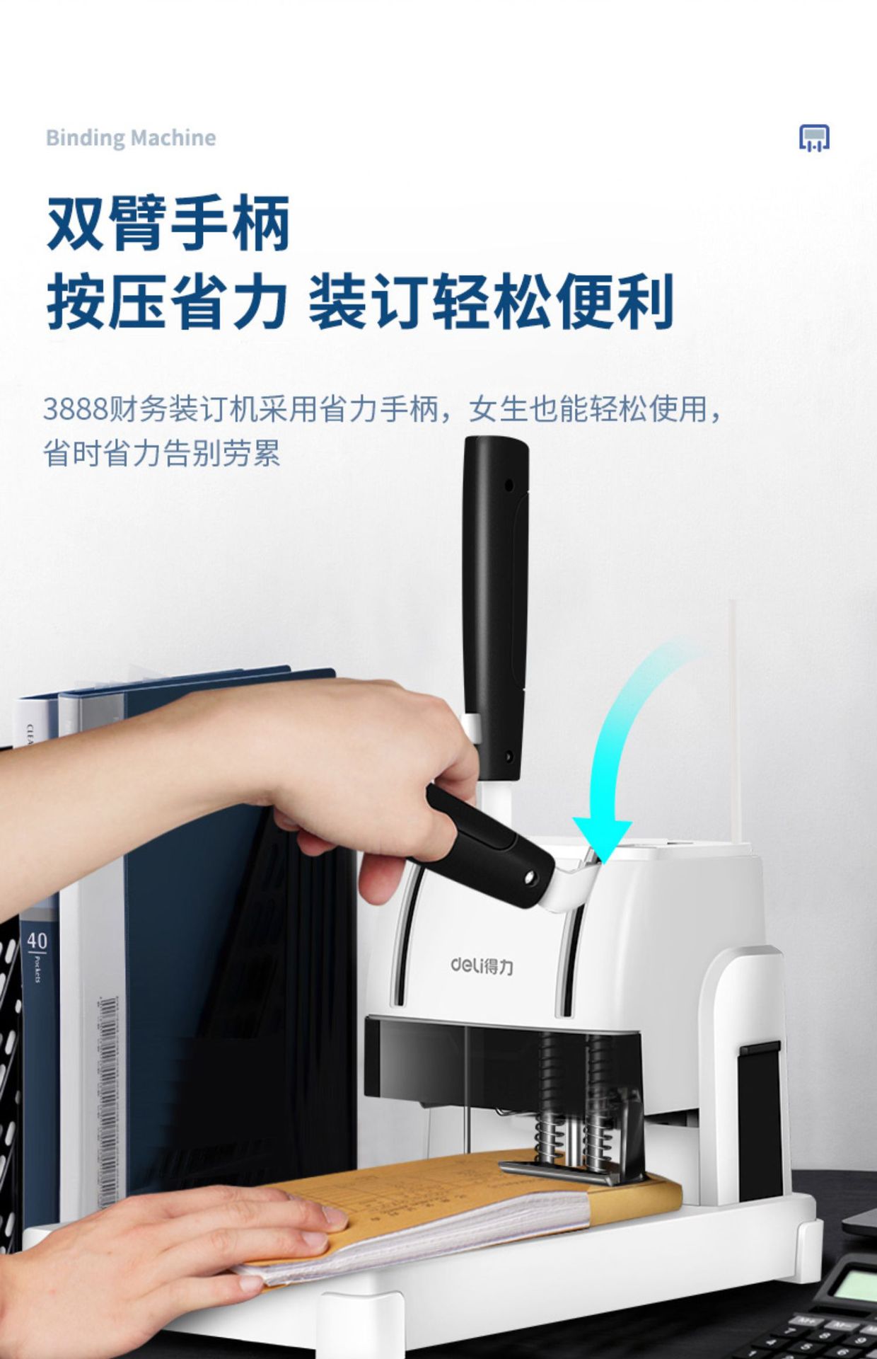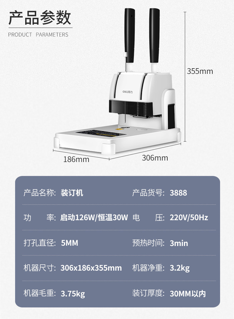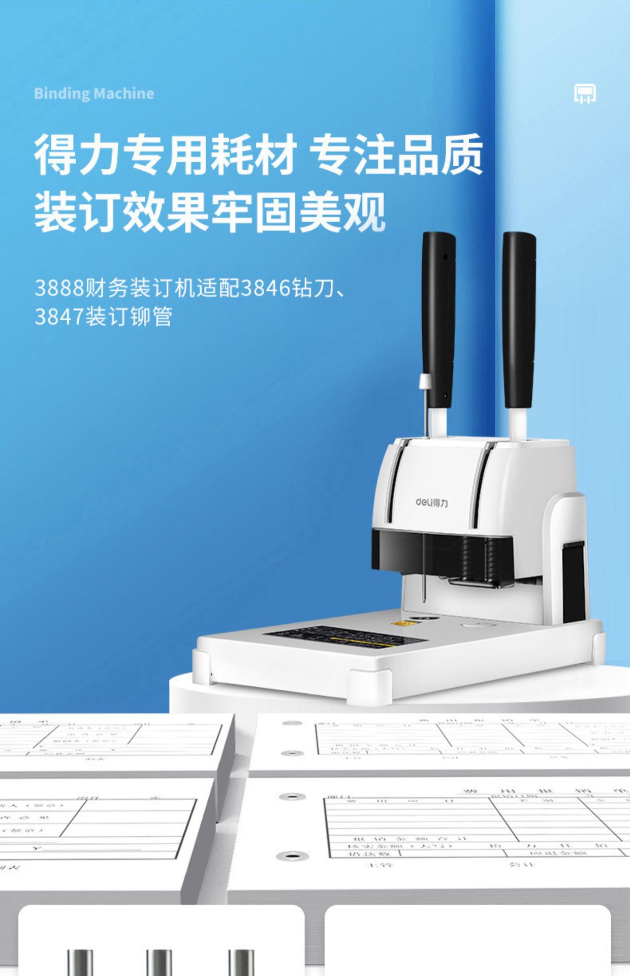 델리 3888 금융 바우처 바인딩 기계 회계 파일 사무실 특별 핫멜트 접착 리벳 파이프 수동 펀칭 기계스토어 가기
