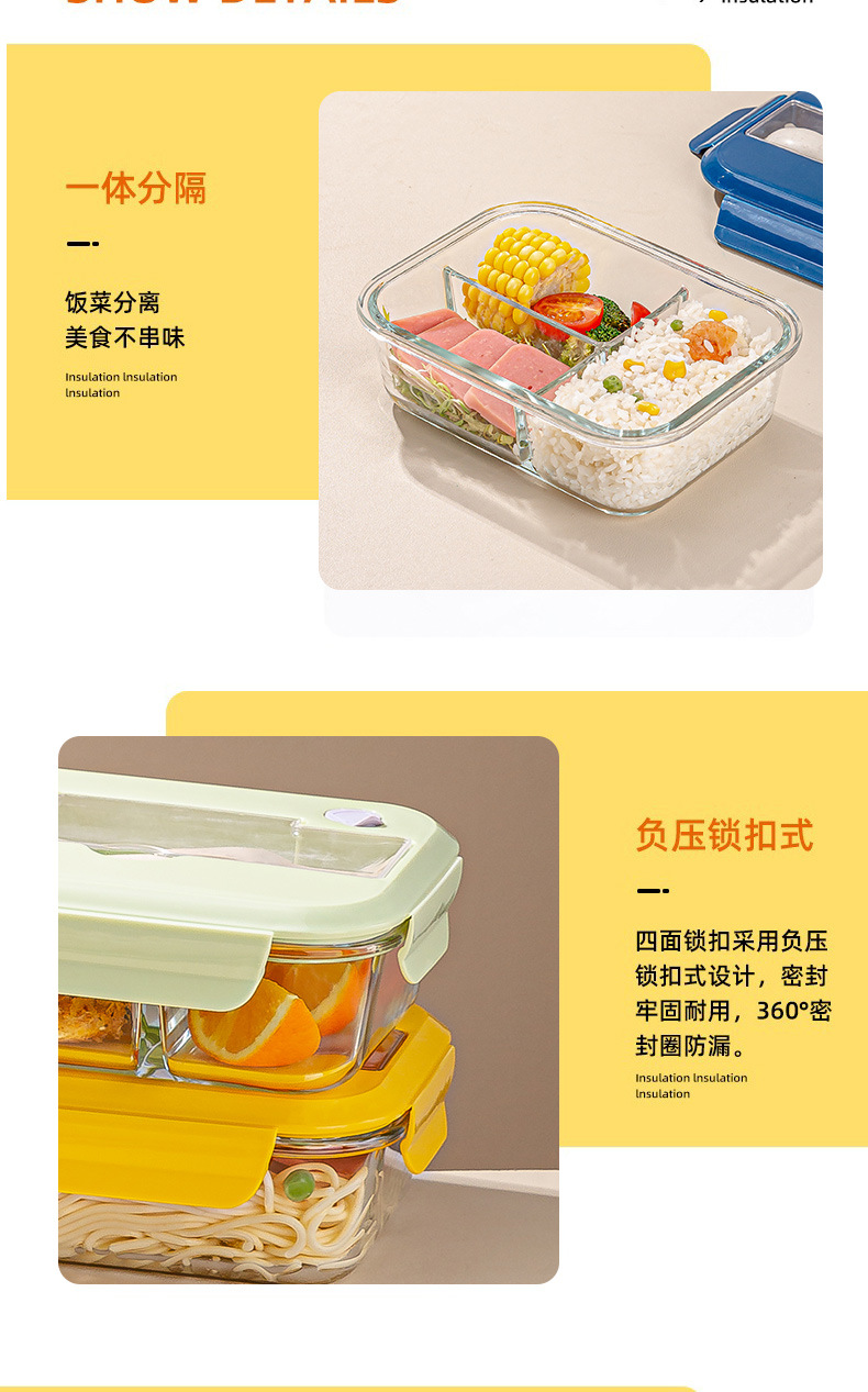 인쇄 가능한 로고 붕규산 전자 레인지 가열 유리 도시락 보존 상자 학생 휴대용 도시락 식기스토어 가기