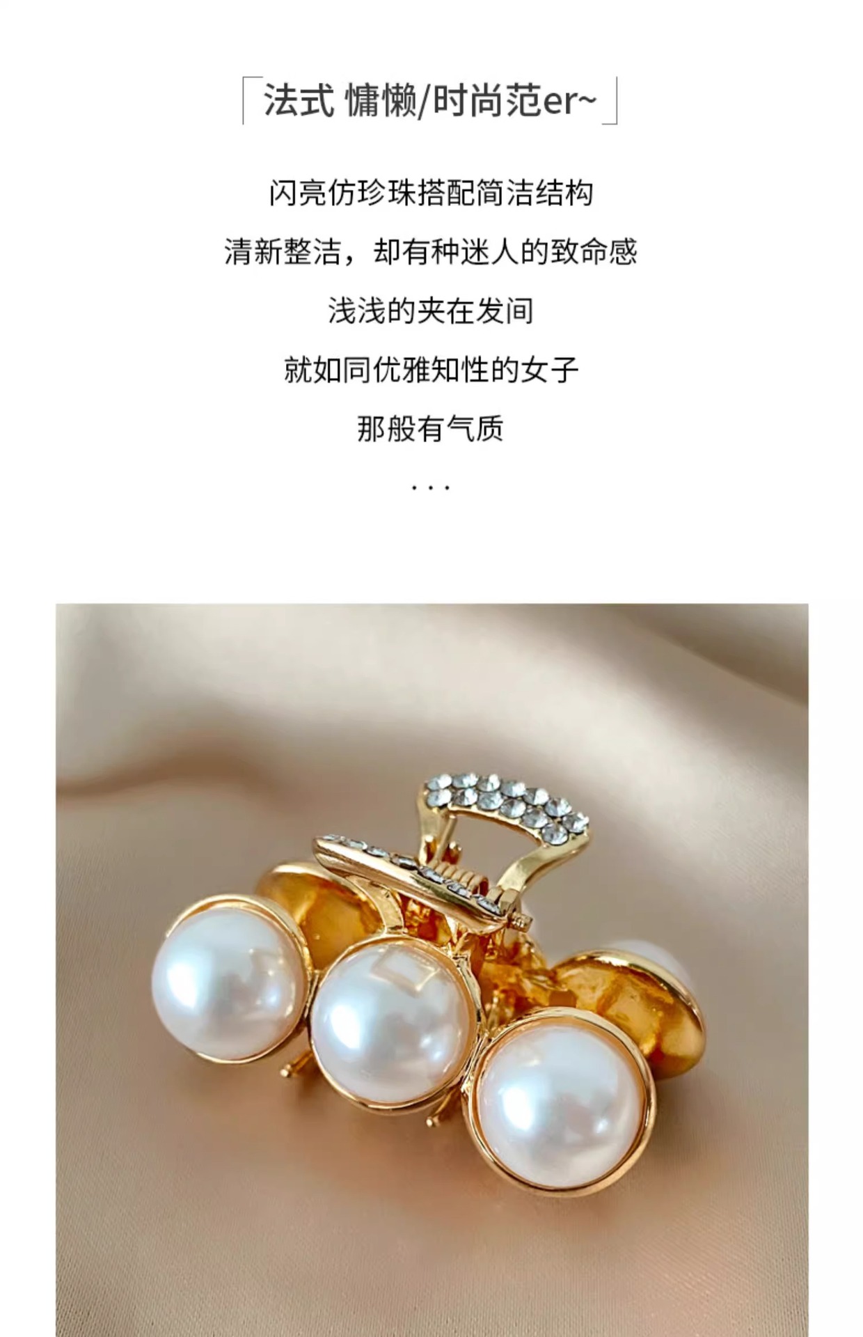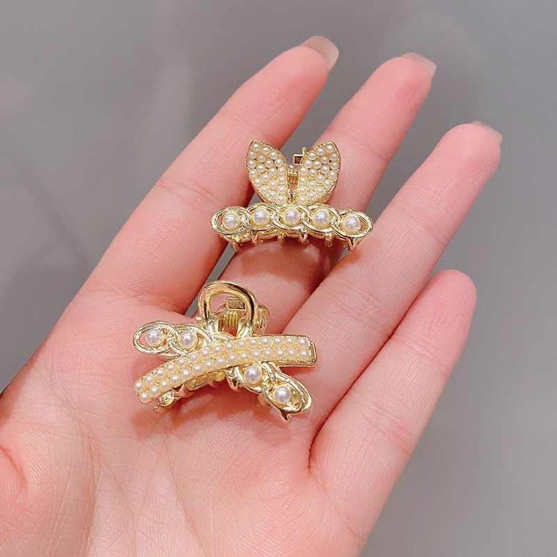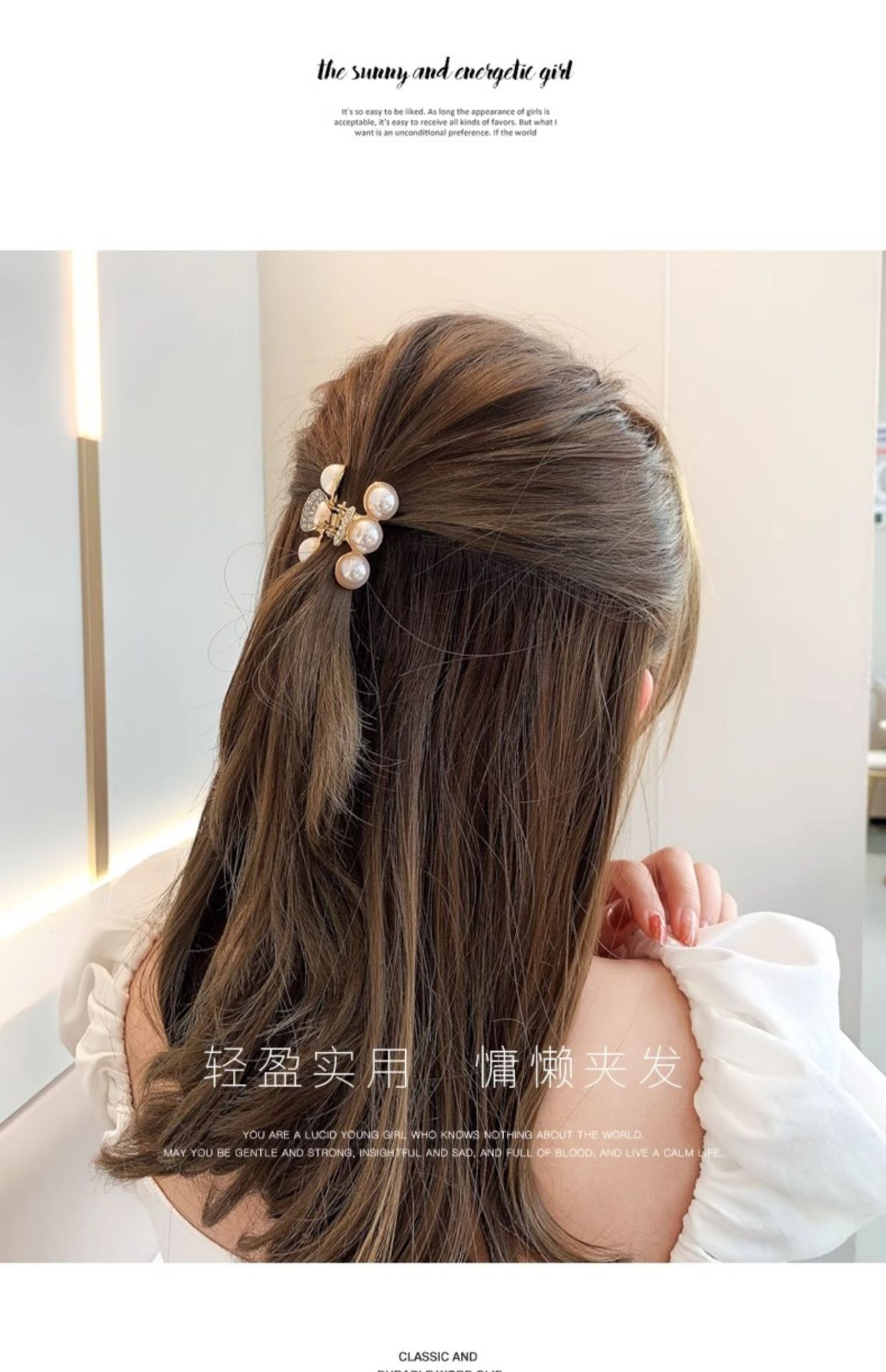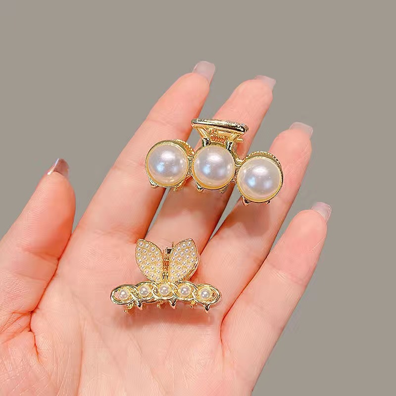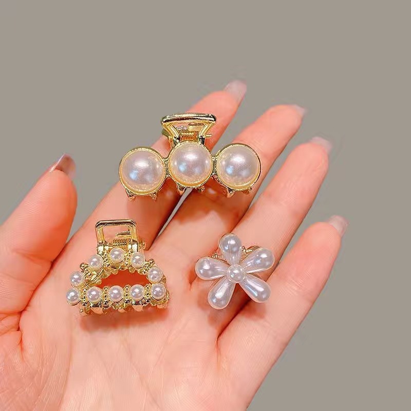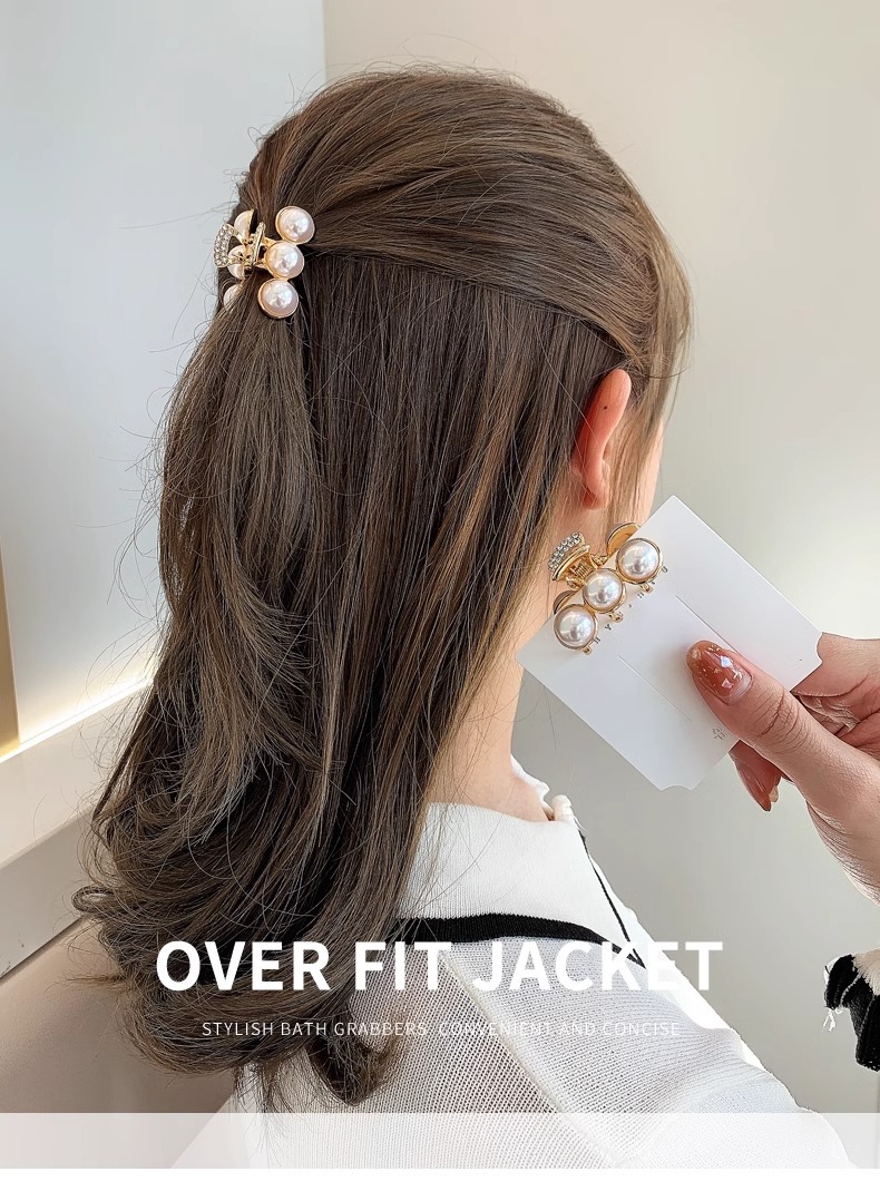 머리 상어 클립 헤어 액세서리 뒤에 반쯤 묶인 머리 금속 작은 측면 깨진 헤어 클립 헤어 클립 헤어 클립 헤어 클립 모조 진주 질감 기질스토어 가기