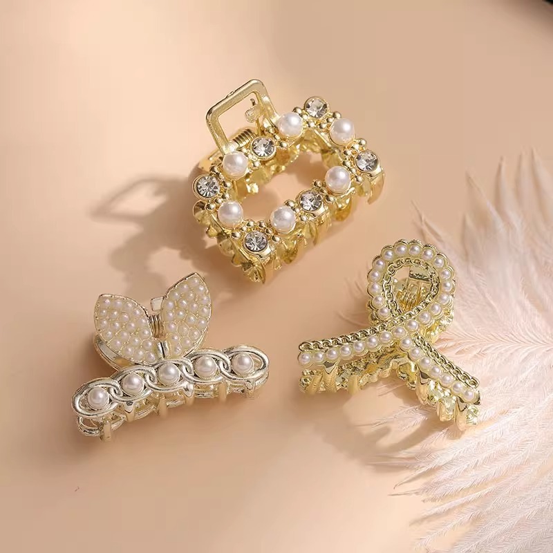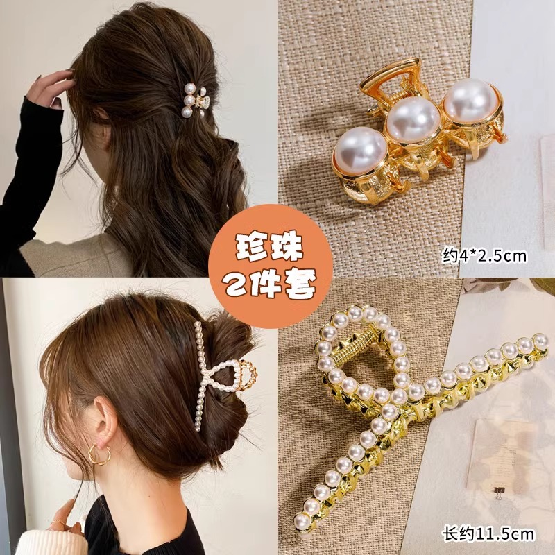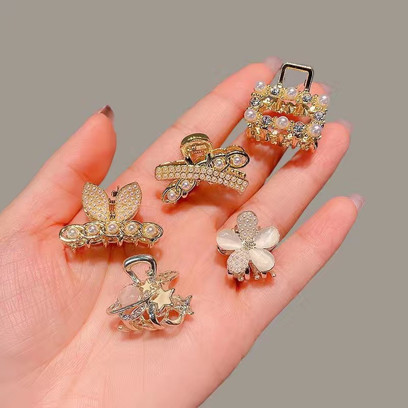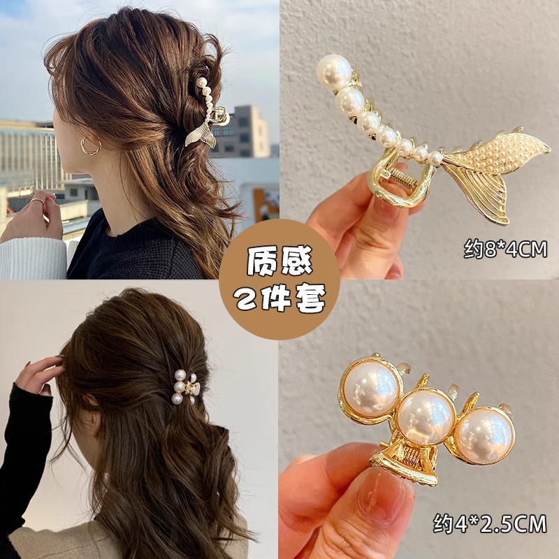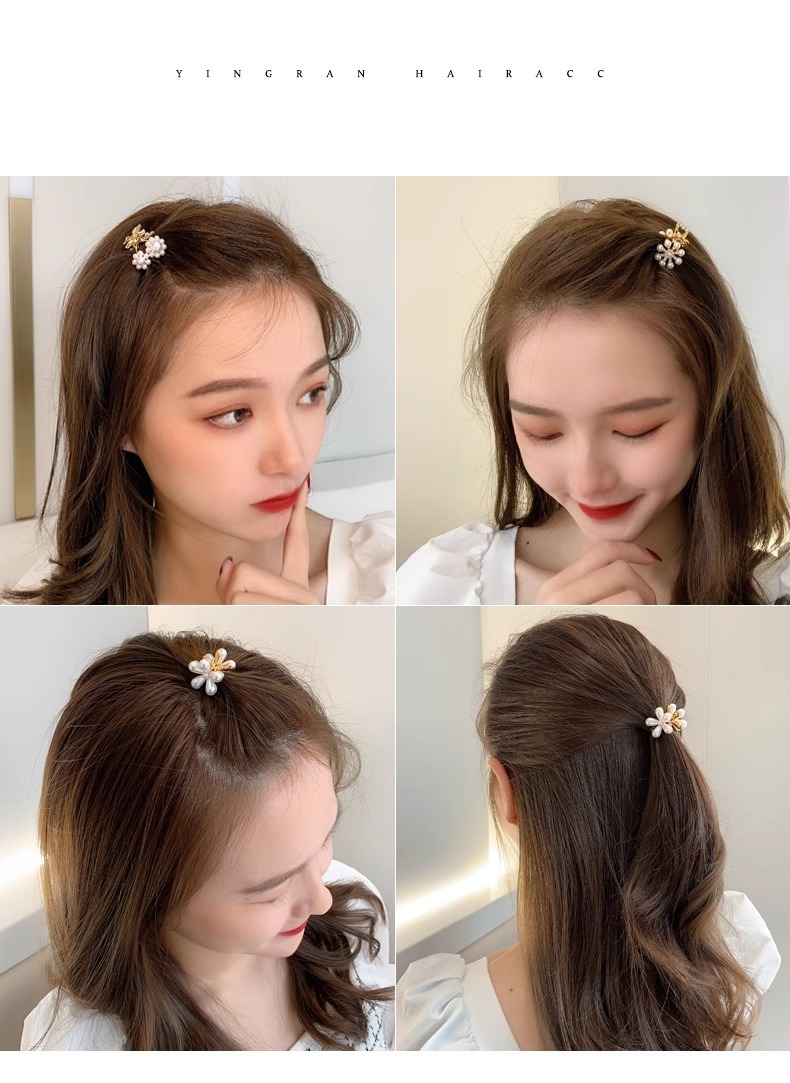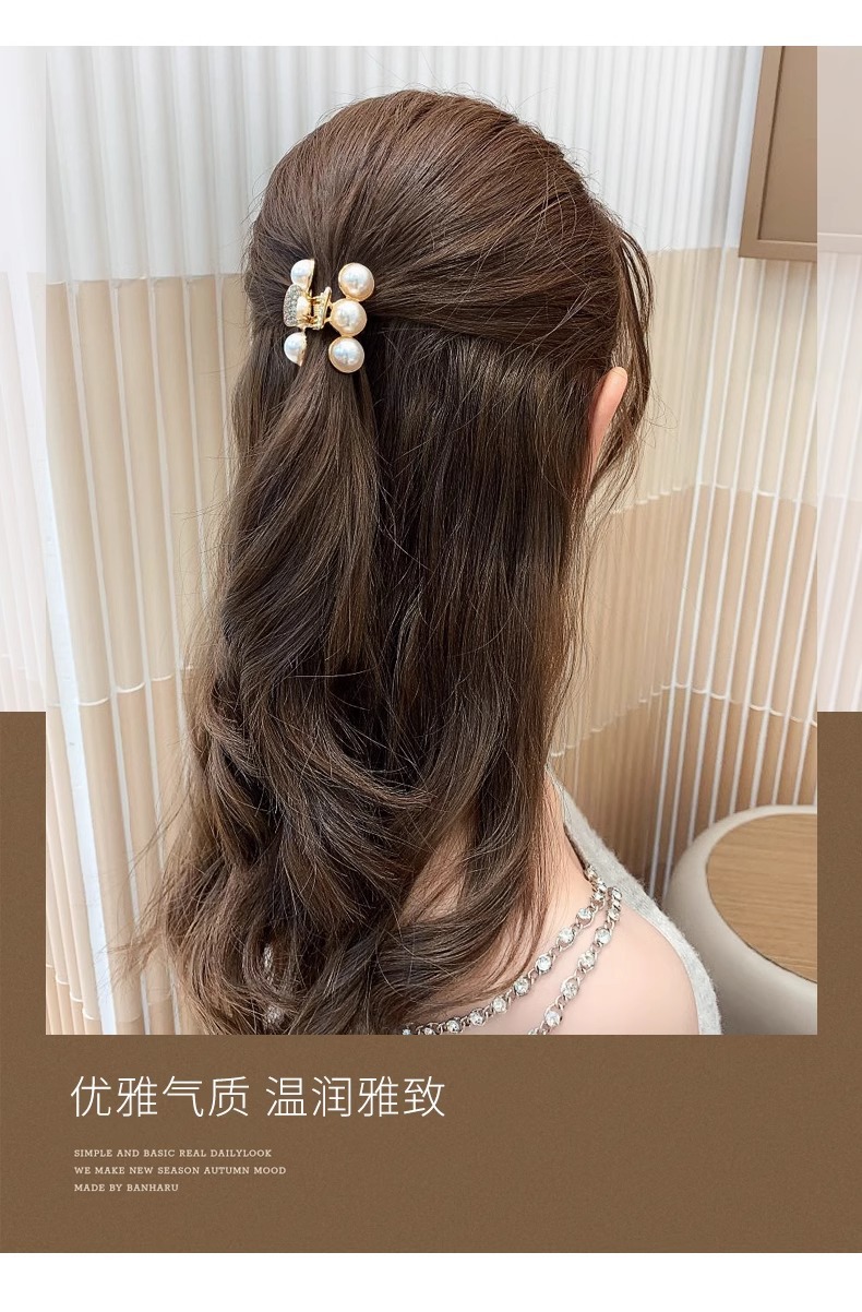 머리 상어 클립 헤어 액세서리 뒤에 반쯤 묶인 머리 금속 작은 측면 깨진 헤어 클립 헤어 클립 헤어 클립 헤어 클립 모조 진주 질감 기질스토어 가기