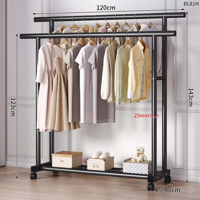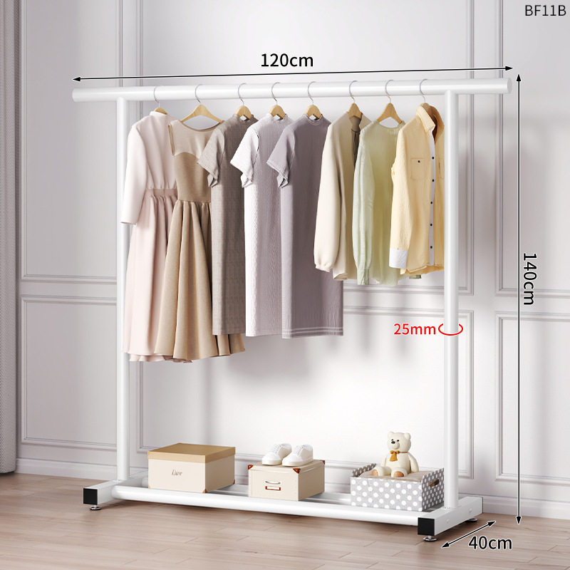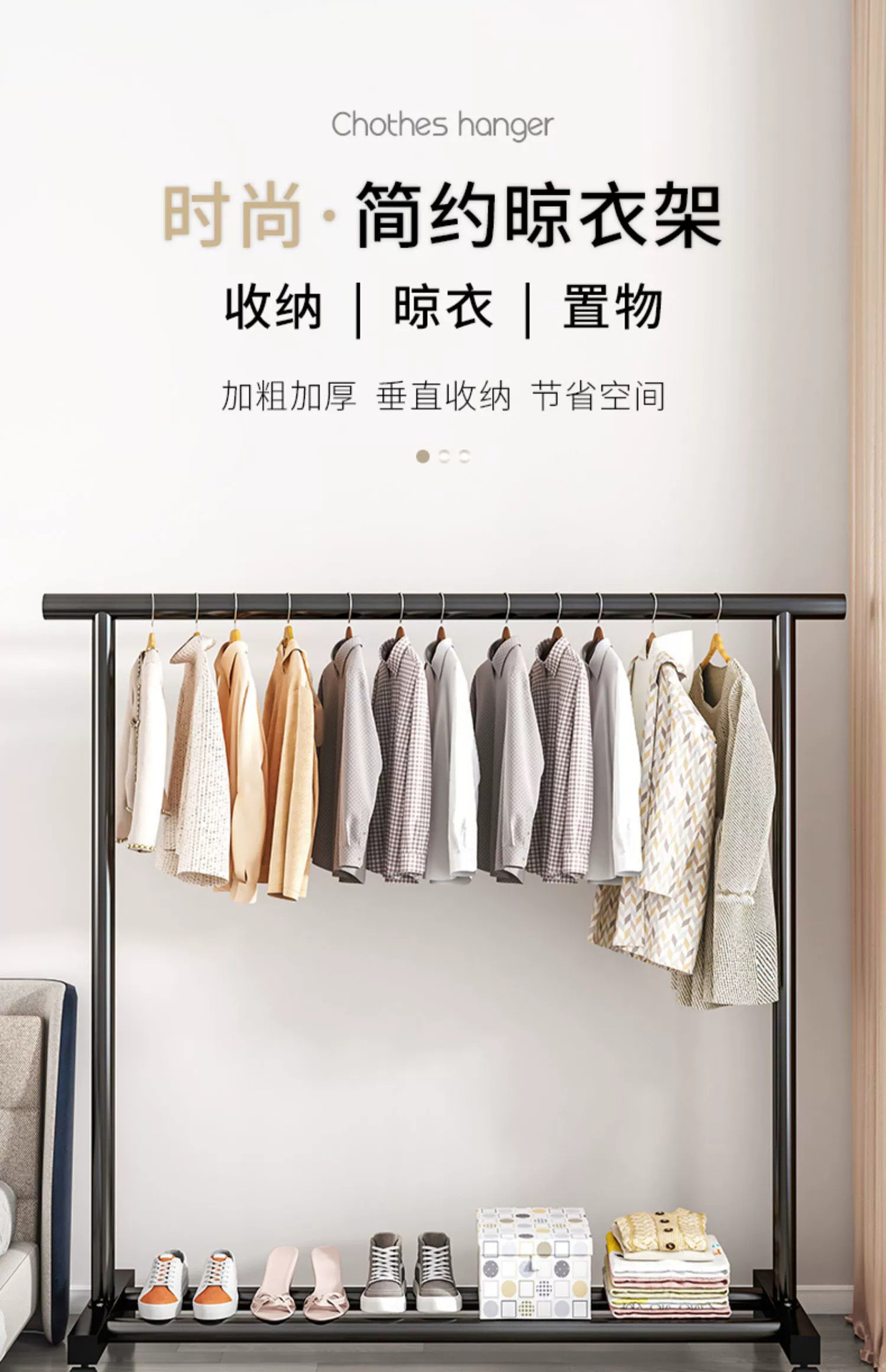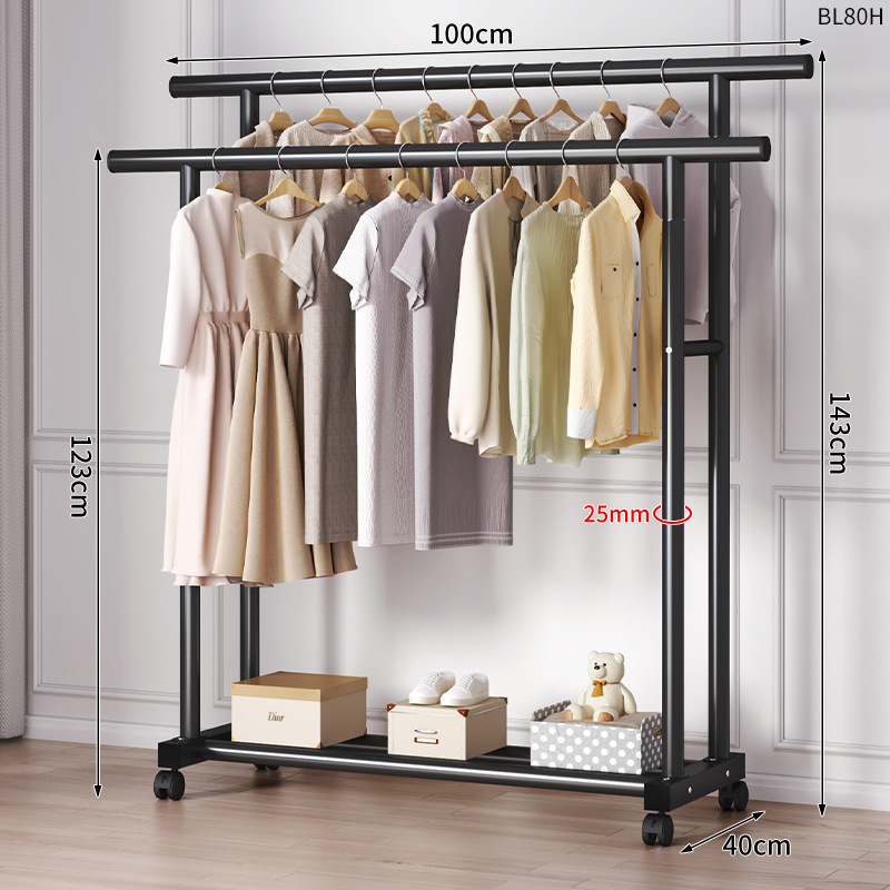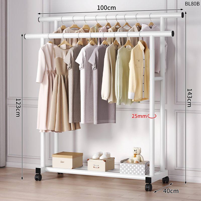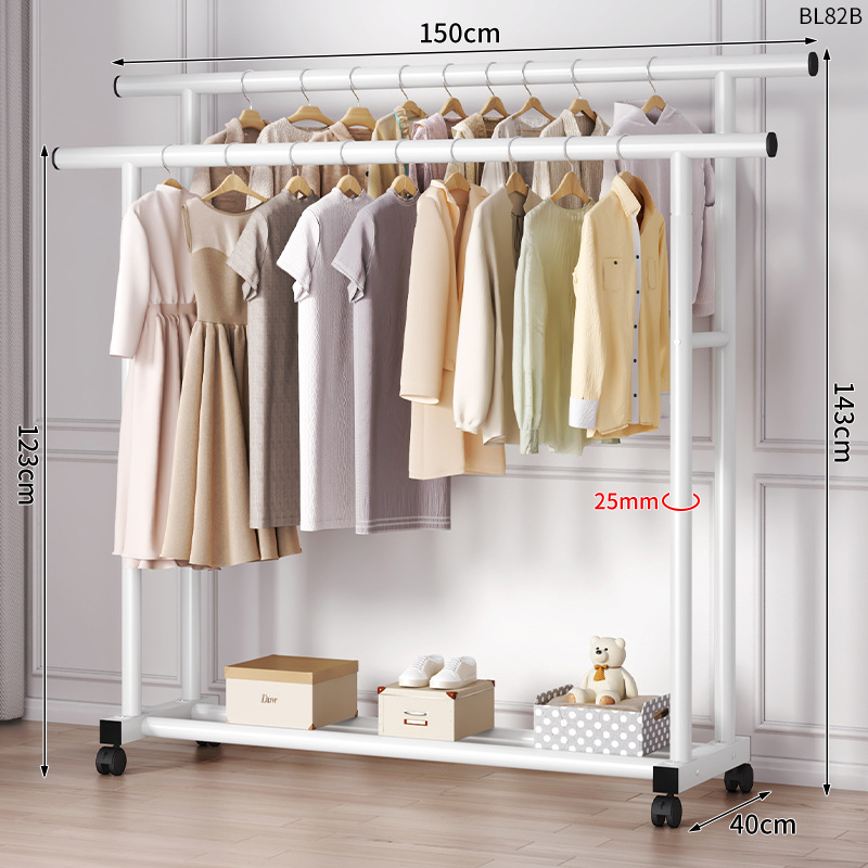 가정용 침실 발코니용 금속 옷걸이, 두꺼운 이동식 바닥형 옷걸이, 이중 봉스토어 가기