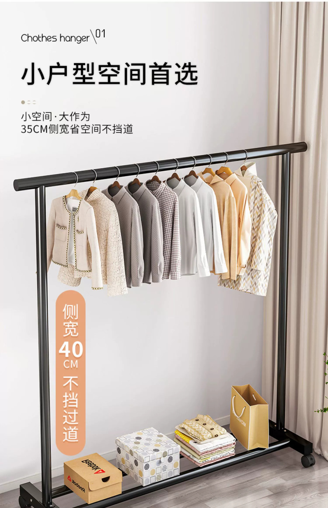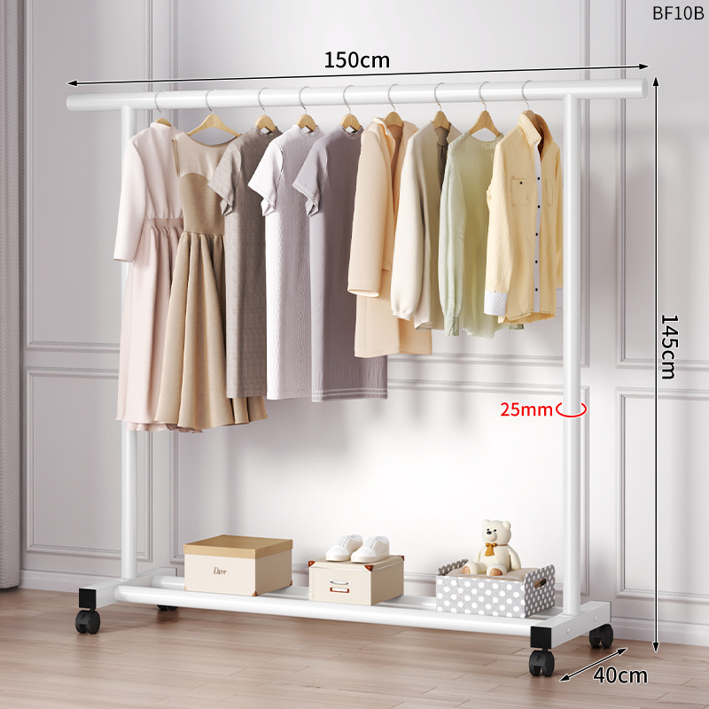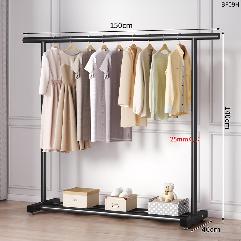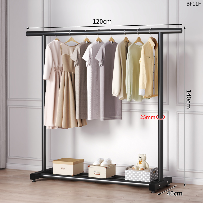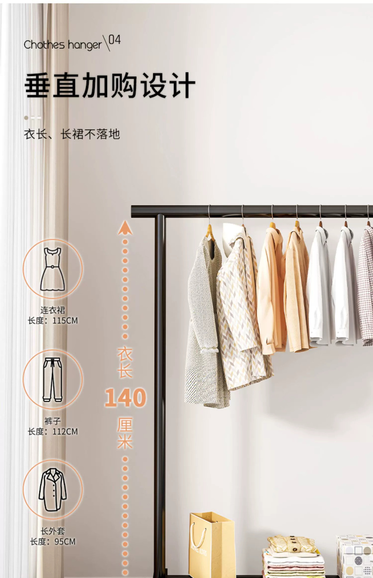 가정용 침실 발코니용 금속 옷걸이, 두꺼운 이동식 바닥형 옷걸이, 이중 봉스토어 가기