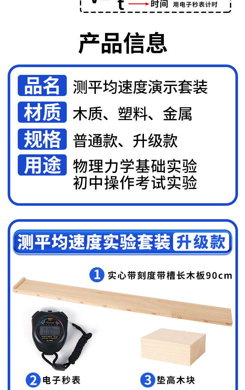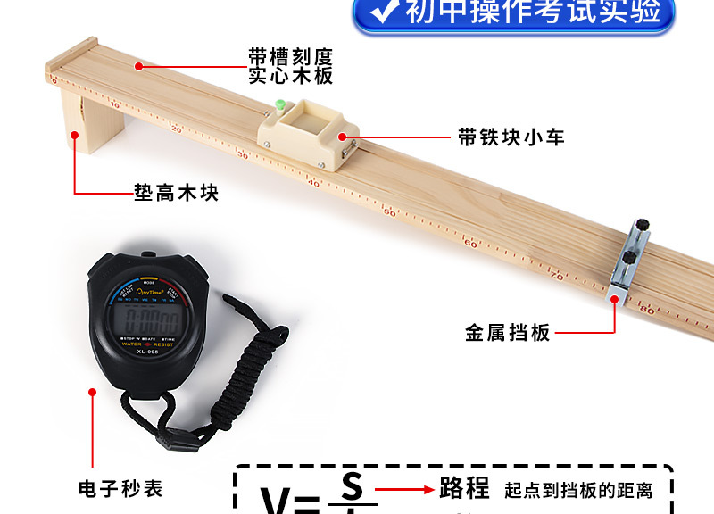 측정 평균 속도 실험 세트 단단한 긴 나무 블록 학생 스톱워치 중학교 물리 역학 시연 교육 지원스토어 가기