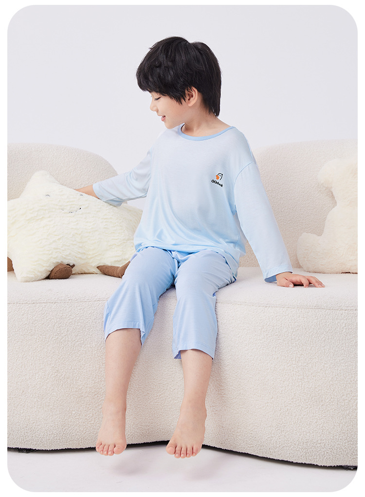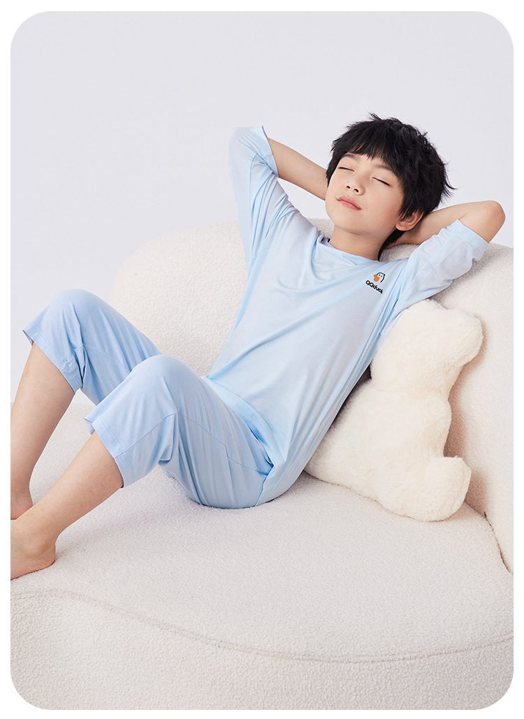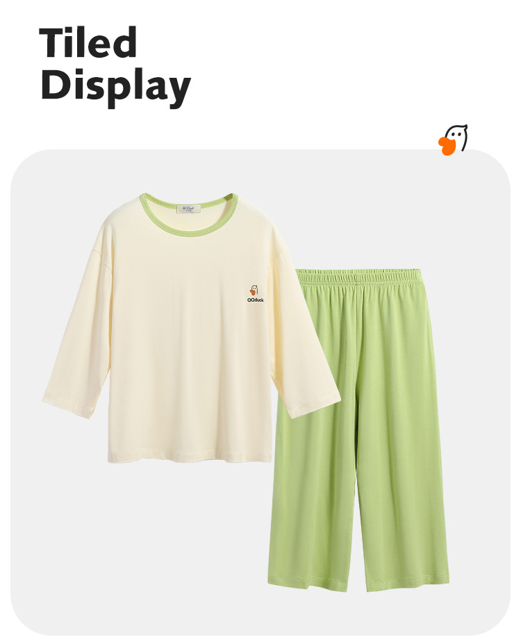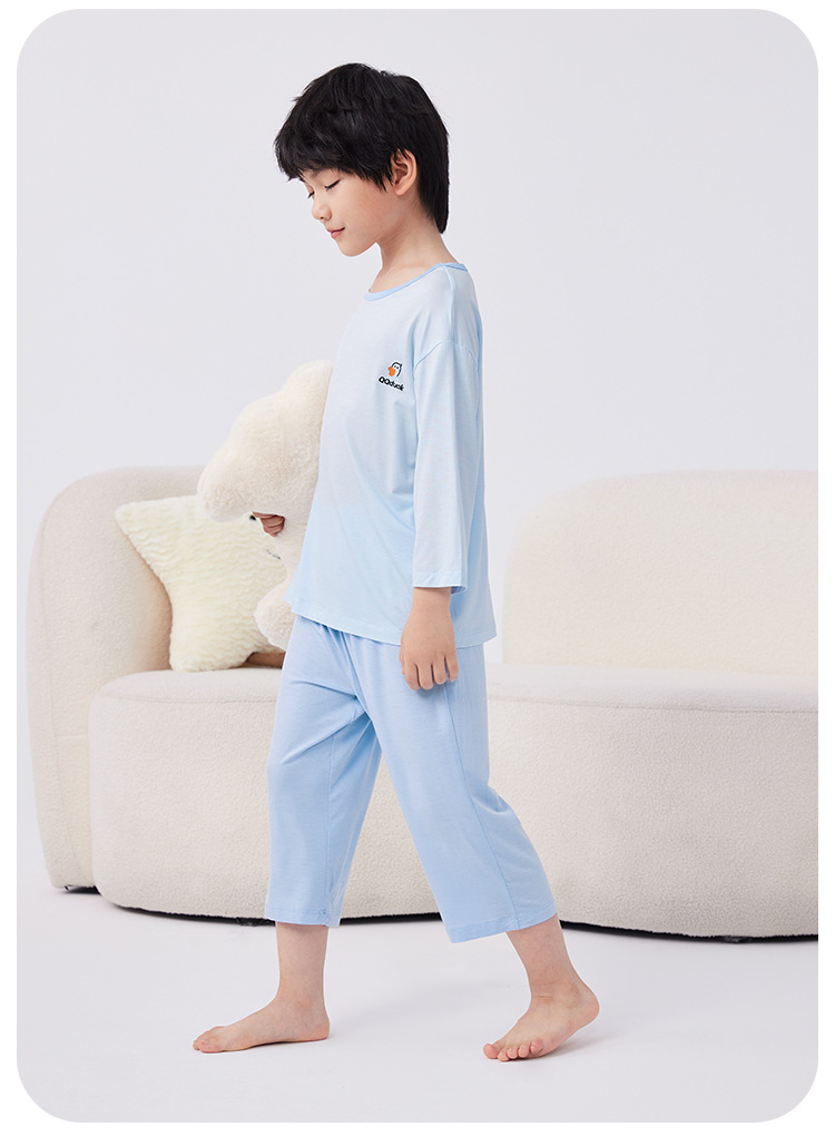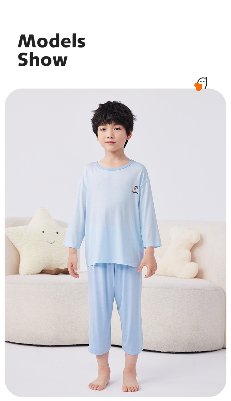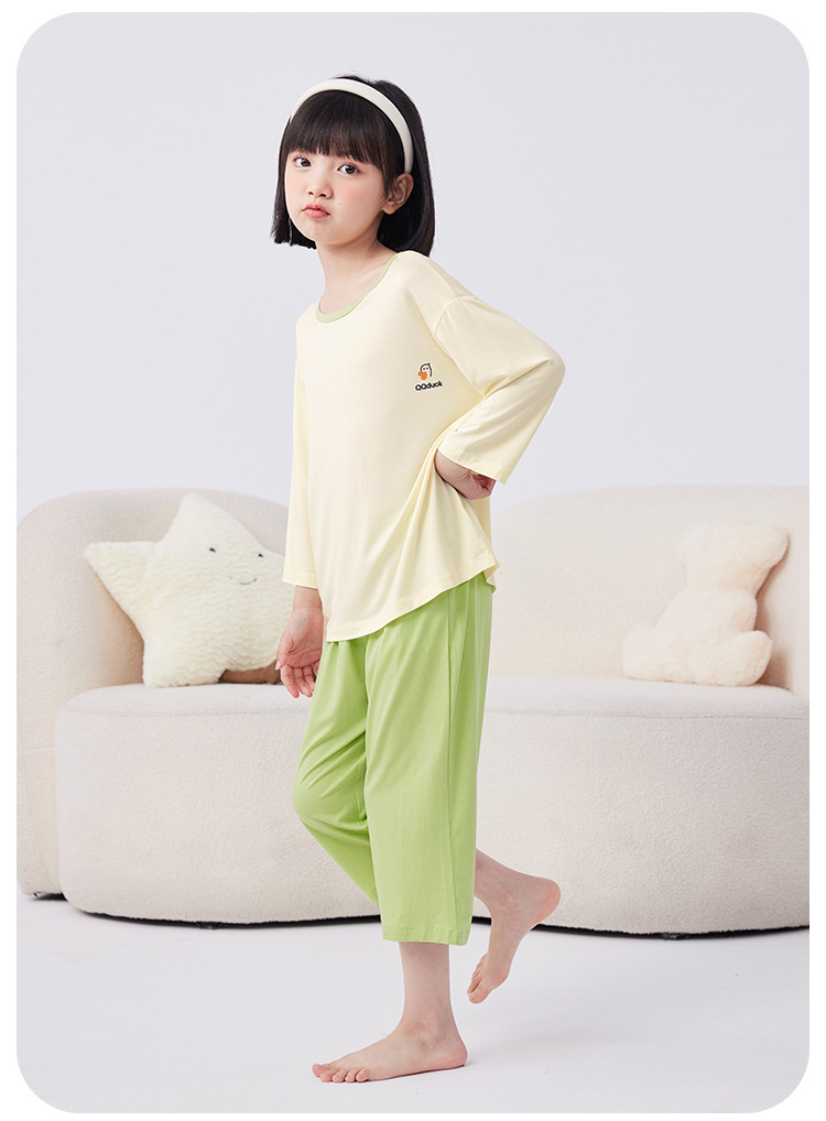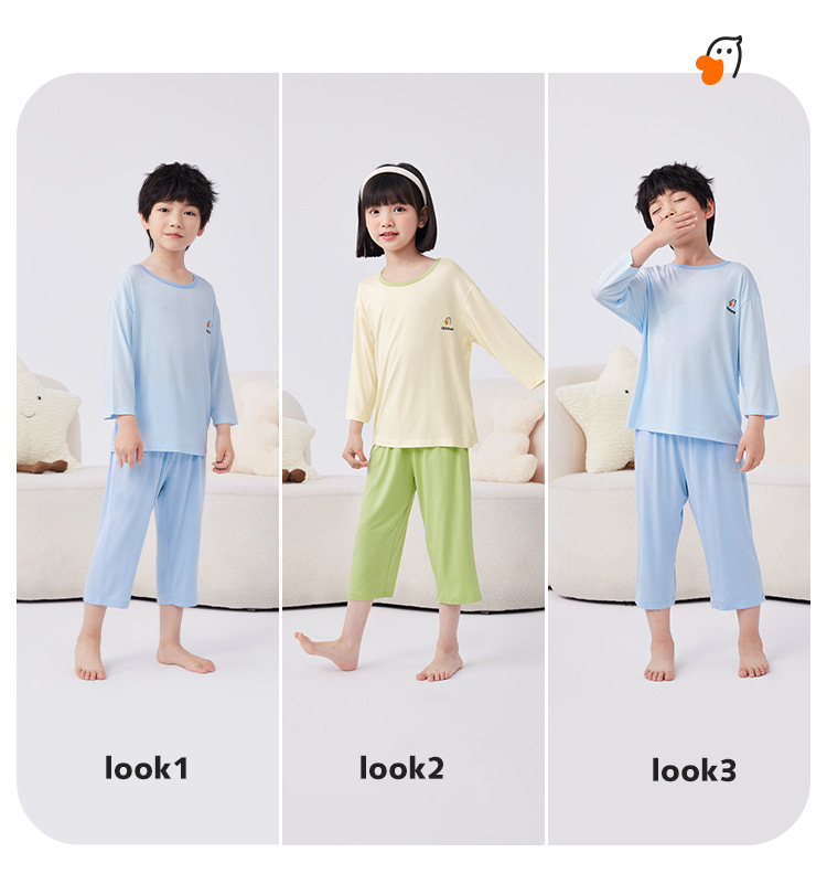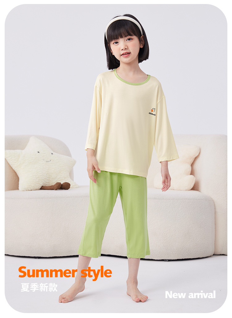 QQduck Cocoa Duck Children's Wear Summer Cash Girl's Home Wear Thin Boy's Seven-Sleeve 에어컨웨어 바지스토어 가기
