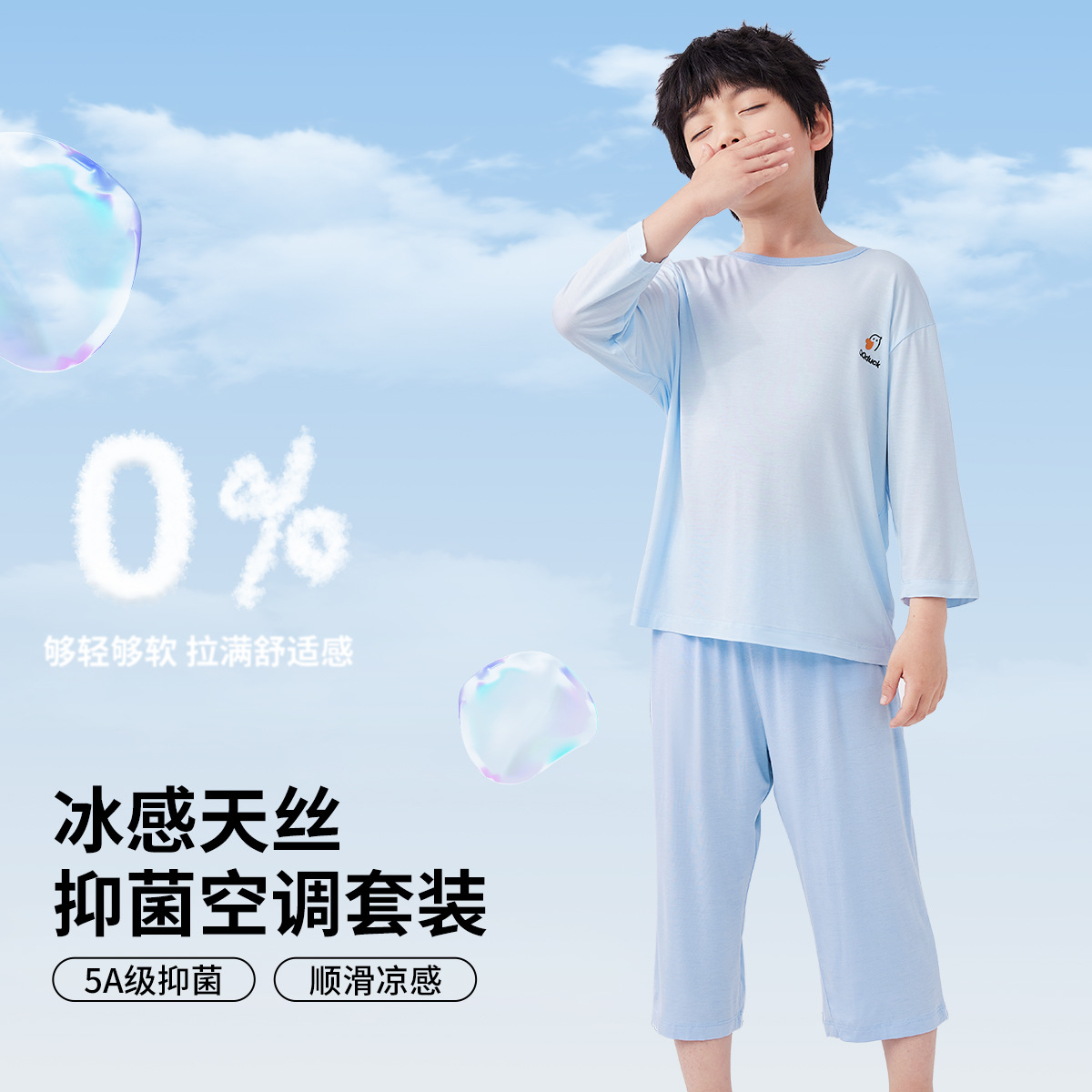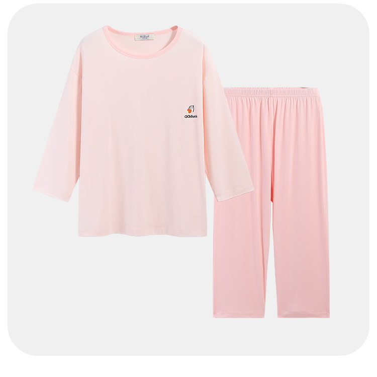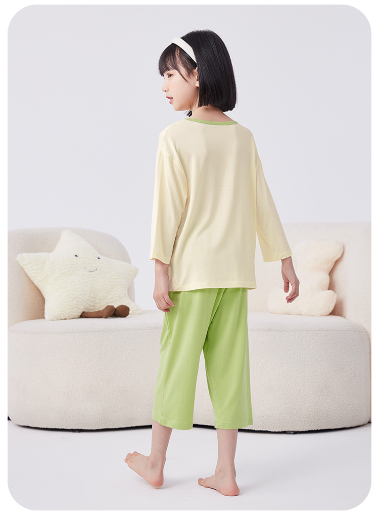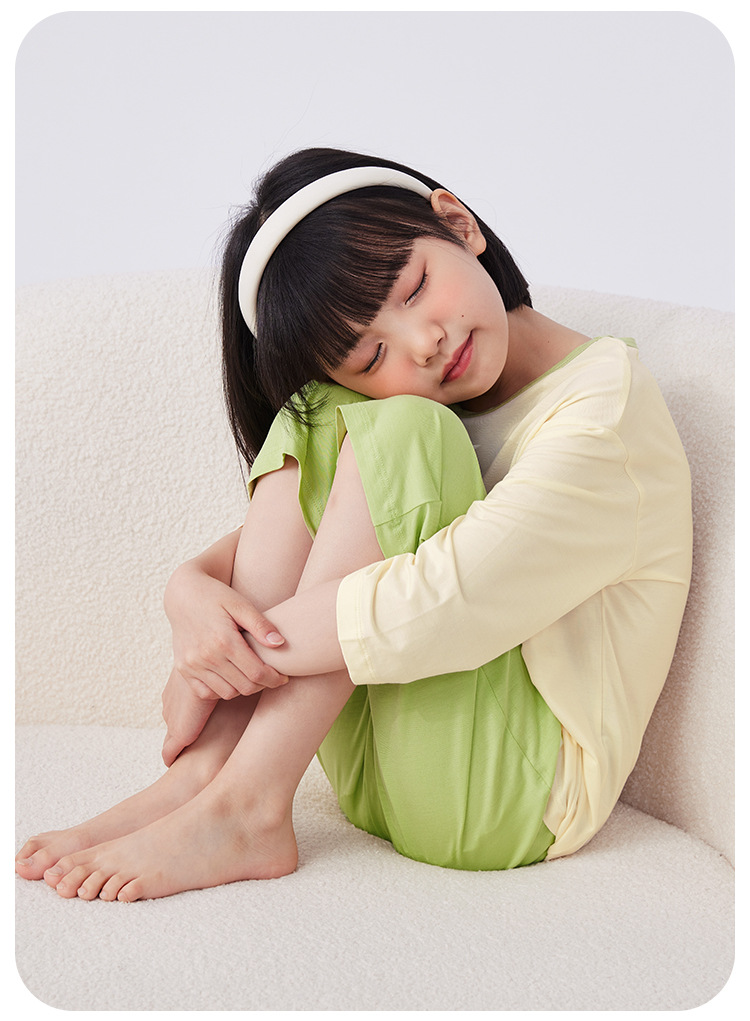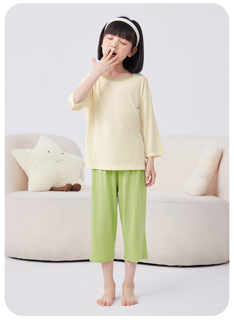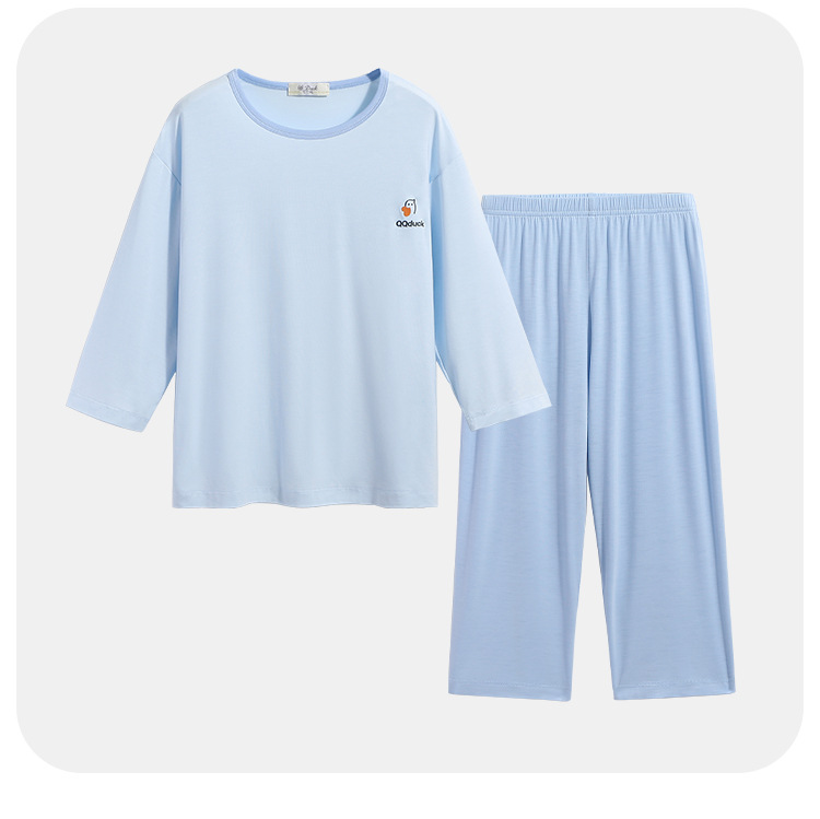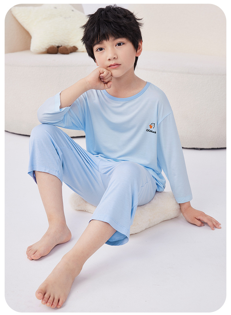 QQduck Cocoa Duck Children's Wear Summer Cash Girl's Home Wear Thin Boy's Seven-Sleeve 에어컨웨어 바지스토어 가기