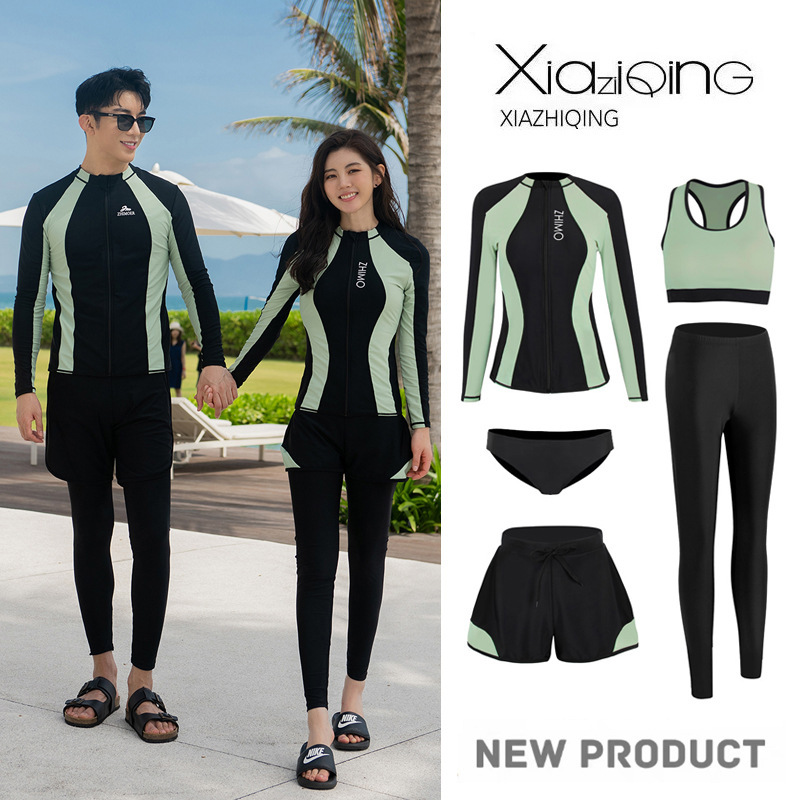 다이빙 세트 여자 선 스크린 빠른 건조 스플릿 긴팔 바지 스노클링 해파리 세트 커플의 따뜻한 수영 세트 남자 서핑 세트
