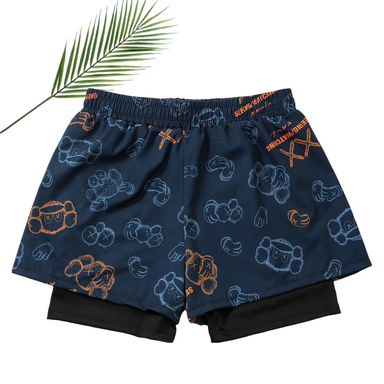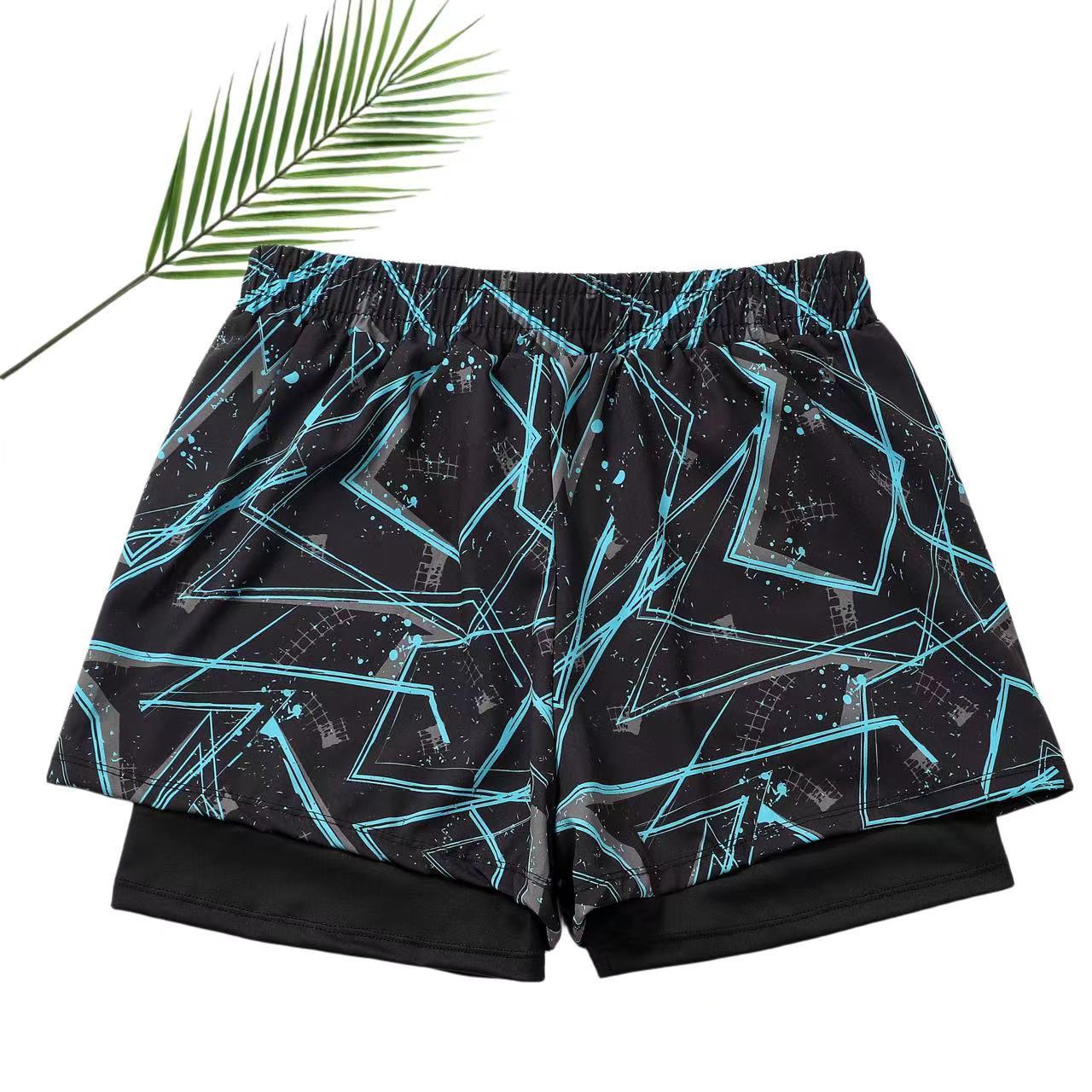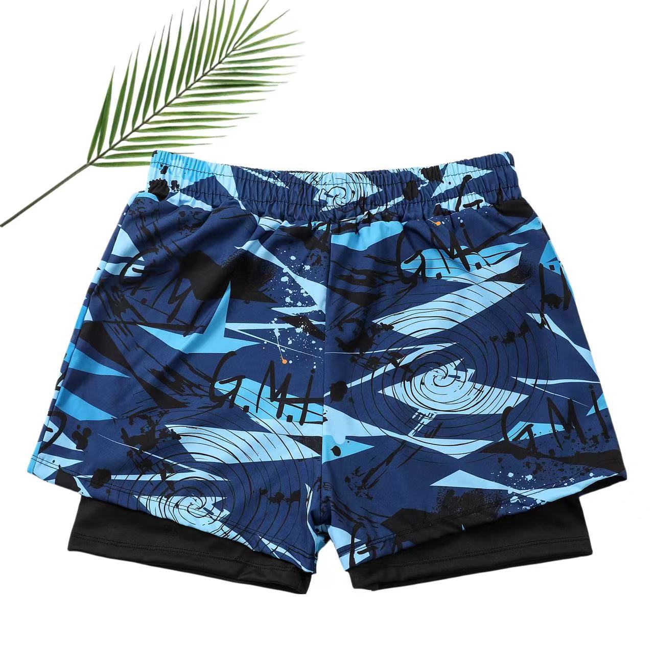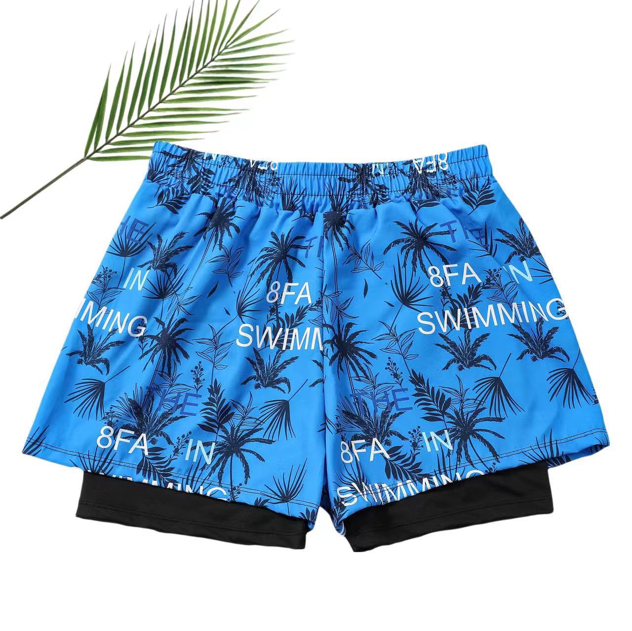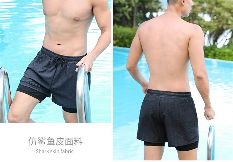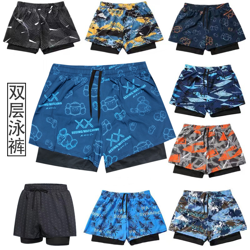 남자 수영 트렁크 소년 비치 트렁크를위한 안티 당황스러운 수영 세트 뜨거운 봄 수영 트렁크 여름을위한 빠른 건조 더블 레이어 스포츠 통기성 반바지