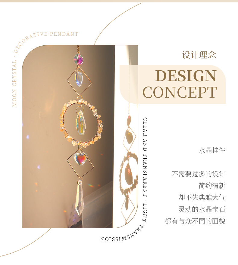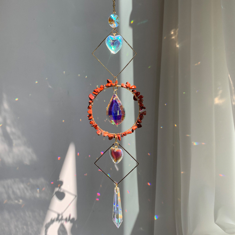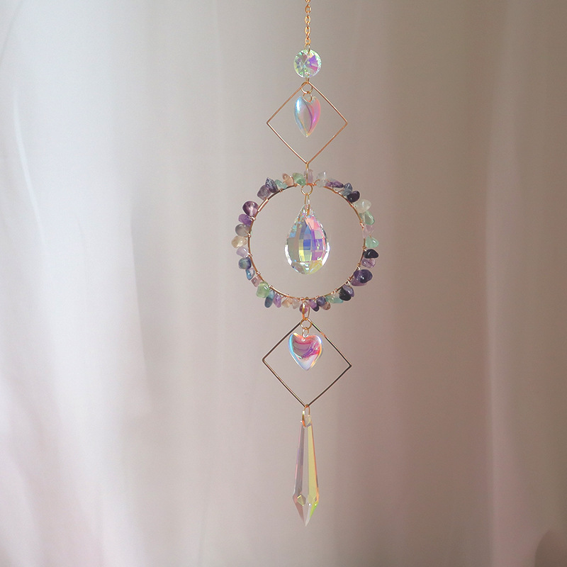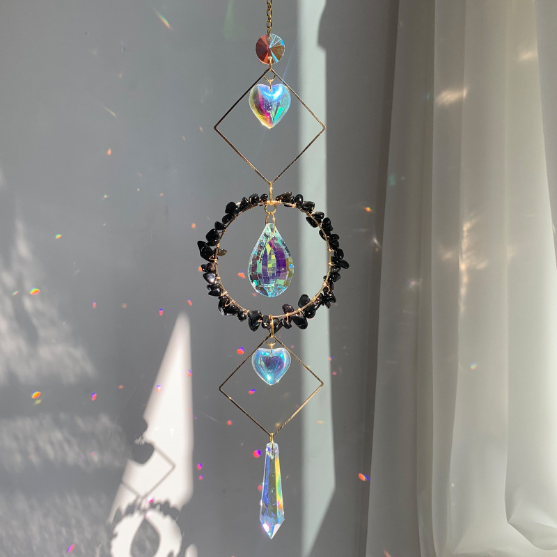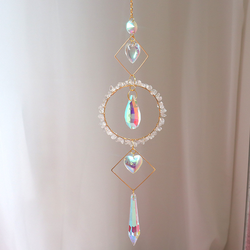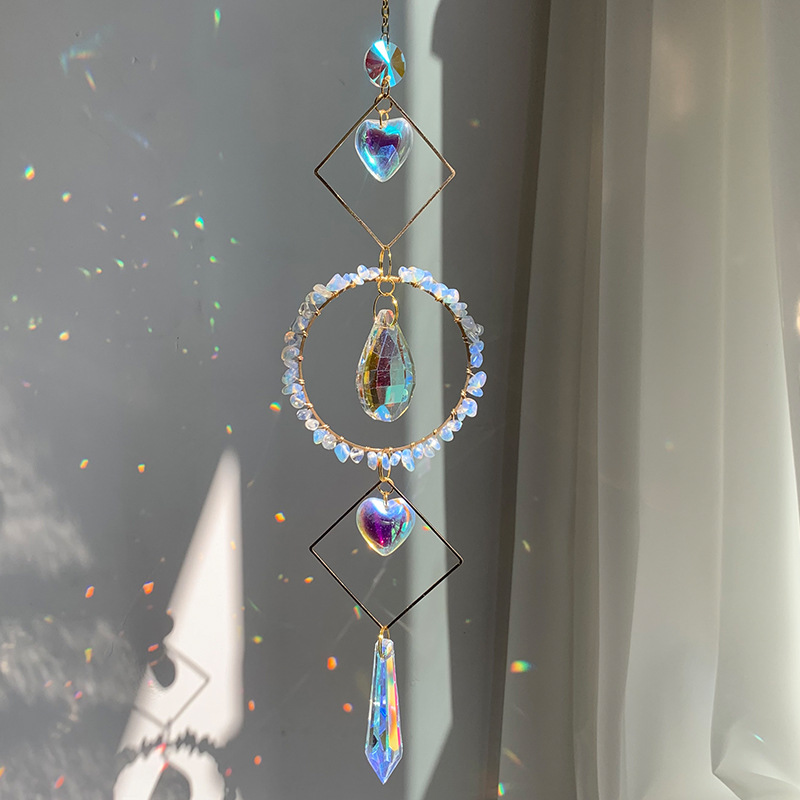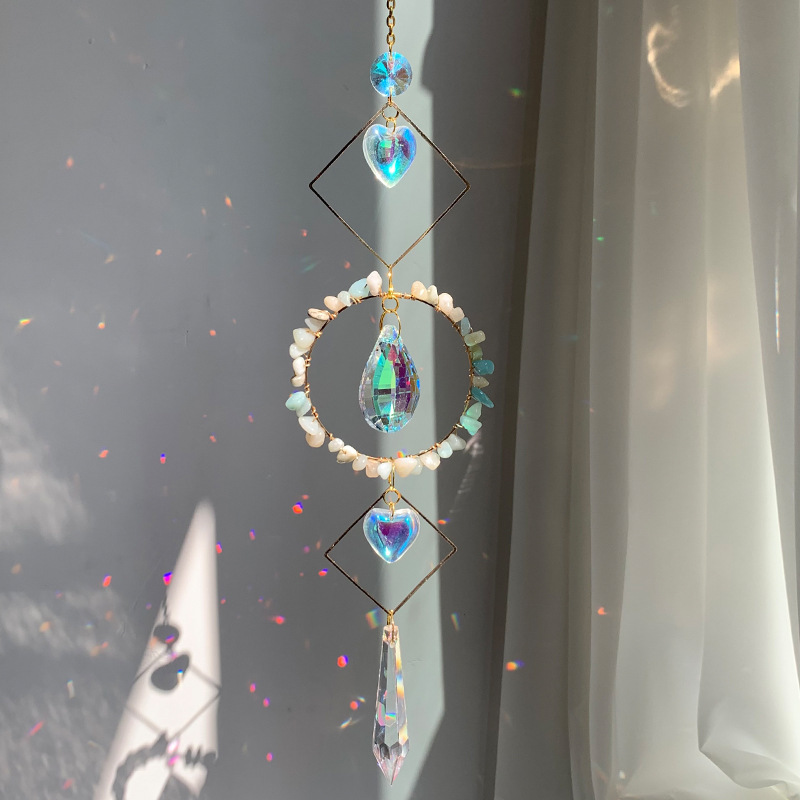 다채로운 별과 달 프리즘 볼 정원 장식 풍경종 금속 액세서리 크리스탈 태양 포수 공중 장식 종