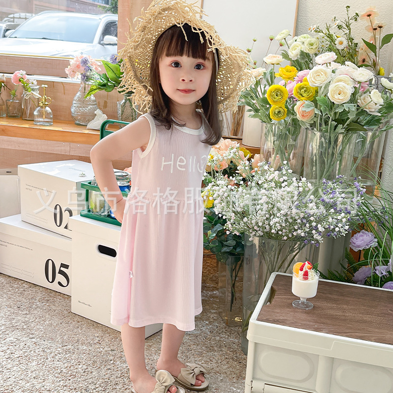 국경 간 여름 2025 스커트 소녀 드레스 조끼 드레스 서스펜더 스커트 얼음 실크 통기성 외국 스타일 롱 스커트 도매