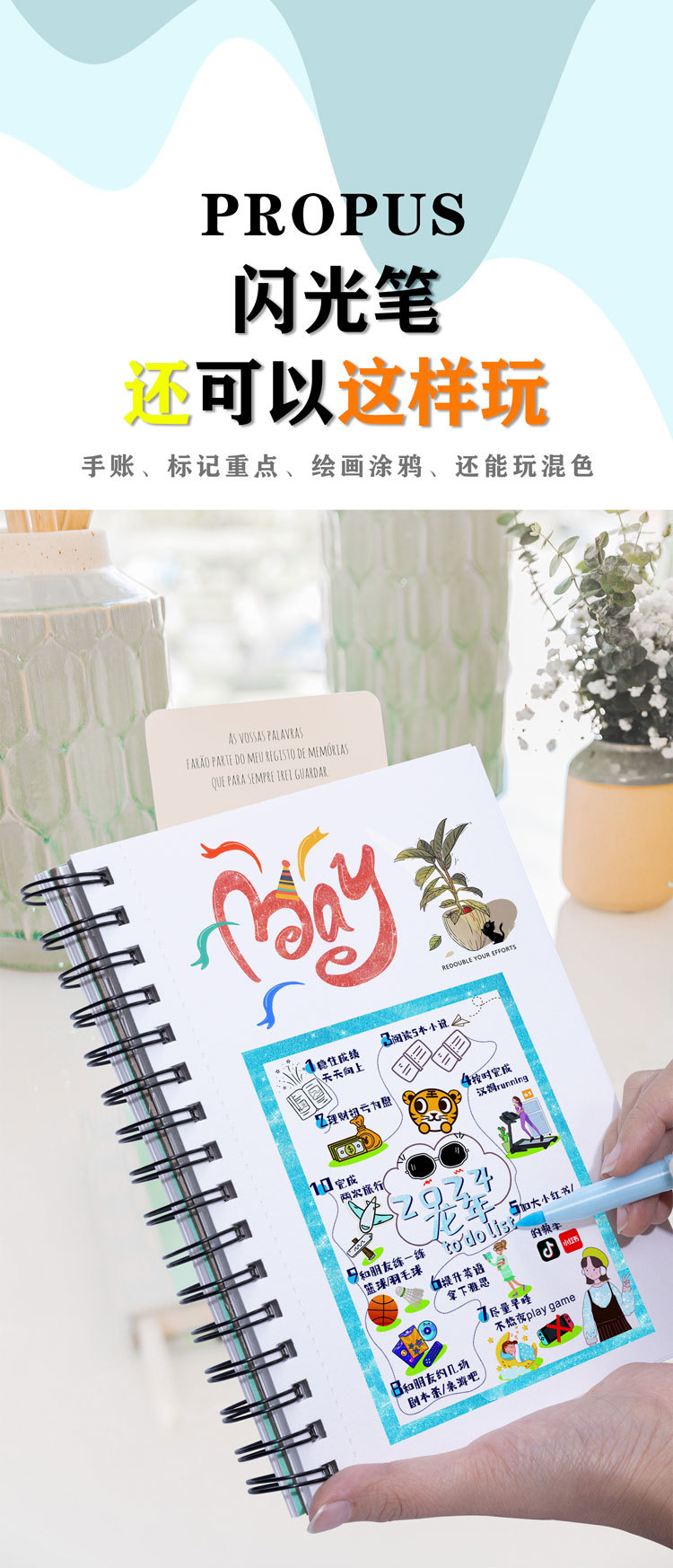 Guangna GN Highlighter 12 컬러 진주 빛 반짝이 학생 키 마커 소프트 헤드 낙서 캔디 컬러 마커