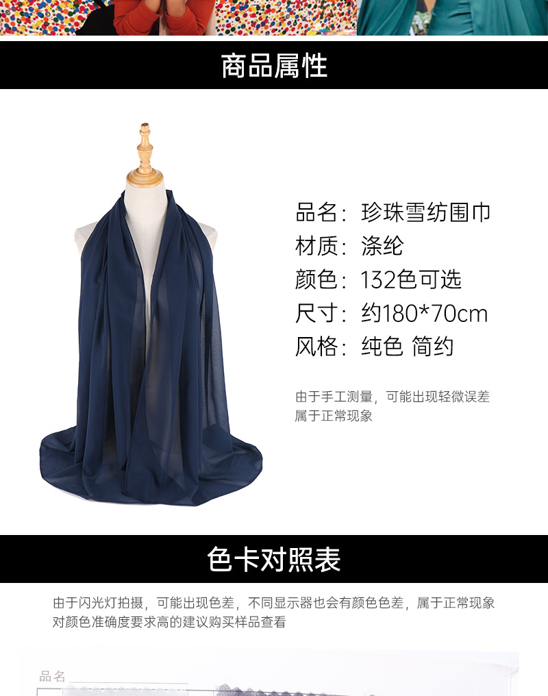이슬람 사우디 아라비아 중동 큰 스카프 단색 머리 스카프 도매 대외 무역 뜨거운 판매 진주 쉬폰 스카프스토어 가기
