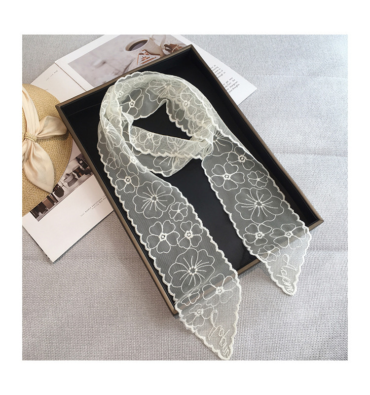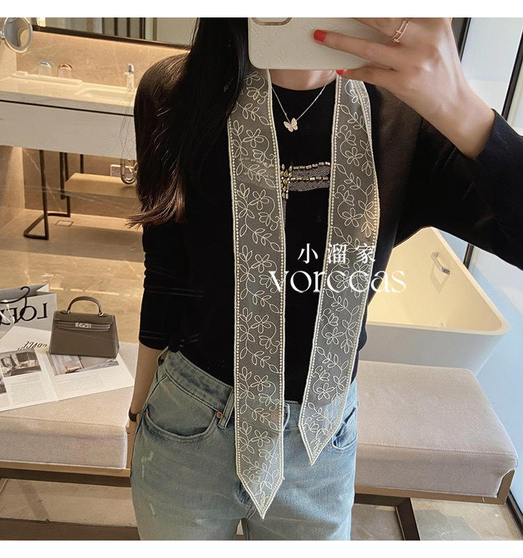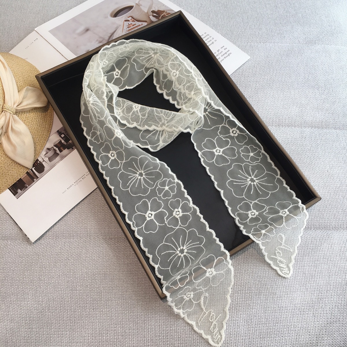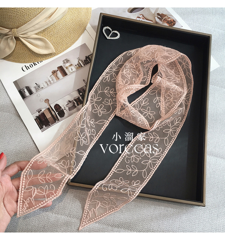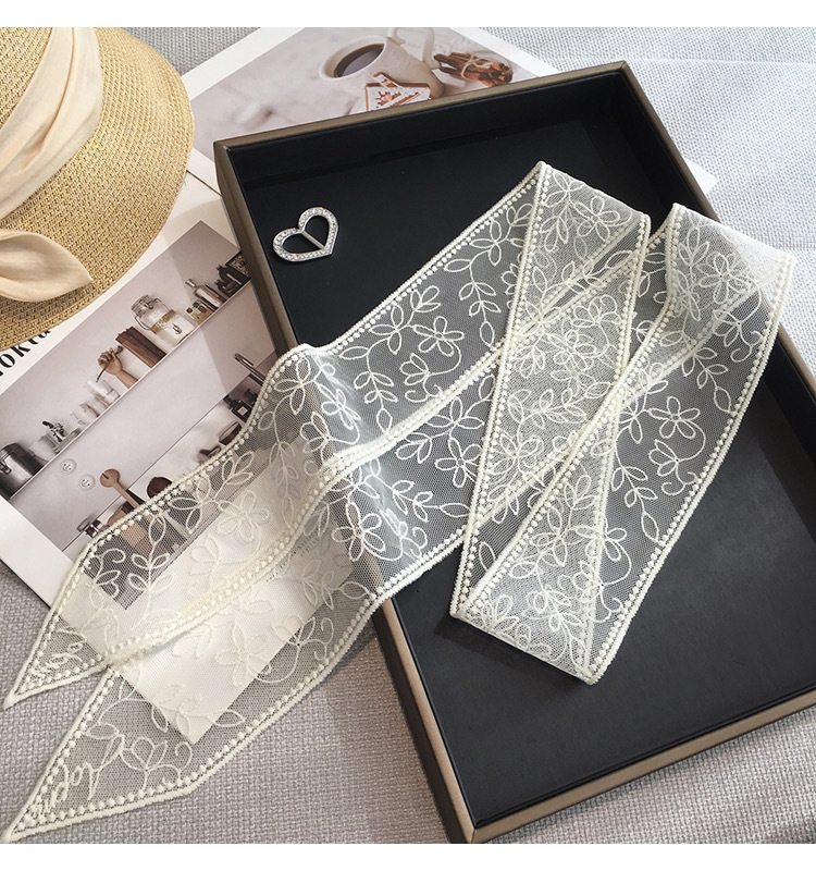 슈퍼 페어리 레이스 자수 작은 실크 스카프 프랑스 얇은 스트립 허리 씰 여성의 봄과 가을 로맨틱 레이스 장식 헤어 타이 스카프
