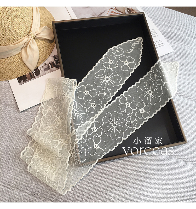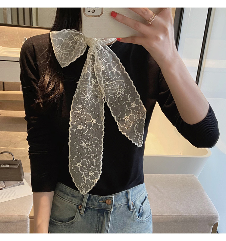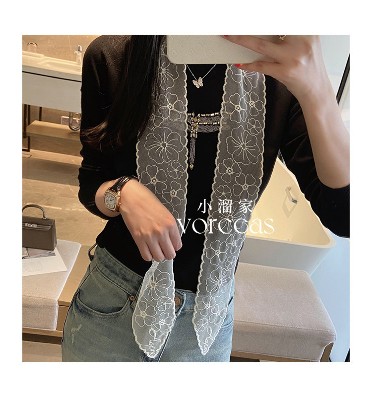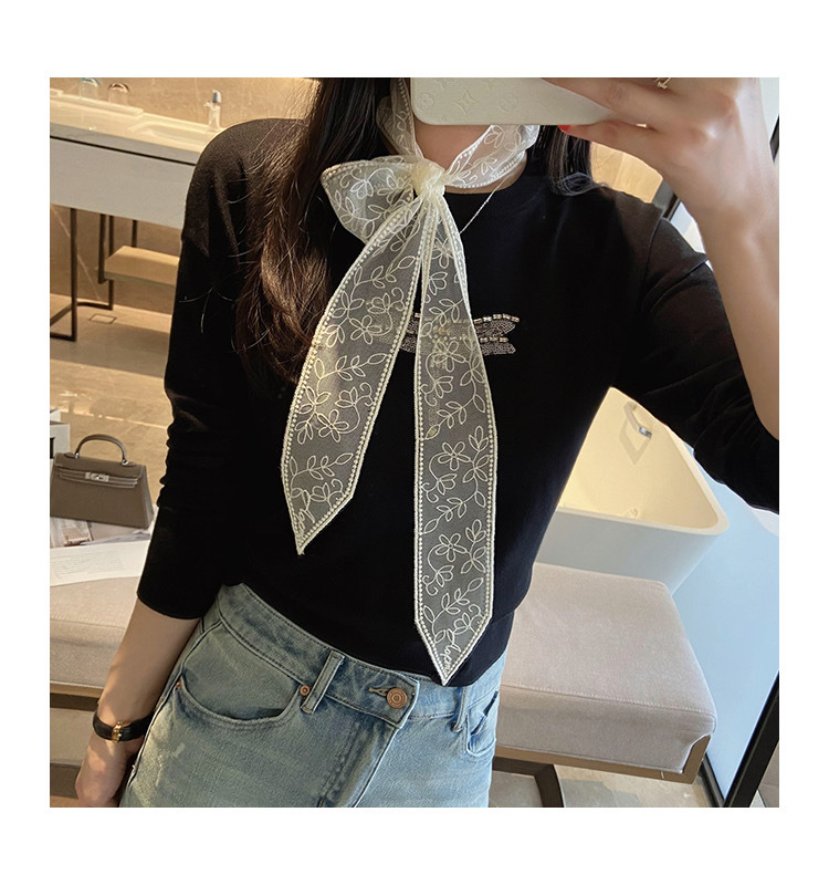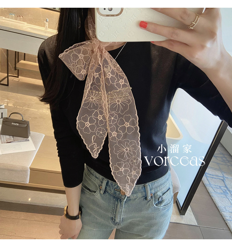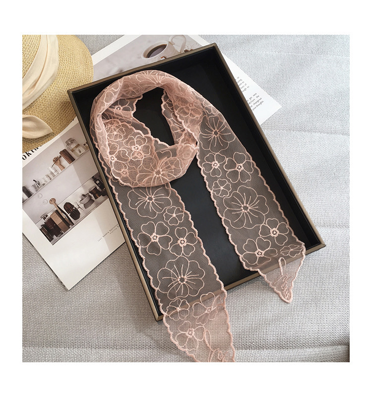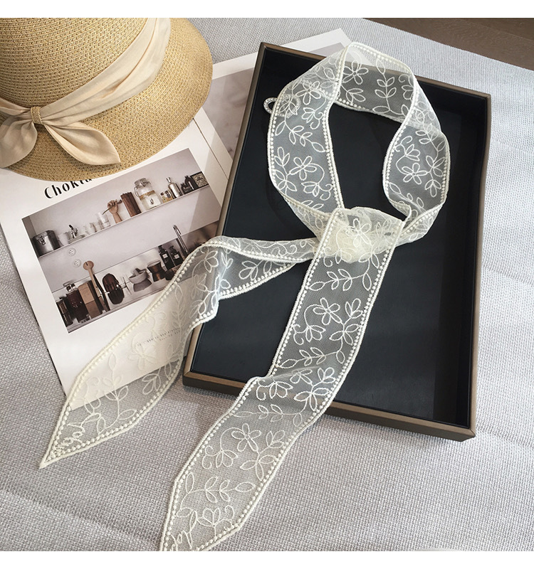 슈퍼 페어리 레이스 자수 작은 실크 스카프 프랑스 얇은 스트립 허리 씰 여성의 봄과 가을 로맨틱 레이스 장식 헤어 타이 스카프