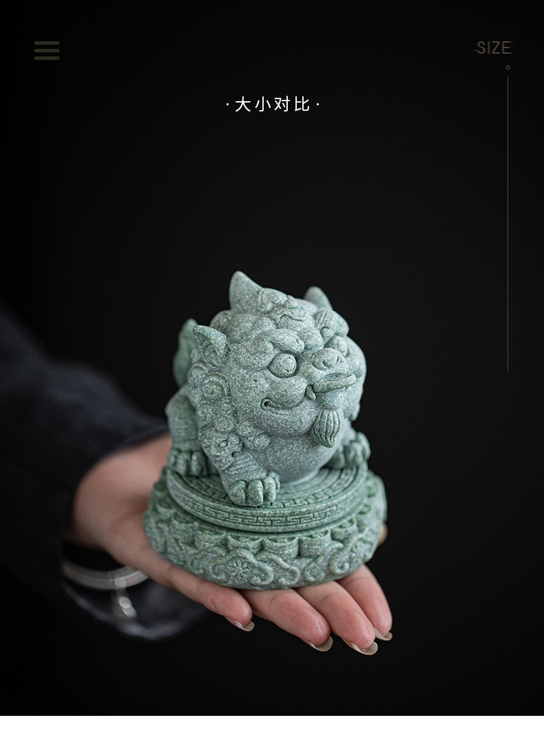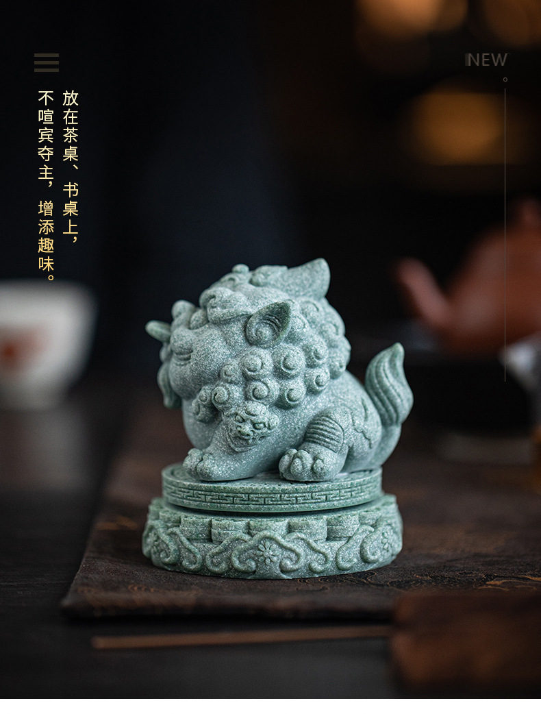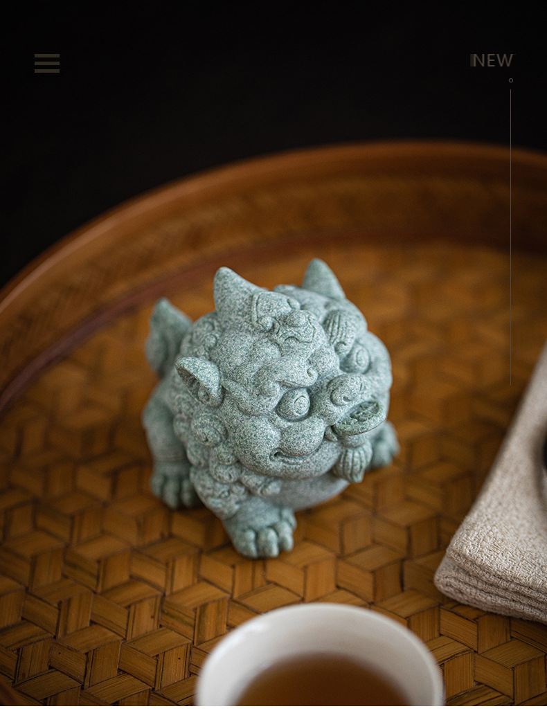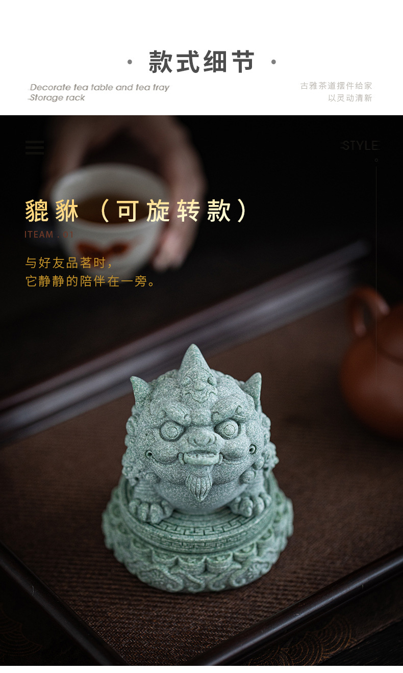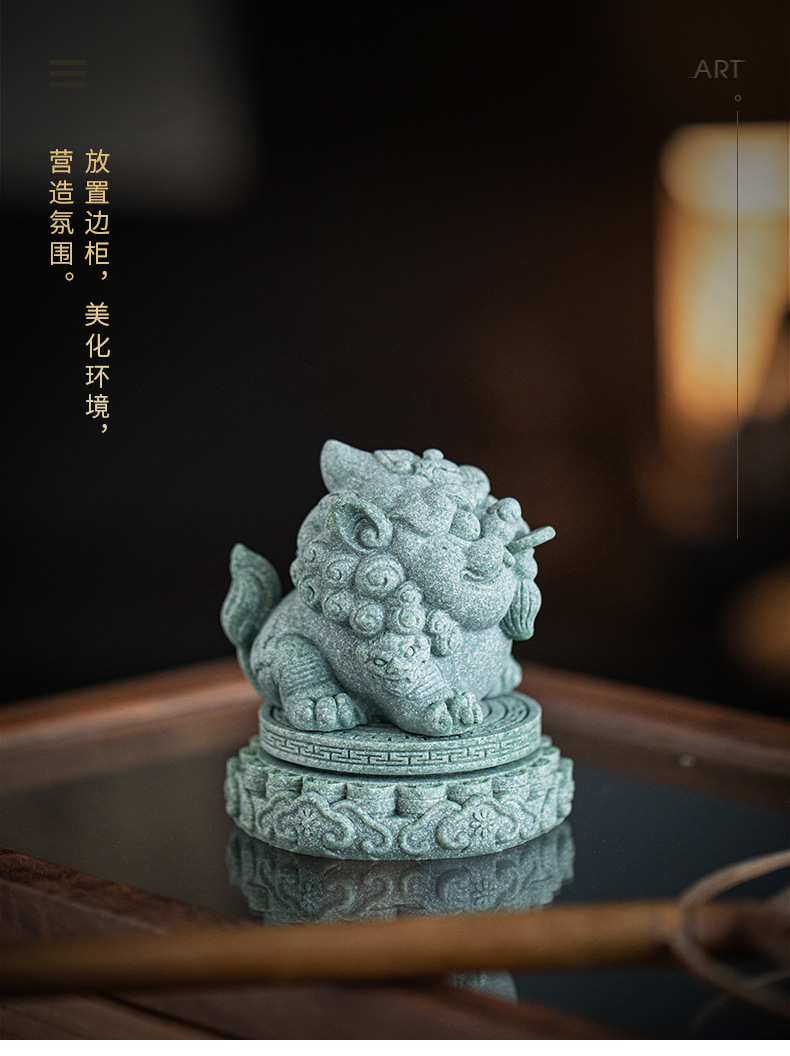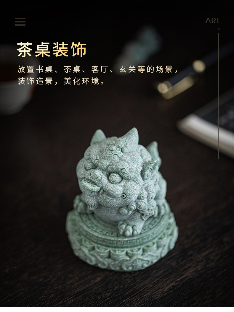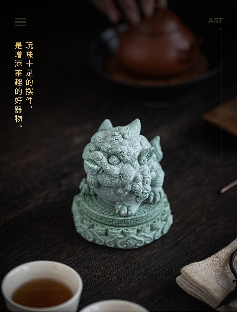 녹색 모래 돌 행운의 Pixiu 차 애완 동물 장식품 부티크는 차 테이블 차 트레이 티 놀이 물고기 탱크 조경 장식 차 액세서리를 올릴 수 있습니다스토어 가기
