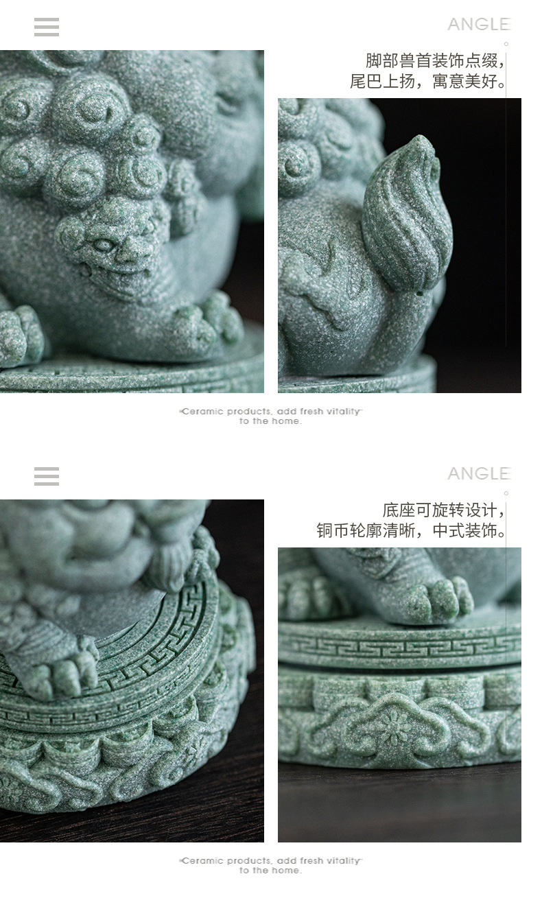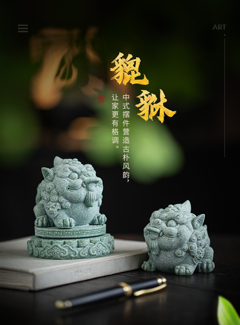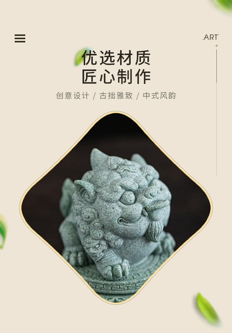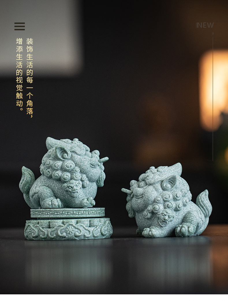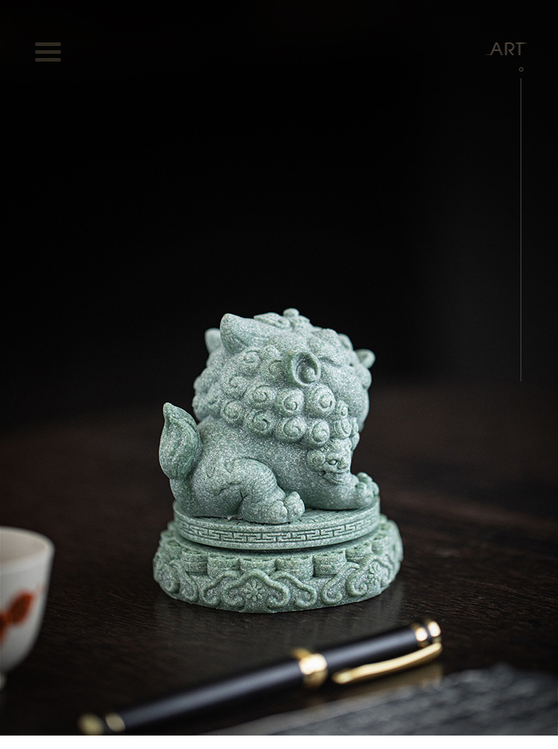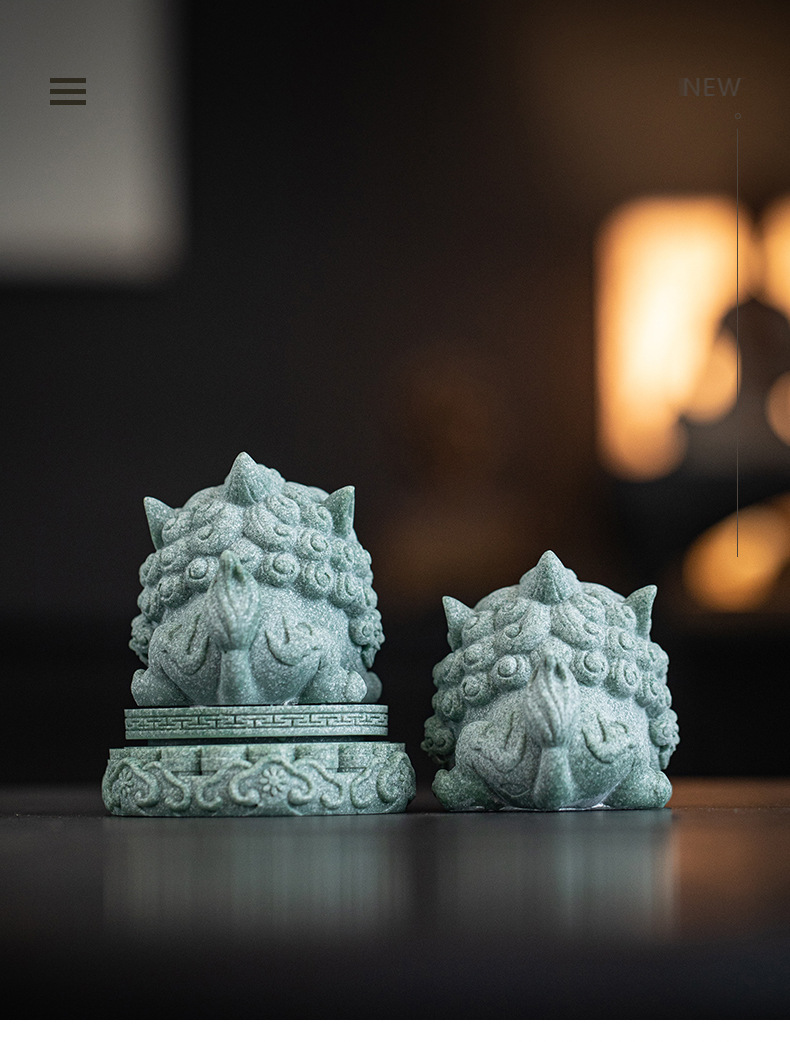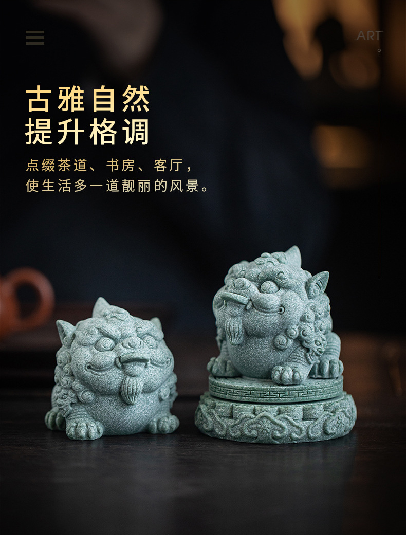 녹색 모래 돌 행운의 Pixiu 차 애완 동물 장식품 부티크는 차 테이블 차 트레이 티 놀이 물고기 탱크 조경 장식 차 액세서리를 올릴 수 있습니다스토어 가기
